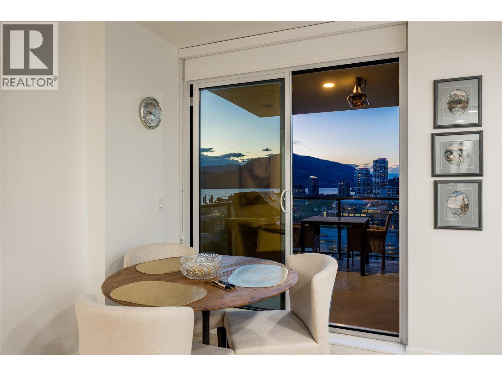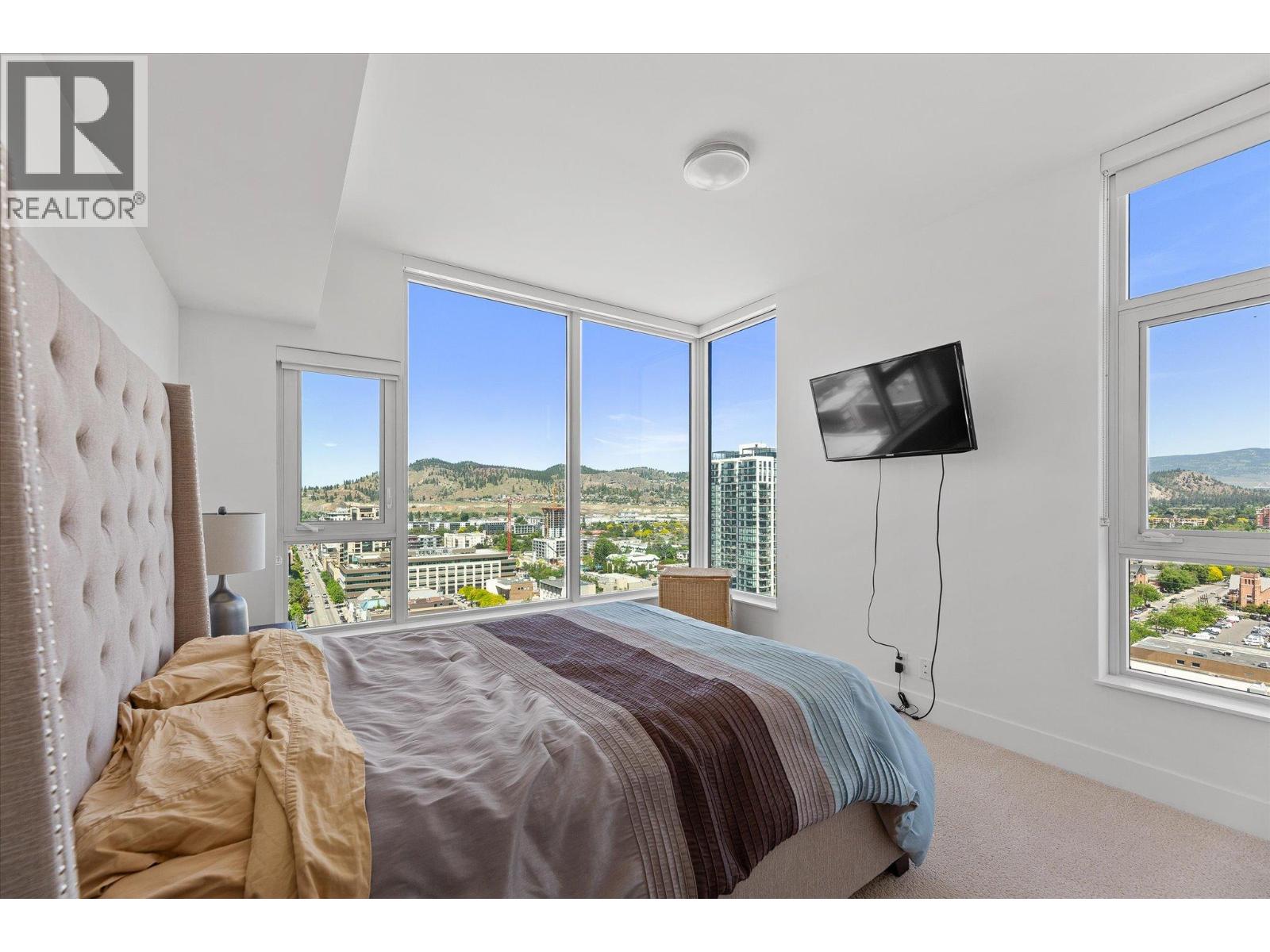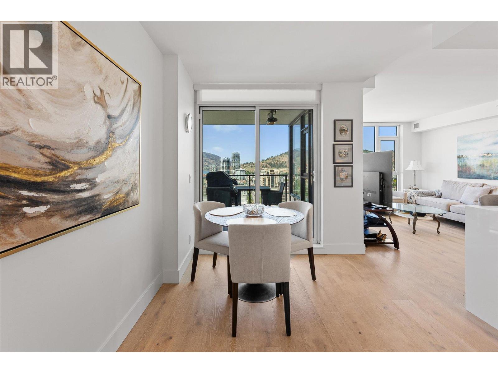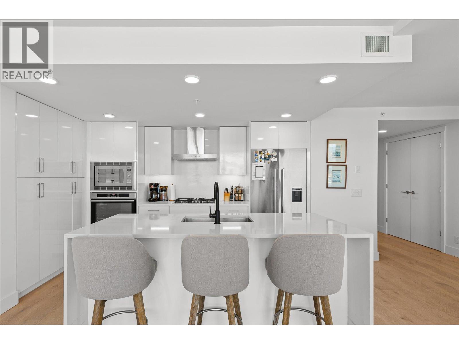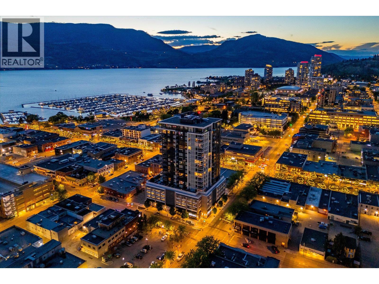 LAKEVIEW SUB-PENTHOUSE CORNER UNIT WITH 2 SECURE PARKING STALLS! This unit in ELLA blends modern design with sweeping lake views and the ultimate downtown lifestyle that's stylish, elevated, and perfectly located. This bright, corner-unit condo soars above the city, offering panoramic vistas of the lake, marina, and mountains that stretch out from nearly every window. Inside, clean lines, massive windows, and thoughtful upgrades elevate the space. The sleek kitchen features a gas range, wall oven, built-in wine fridge, waterfall countertops, and tons of storage— perfect for hosting or keeping things effortlessly organized. The open-concept layout flows into the living area, designated dining space, and out to a covered patio built for all-season enjoyment, complete with a gas BBQ hookup, ceiling-mounted heater, and jaw-dropping views. Wake up to the lake in the serene primary suite, complete with a walk-in closet outfitted with built-ins and a stylish ensuite featuring a dual vanity and bidet. Enjoy the added convenience of 2 parking spots *rare*, and a storage locker. Designed for urban living without compromise, ELLA offers thoughtful amenities like a pet wash, EV charging, and a bike wash/repair station—with no size or height restrictions on pets. Step outside and find yourself in the heart of it all: beaches, parks, hikes, cafes, restaurants, and shops are just steps away. Step into downtown living done right —book your showing and experience Kelowna from the top. (id:58842)