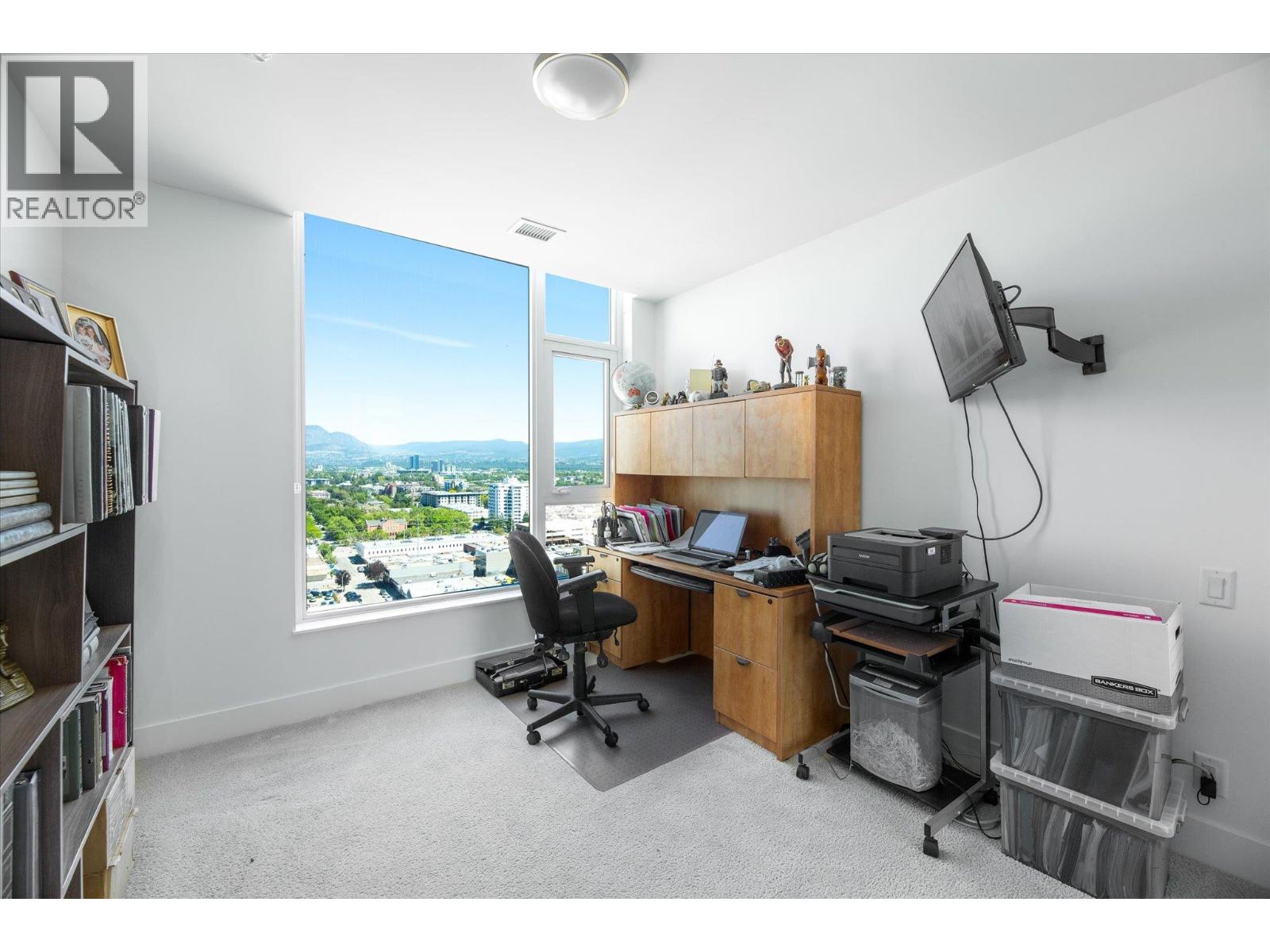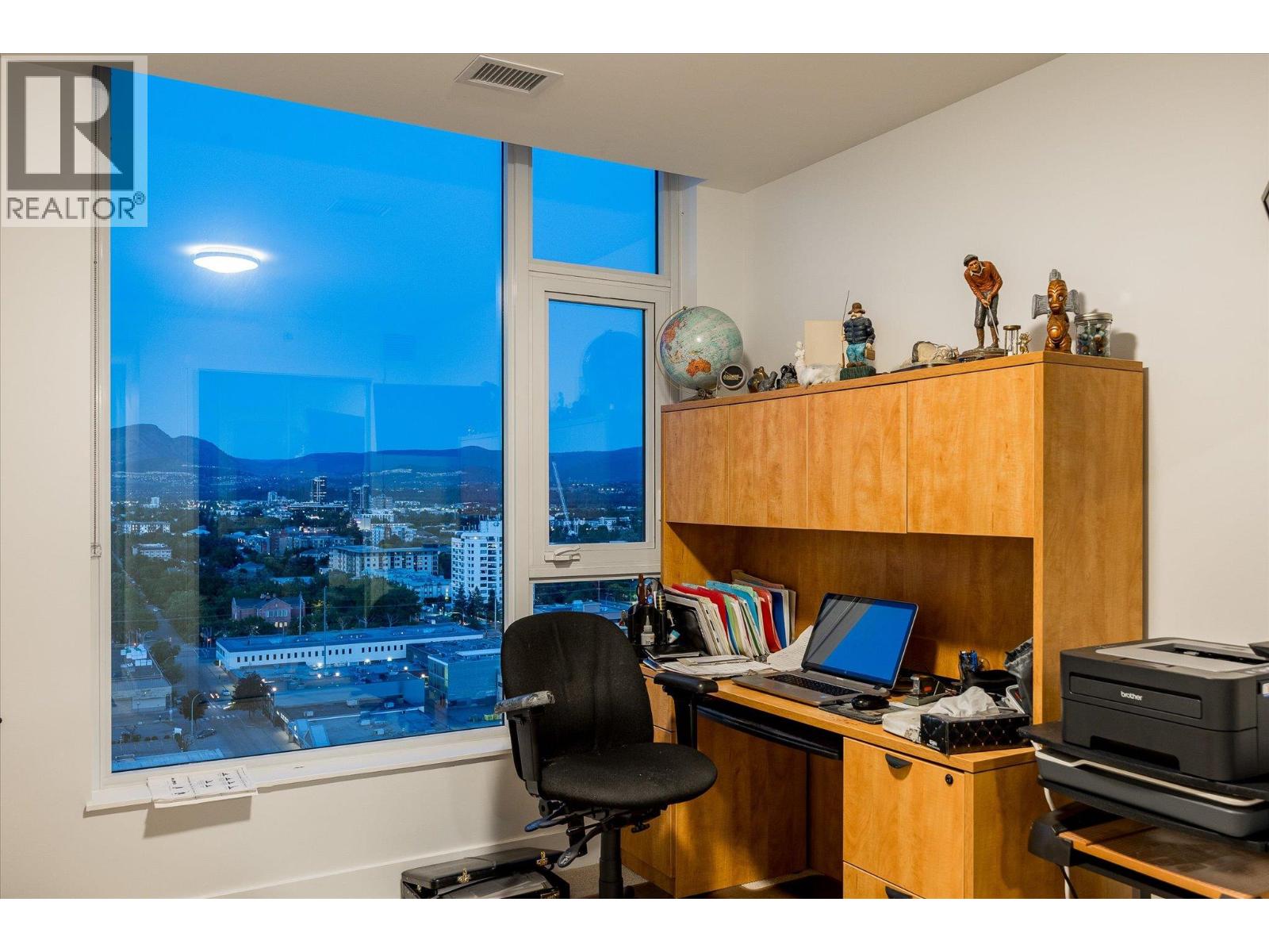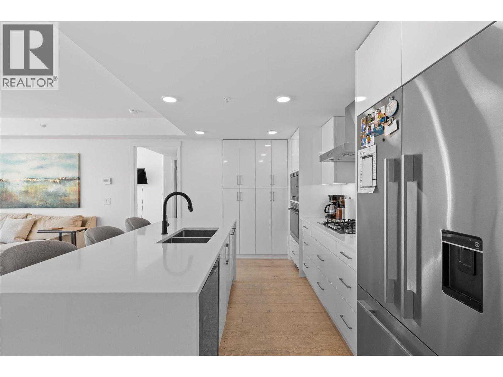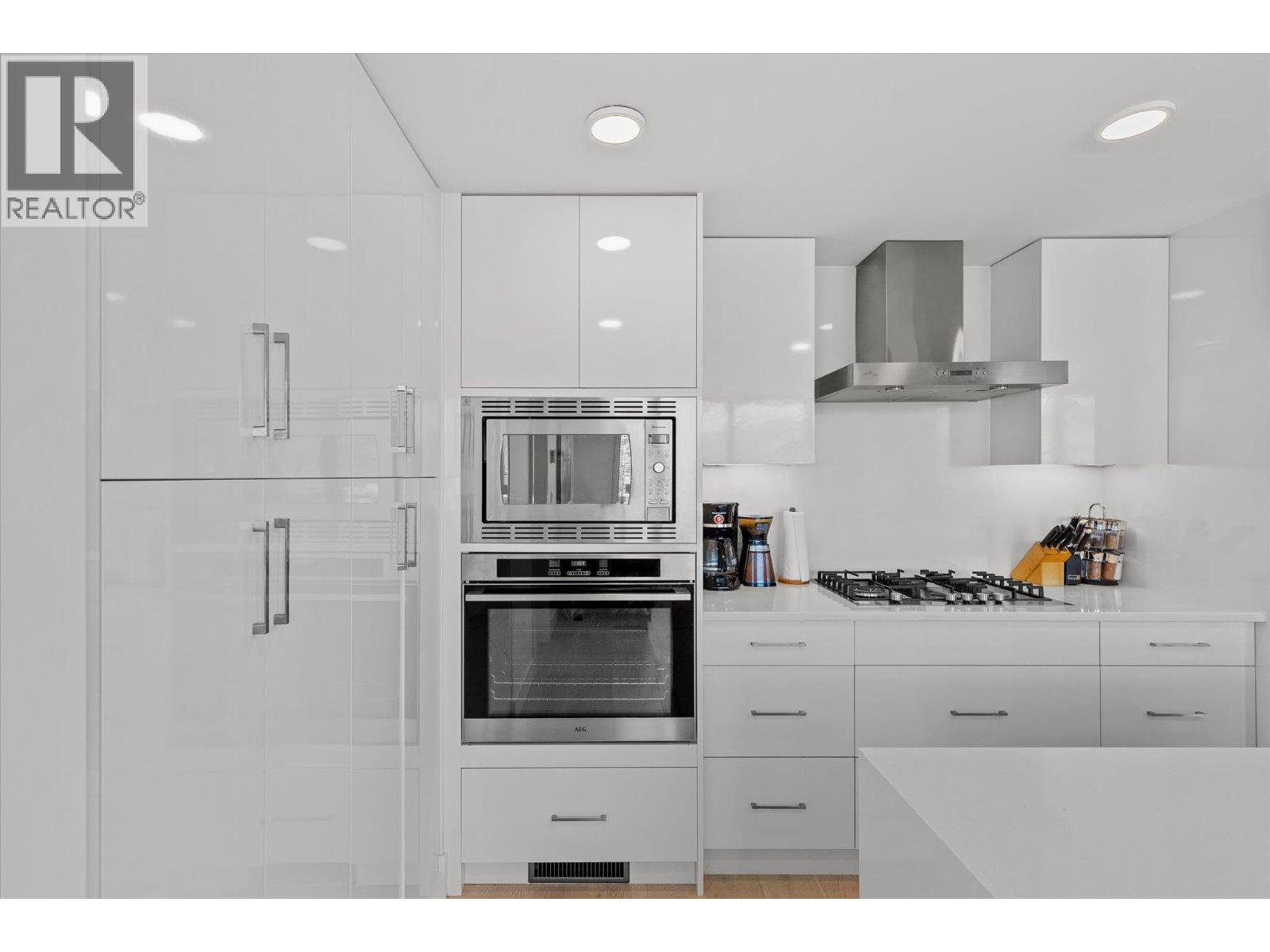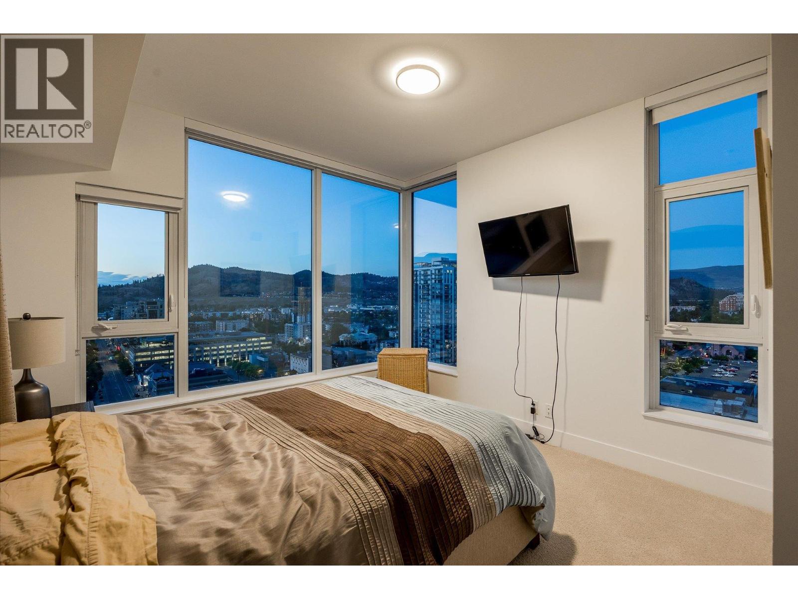 LAKEVIEW SUB-PENTHOUSE CORNER UNIT WITH 2 SECURE PARKING STALLS! This unit in ELLA blends modern design with sweeping lake views and the ultimate downtown lifestyle that's stylish, elevated, and perfectly located. This bright, corner-unit condo soars above the city, offering panoramic vistas of the lake, marina, and mountains that stretch out from nearly every window. Inside, clean lines, massive windows, and thoughtful upgrades elevate the space. The sleek kitchen features a gas range, wall oven, built-in wine fridge, waterfall countertops, and tons of storage— perfect for hosting or keeping things effortlessly organized. The open-concept layout flows into the living area, designated dining space, and out to a covered patio built for all-season enjoyment, complete with a gas BBQ hookup, ceiling-mounted heater, and jaw-dropping views. Wake up to the lake in the serene primary suite, complete with a walk-in closet outfitted with built-ins and a stylish ensuite featuring a dual vanity and bidet. Enjoy the added convenience of 2 parking spots *rare*, and a storage locker. Designed for urban living without compromise, ELLA offers thoughtful amenities like a pet wash, EV charging, and a bike wash/repair station—with no size or height restrictions on pets. Step outside and find yourself in the heart of it all: beaches, parks, hikes, cafes, restaurants, and shops are just steps away. Step into downtown living done right —book your showing and experience Kelowna from the top. (id:58842)