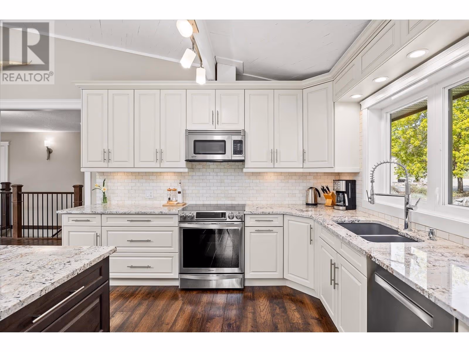 A rare chance to own a fully renovated home on over 11 acres, perfectly combining polished design with everyday functionality. The property backs onto crown land and offers the potential to purchase up to three adjoining five acre parcels, opening the door to a much larger private compound. Inside, the home has been reimagined into a modern rancher with basement, featuring vaulted ceilings that flood the space with natural light. The kitchen is a true standout—bright and functional, with clean white cabinetry and plenty of counter and storage space. It flows effortlessly into the main living area, creating a layout that’s intuitive and great for both gatherings and day-to-day life. The central living space feels grounded yet open, anchored by a fireplace and large windows that bring the outside in. Two sizeable shops are already built and ready for use, with ample parking and access for trailers, toys, or heavy equipment. The property itself is gated, landscaped, and offers excellent privacy without sacrificing access to amenities. Just minutes away is O’Rourke’s new winery—set to become one of the most iconic destinations in the country—along with Coral Beach, 50th Parallel Winery, Predator Ridge, and the waterfront. Vernon, Kelowna, and the airport are all within a 20-minute radius. Acreages with this level of finish, usable land, and future potential don’t come up often, especially in a location this central. (id:58842)