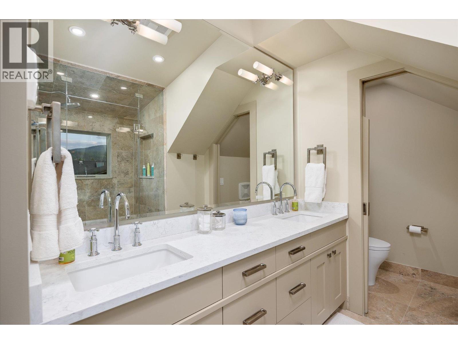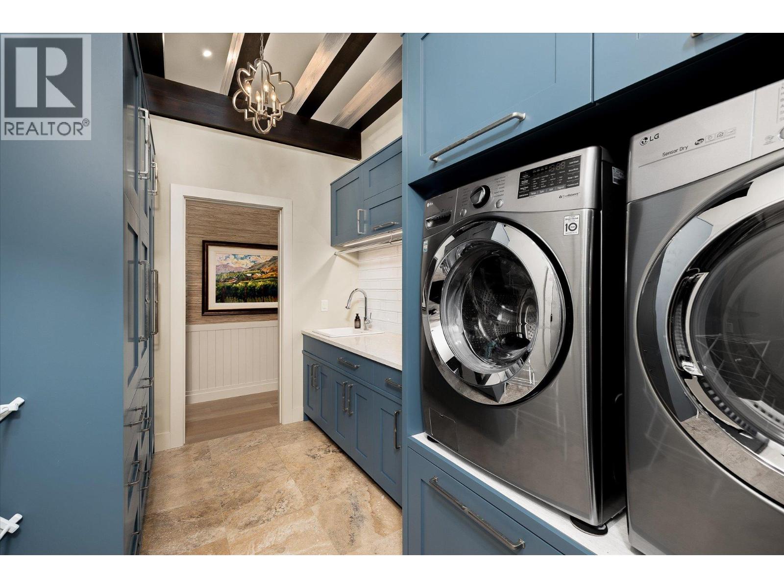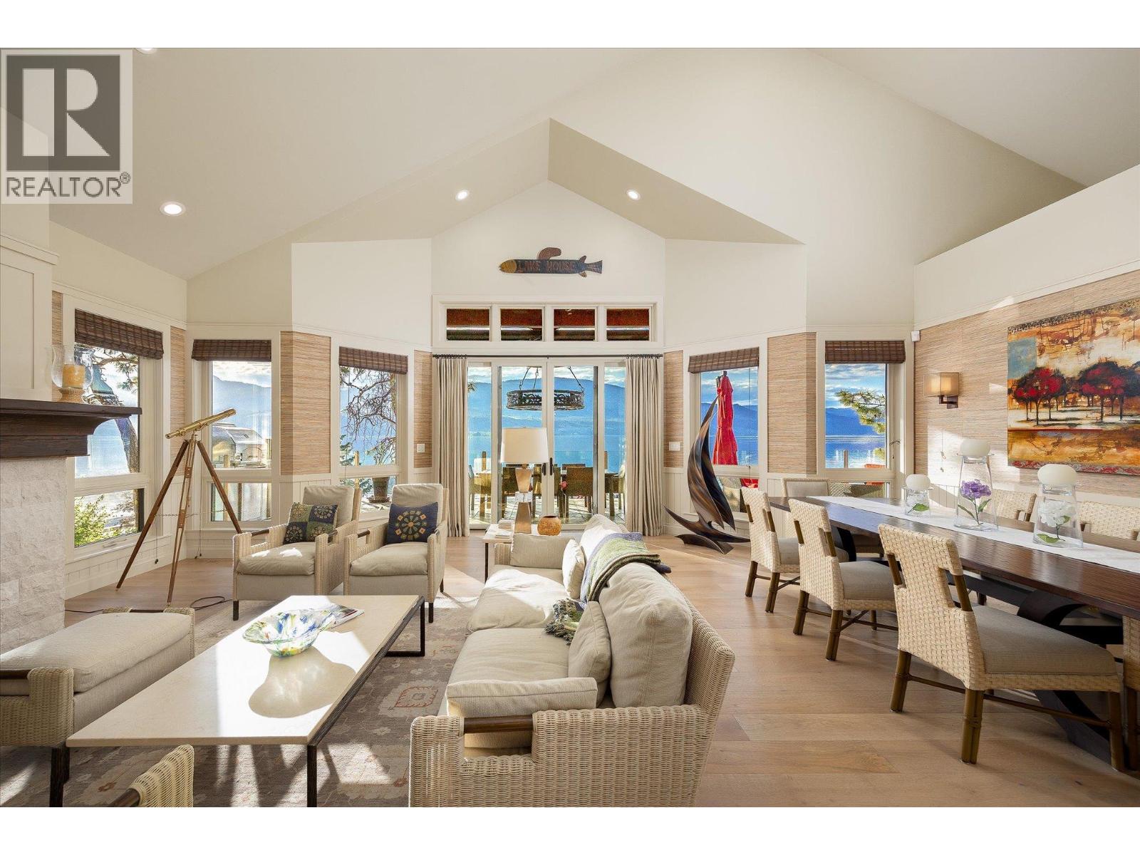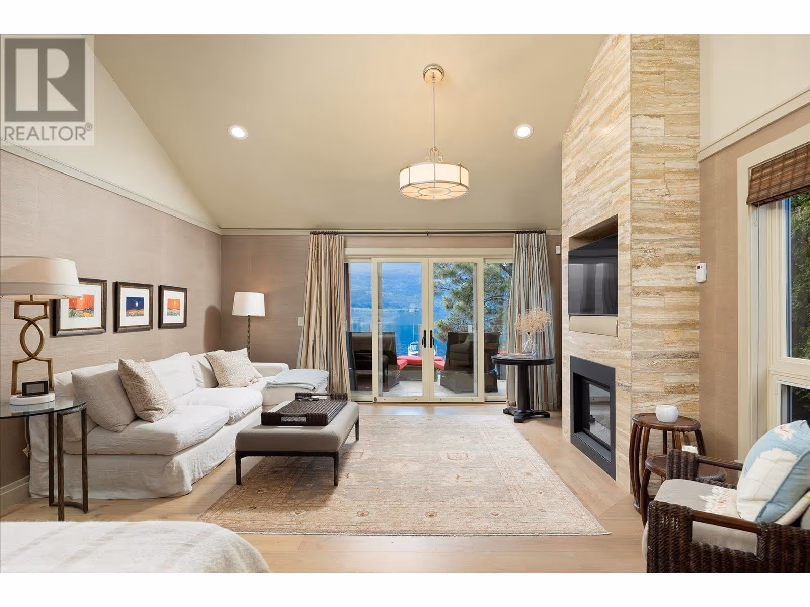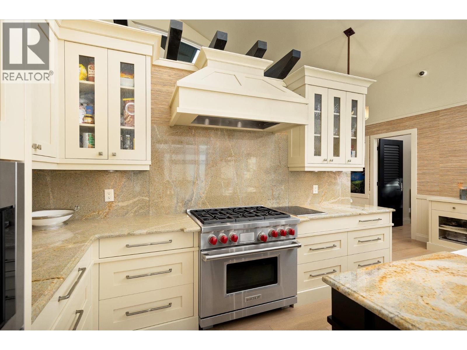 Stunning 0.522-acre lakeshore estate in the prestigious Carr's Landing area of Lake Country. This renovated residence offers 5,400+ square feet with five bedrooms, an office, and six bathrooms. Upon driving down your heated driveway, you are immediately greeted with landscaping that includes a high-quality greenhouse, substantial hardscaping, and planter beds, taking full use of this expansive lot that spans over half an acre. Upon entering the home, you immediately see the over-height ceilings throughout, emphasizing natural light and the views. The kitchen offers a granite island, a built-in coffee machine, and a coffee/wine bar. The main floor features a lake-view office with a private patio, a master bedroom with a private ensuite, and a full master wing with an expansive walk-in closet, a steam shower that opens to a custom outdoor shower nestled in greenery, a private seating space with gas fireplace and outdoor patio, and a coffee bar. The front patio features extensive BBQ space and pizza oven, sunshades, firepit, and heaters, making the spring and fall both comfortable. Downstairs, there is a massive recreational room with a full bar area and easy access to the lake. There are two additional bedrooms downstairs, serviced by two full bathrooms. The full gym finishes off the basement. Upstairs over the garage, there is also a private one-bedroom suite area with its own ensuite bathroom. The dock features two full boatlifts and a Seadoo lift, alongside ample seating. (id:58842)