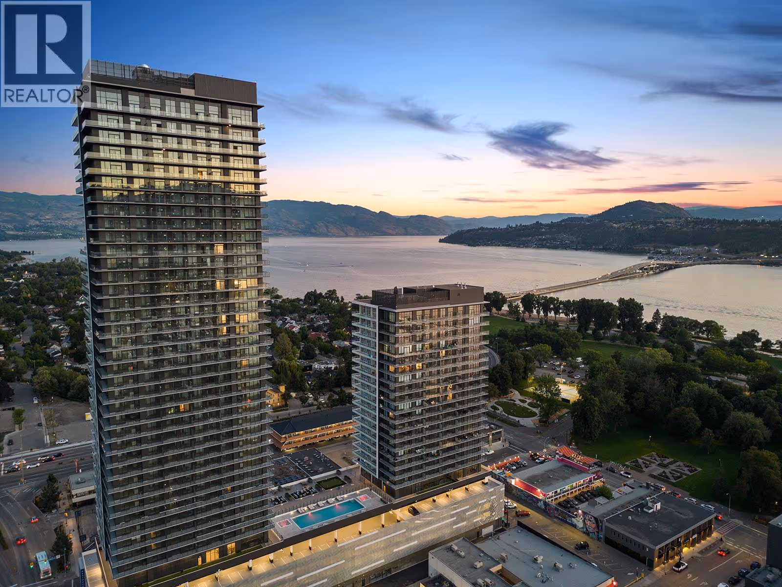 Set high above Okanagan Lake in the vibrant heart of downtown Kelowna, Unit 2007 at Water Street by the Park offers a truly elevated lifestyle. This 2-bedroom, 2-bathroom home showcases breathtaking lake, city, and mountain views through floor-to-ceiling windows that fill the space with natural light. The open layout connects the kitchen, dining, and living areas seamlessly—perfect for entertaining or everyday comfort. The chef-inspired kitchen features quartz countertops, full-size stainless steel appliances, soft-close cabinetry, and a large island for hosting family and friends. Step outside to your private oversized terrace and enjoy morning coffee or evening cocktails while soaking in panoramic views of the lakefront and downtown. Premium touches include wide-plank flooring, in-suite laundry, and energy-efficient climate control. This home also comes with two secure parking stalls, a rare convenience in the downtown core. Residents enjoy resort-style amenities including a year-round heated pool, hot tubs, sauna and steam rooms, a fully equipped fitness club with spin and yoga studios, co-working lounges, a private theatre, art studios, outdoor firepits, BBQ terraces, a dog run, and pet spa. All of this is just steps from the waterfront boardwalk, marina, City Park, and the best of Kelowna’s dining, cafés, and boutique shopping. Unit 2007 is your chance to embrace the Okanagan lifestyle at its finest. (id:58842)