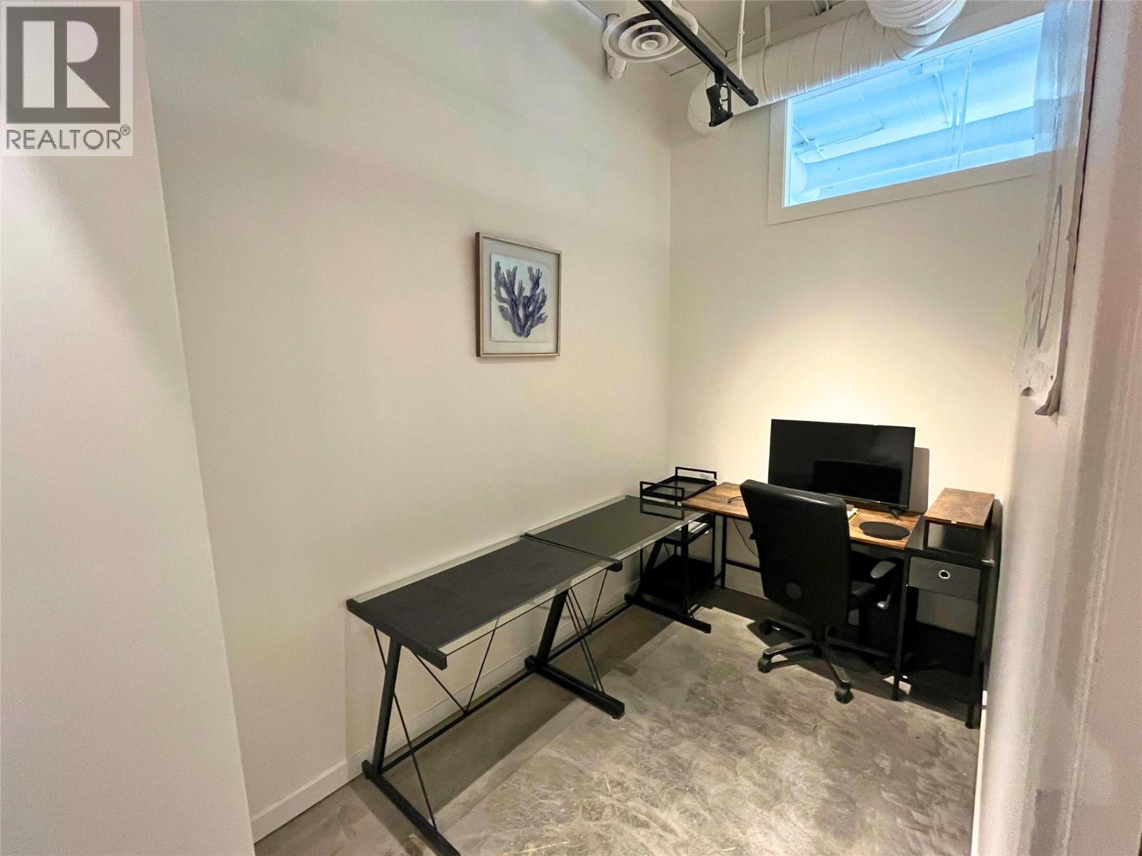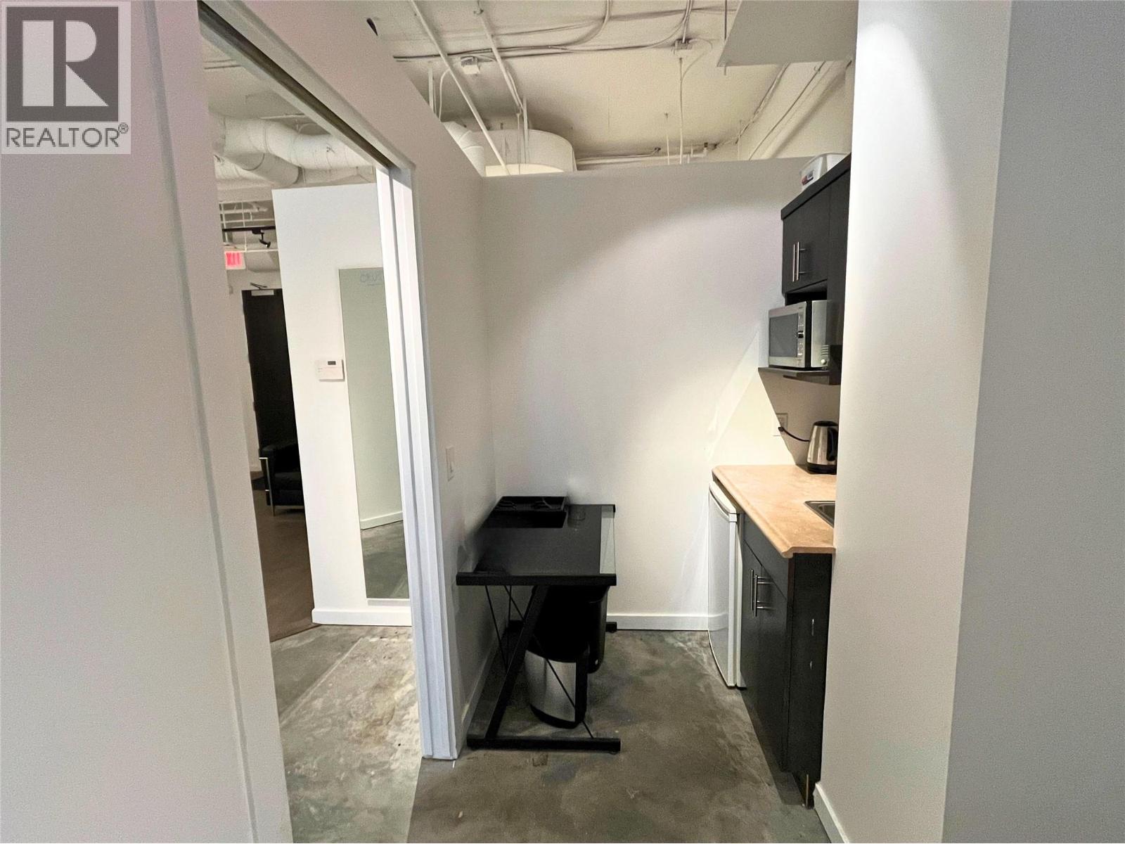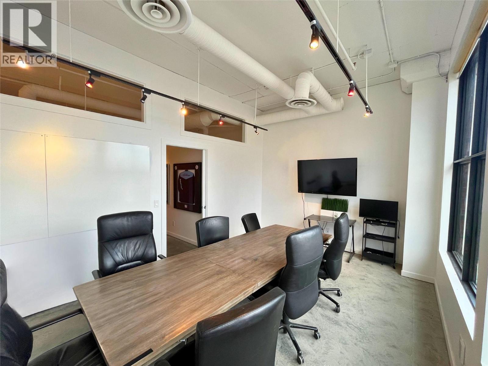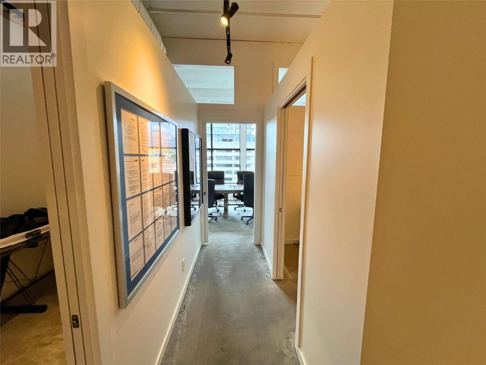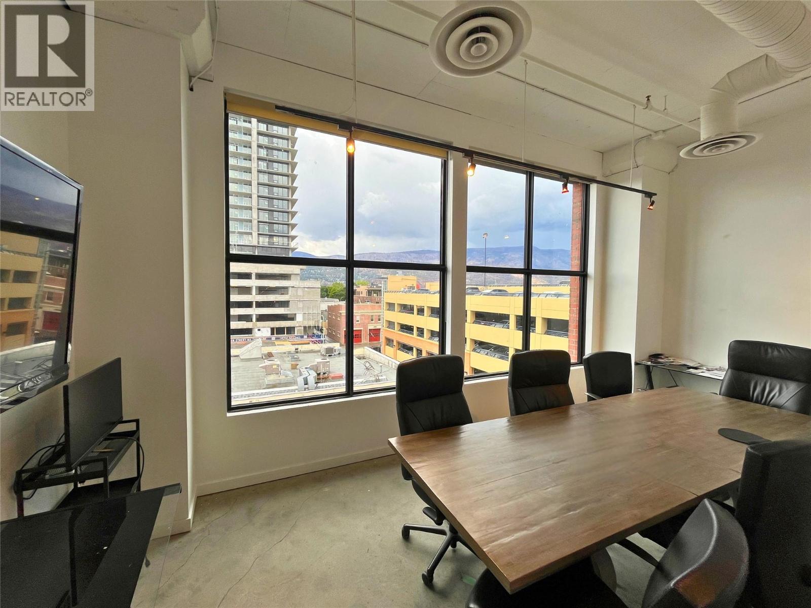 Opportunity to purchase a 784 SF fourth-floor strata office space in the heart of downtown Kelowna. Located on Pandosy Street, between Lawrence Avenue and Leon Avenue, the unit features an industrial-style finish with exposed piping, ductwork, and wiring; concrete flooring throughout; and finished flooring in the entrance/reception area. The layout includes an open reception area, two offices, a boardroom, a kitchenette, and access to shared common washrooms. The building boasts high ceilings and large windows, allowing for ample natural light. One 24-hour reserved parking stall is included in the nearby Chapman's Parkade, which is accessed via elevator and a covered walkway from the third floor. Heat and A/C are included in the strata fees. Strata fees are $451/month; parking is $162/month + GST. Nearby amenities include restaurants, coffee shops, boutiques, City Park, and Lake Okanagan. (id:58842)