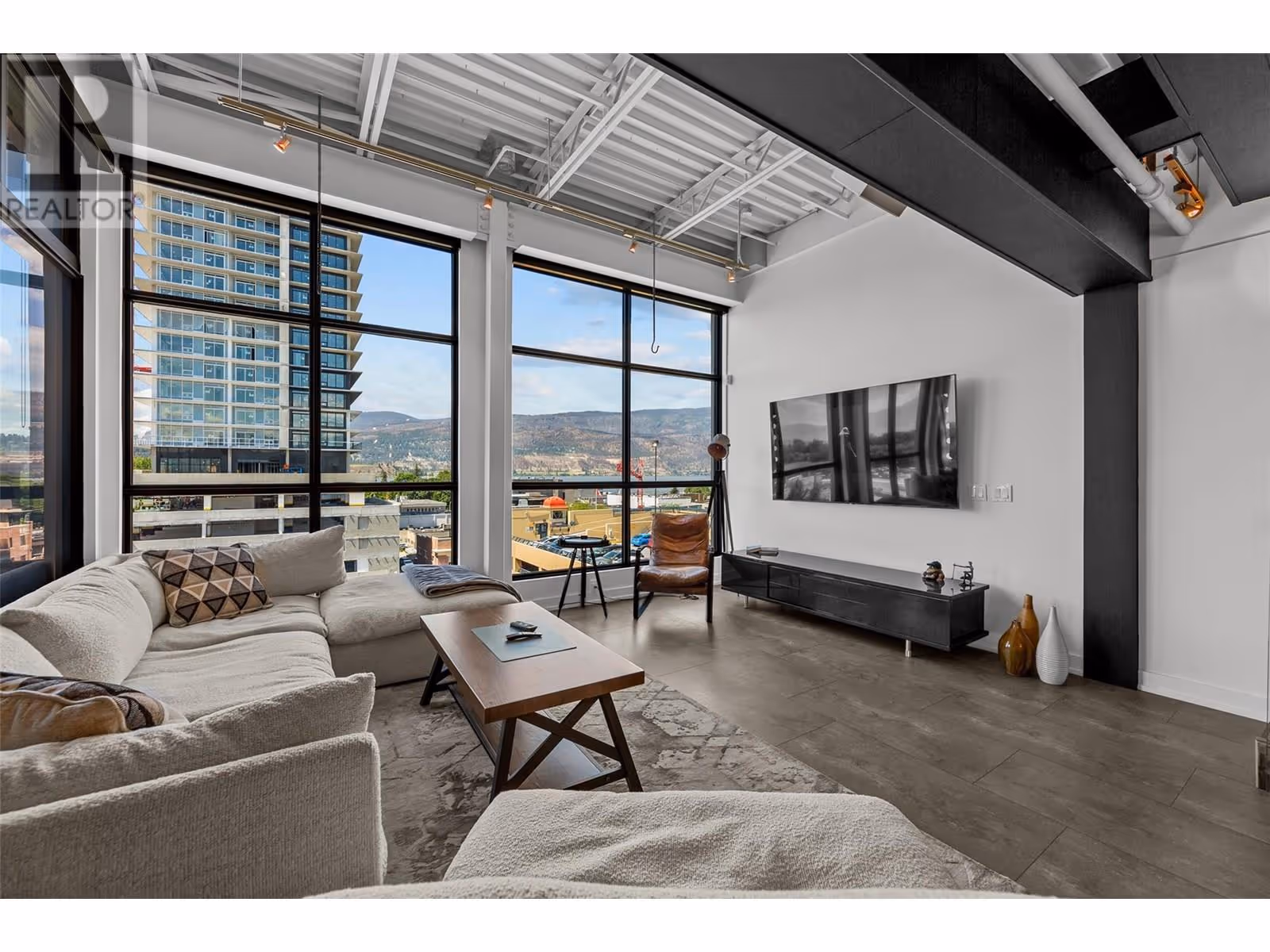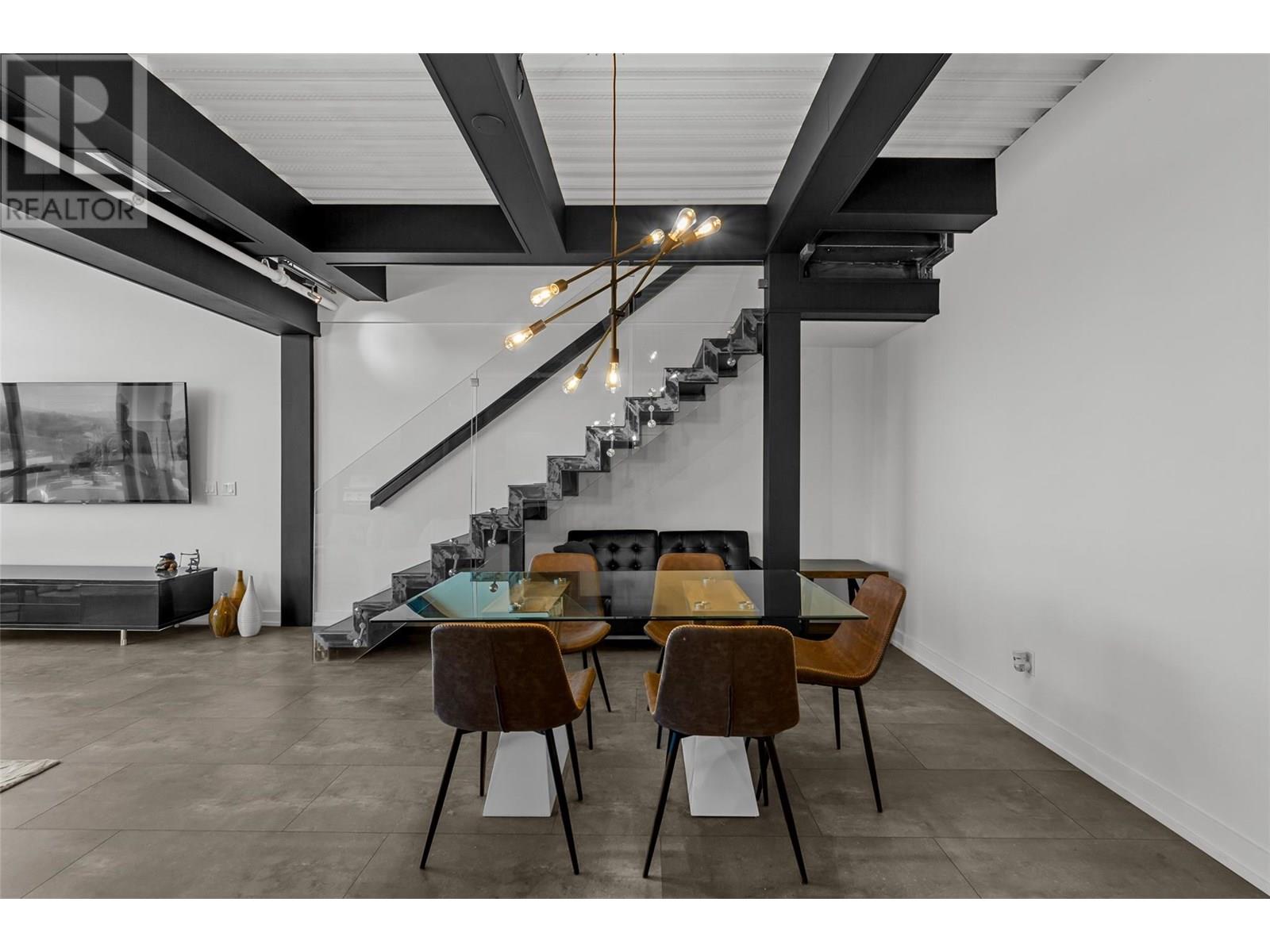 Discover Kelowna's most unique and luxurious condo—a fully renovated, lofted industrial-style masterpiece with unparalleled lake and city views. Perched atop a professional building with just five exclusive residences, this property promises an extraordinary living experience. The main floor boasts an expansive open-concept design featuring soaring high ceilings and dramatic floor-to-ceiling windows that flood the space with natural light. The stunning kitchen, equipped with top-of-the-line appliances opens to a heated, covered patio—perfect for year-round alfresco dining. Ascend to the primary retreat, where you'll be captivated by sweeping lake and city vistas. Every inch of this home has been meticulously updated with new flooring, a modern kitchen, state-of-the-art appliances, fresh paint, and elegant baseboards. This pet- and rental-friendly building offers the convenience of two large indoor parking stall. A property of this caliber must be seen to be truly appreciated. Don’t miss the opportunity to own this exceptional downtown loft and experience its unparalleled luxury and uniqueness firsthand. (id:58842)