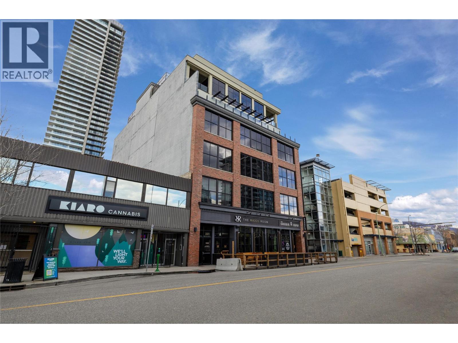 Top-floor New York loft-style living in the heart of downtown Kelowna with 818 sqft of open-concept space. Exposed trusses, heat ducts, and engineered hardwood floors set the stage for a modern industrial vibe. The kitchen features KitchenAid appliances, Dekton countertops, and a 5-stage reverse osmosis water system, flowing seamlessly into dining and living areas. A Murphy bed on the main floor adds flexibility for guests. Step onto the 9x10-foot deck with water and gas hook-up. Upstairs, the primary bedroom includes a walk-in closet and ensuite with heated floors. Floor-to-ceiling windows throughout the home showcase city and mountain views, with peekaboo lake glimpses from above. 12-foot ceilings and abundant natural light enhance the loft feel. Includes one indoor parking space and is both pet and rental friendly. Steps from shopping, dining, entertainment, and Okanagan Lake, this home blends style, convenience, and a vibrant downtown lifestyle. (id:58842)