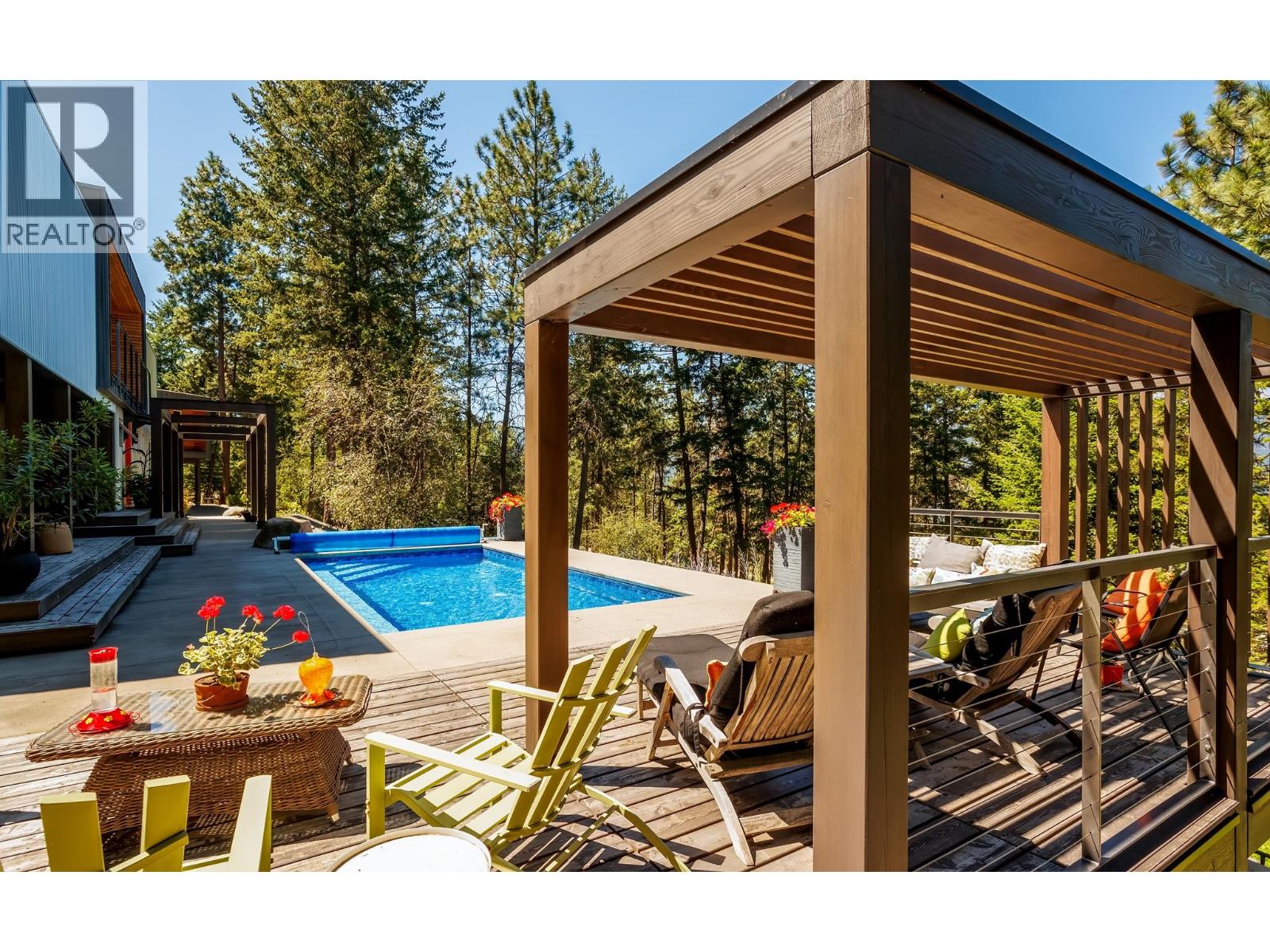 A private, park-like 9.35-acre retreat in the sought-after lakeside community of Carr’s Landing. Gated and meticulously maintained, this one-of-a-kind property features a stunning 3-bedroom main home with sleek, modern interior finishing and a European spa-inspired primary ensuite. The architecture blends West Coast, industrial, and contemporary design with expansive windows, curated outdoor spaces, and seamless indoor-outdoor flow. The legal 2-bedroom carriage house above the detached garage offers stylish guest accommodation with a distinct Tofino vibe. Outdoors, enjoy a serene inground pool, intimate garden courtyards, architectural landscaping, and a unique outdoor root/wine cellar — all designed for lifestyle and entertaining. Whether you’re relaxing in the sun, hosting friends, or simply taking in the natural surroundings, this property is a true sanctuary. A rare opportunity to own a legacy estate where privacy, style, and nature converge in one of the Okanagan’s most desirable communities. (id:58842)