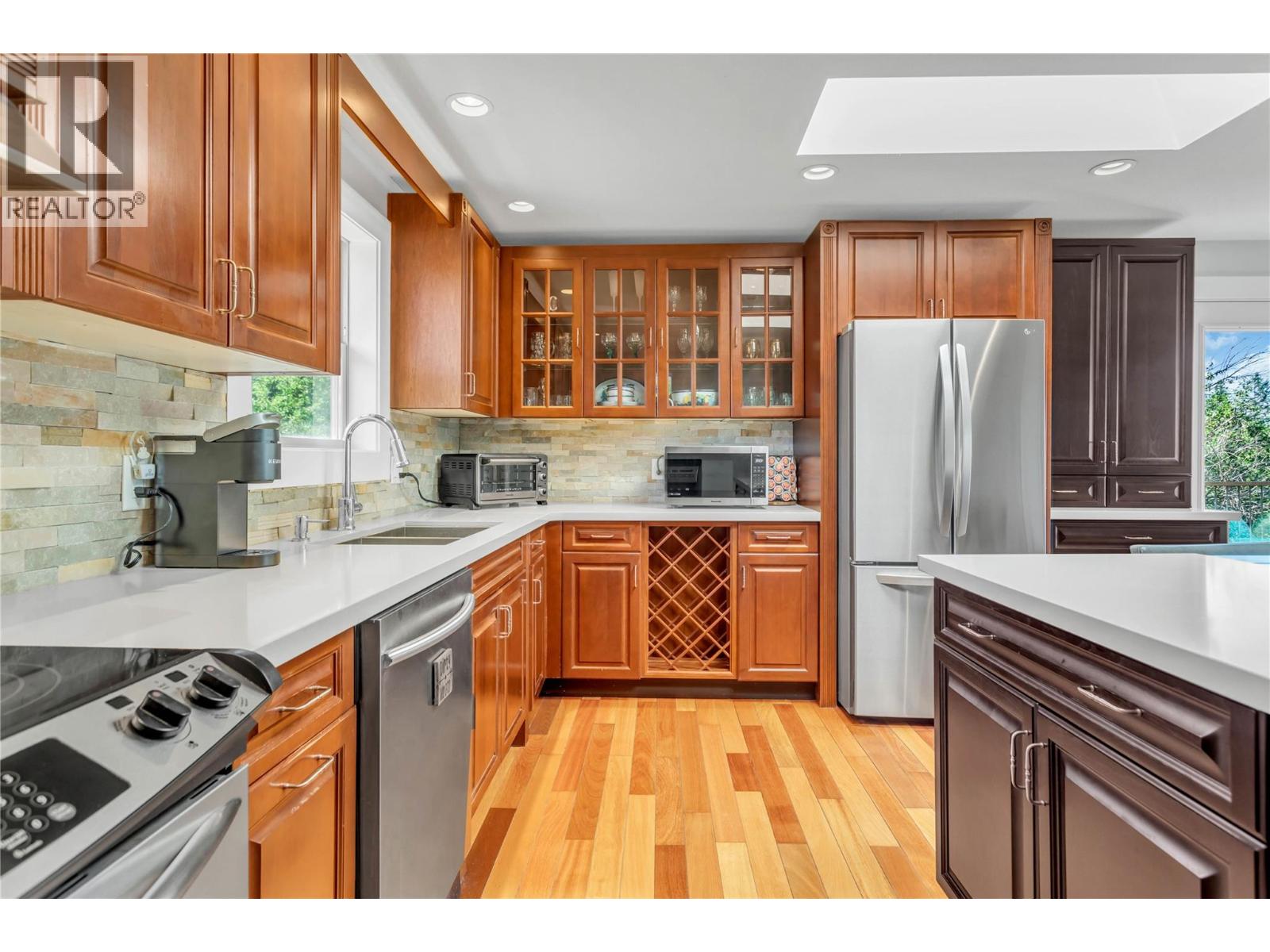 This amazing home set in the tranquility of Carrs Landing. 4-bed, 2-bath home offers breathtaking views in every direction, including stunning lake scenery. The home has a studio in-law suite with Murphy Bed, that was previously licensed for short term rentals. No through road leading to the Maki Coral Beach Trail right trail. The spacious property boasts ample parking for vehicles and recreational toys, an expansive front yard, fully fenced backyard, underground irrigation and a well-constructed storage building for added convenience. Step onto the inviting wrap-around deck and through the front door, where an open-concept living, kitchen and dining area welcomes you. The cozy gas fireplace, set within a stunning stone feature wall, compliments the custom-designed kitchen with quartz countertops and skylights that flood the space with natural light. Spanning over 1,900 sq. ft., this home has been thoughtfully upgraded with a 2019 A/C unit, furnace, and hot water tank, along with a 2016 kitchen renovation and a durable roof installed in 2008. The home is serviced by a treatment plant septic system which is a modern, regulated system designed to treat wastewater to a higher standard than conventional systems. Enjoy the ultimate Okanagan lifestyle with walking distance access to Gable Beach, Coral Beach and 50th Parallel Winery and all the amenities of Lake Country and Vernon. Don’t miss out, schedule your private viewing today! (id:58842)