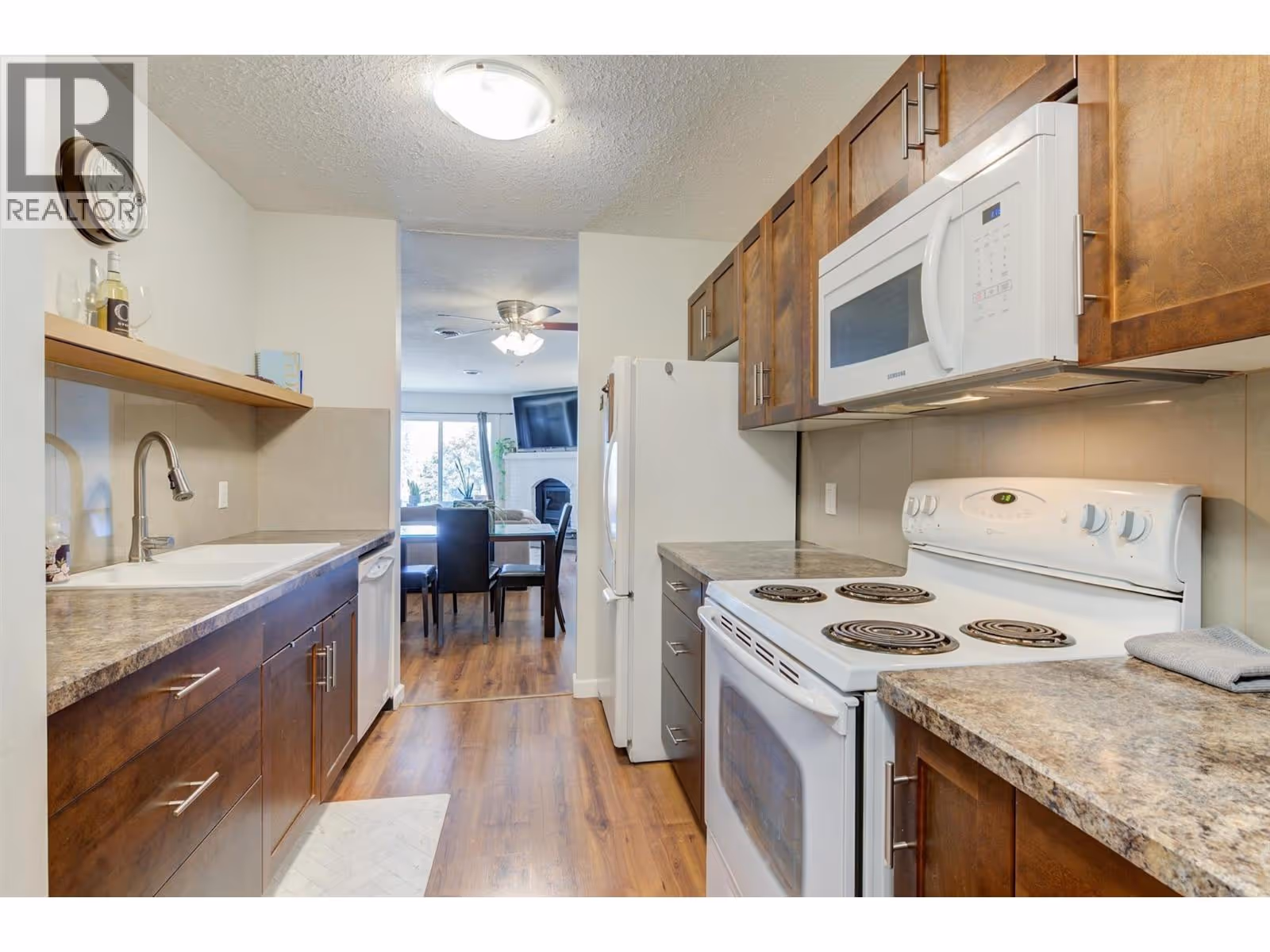 This renovated top floor condo is a true retreat, perfectly positioned on the quiet side of a solid concrete building that offers exceptional soundproofing between units! With 2 bedrooms and 2 bathrooms, it delivers both comfort and functionality. Step inside to a spacious, freshly painted living area with an open concept dining and living space, complete with a cozy electric fireplace. The kitchen features updated shaker style cabinetry, modern appliances, generous counter space, and even a dedicated coffee station. The primary bedroom easily accommodates a king sized bed, with walk through closets leading to a large ensuite. A second well sized bedroom is tucked beside the main 5 piece bathroom. Other highlights include upgraded laminate flooring, in suite laundry, ample storage, and secure underground parking. Enjoy the fully enclosed sunroom year round, or open it up to create fresh, airy outdoor space. A new patio door adds a modern touch and easy access. Low strata fees and a low maintenance lifestyle make this home even more attractive. Located just minutes from Parkinson Rec Centre, shopping, transit, and more! It’s the perfect blend of peace, convenience, and value. (id:58842)