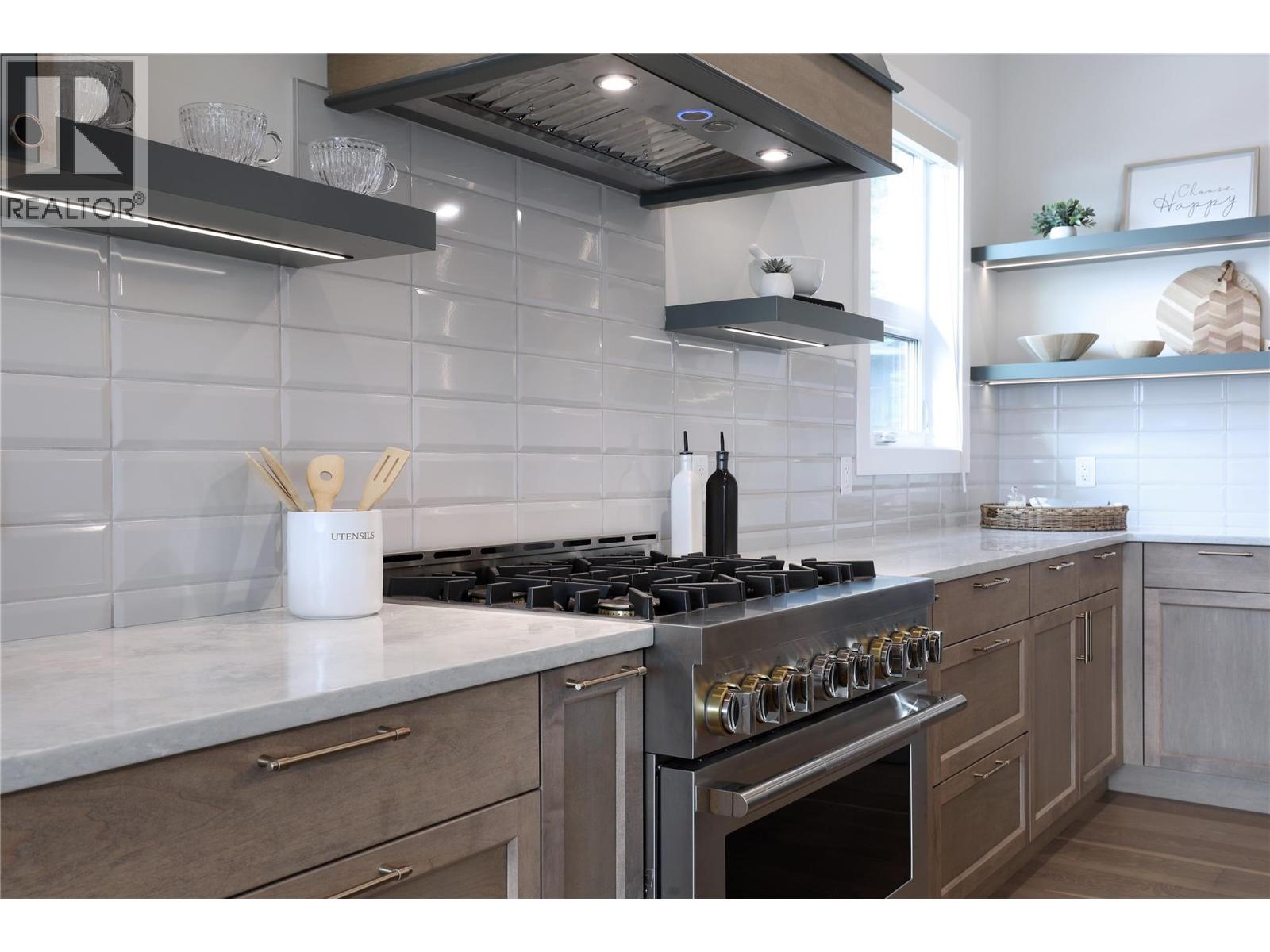 BEST LAKE VIEW, NEW HOME OFFERING! This stunning, BRAND-NEW (NO GST) custom family home in Traders Cove offers extraordinary LAKE & CITY VIEWS, a 3-CAR GARAGE and a 1-bedroom LEGAL SUITE! Situated on a quiet cul-de-sac, it's just a quick 15-minute drive to downtown Kelowna and buses provide transportation for the kiddos to Mar Jok Elementary school. The community has access to the beach (7 min walk), hiking & dirt biking trails, and many camping spots up Bear Creek Rd. The property has a great layout with 3 bedrooms on the upper level and a self-contained, 1-bedroom suite downstairs, perfect mortgage helper. The downstairs bedroom could be used as an office with a separate entrance and the option to have a huge rec room on the back. Ample parking is provided with a 1000SQFT of garage space. The upper level features an open-concept design, highlighting a 2026 Okanagan HOUSING AWARD FINALIST KITCHEN with quartz countertops and high-end JennAir appliances, including a gas range. The open living room is complemented by a modern gas fireplace and sliding patio doors that lead to an oversized view deck, ideal for enjoying stunning LAKE & DOWNTOWN KELOWNA CITY VISTAS. A convenient butler's kitchen offers additional workspace and storage. Throughout the home, quality is evident with custom-engineered hardwood flooring upstairs and durable “oak laminate” downstairs. The fully landscaped backyard includes a large covered entertainment deck. There is room for a small pool. (id:58842)