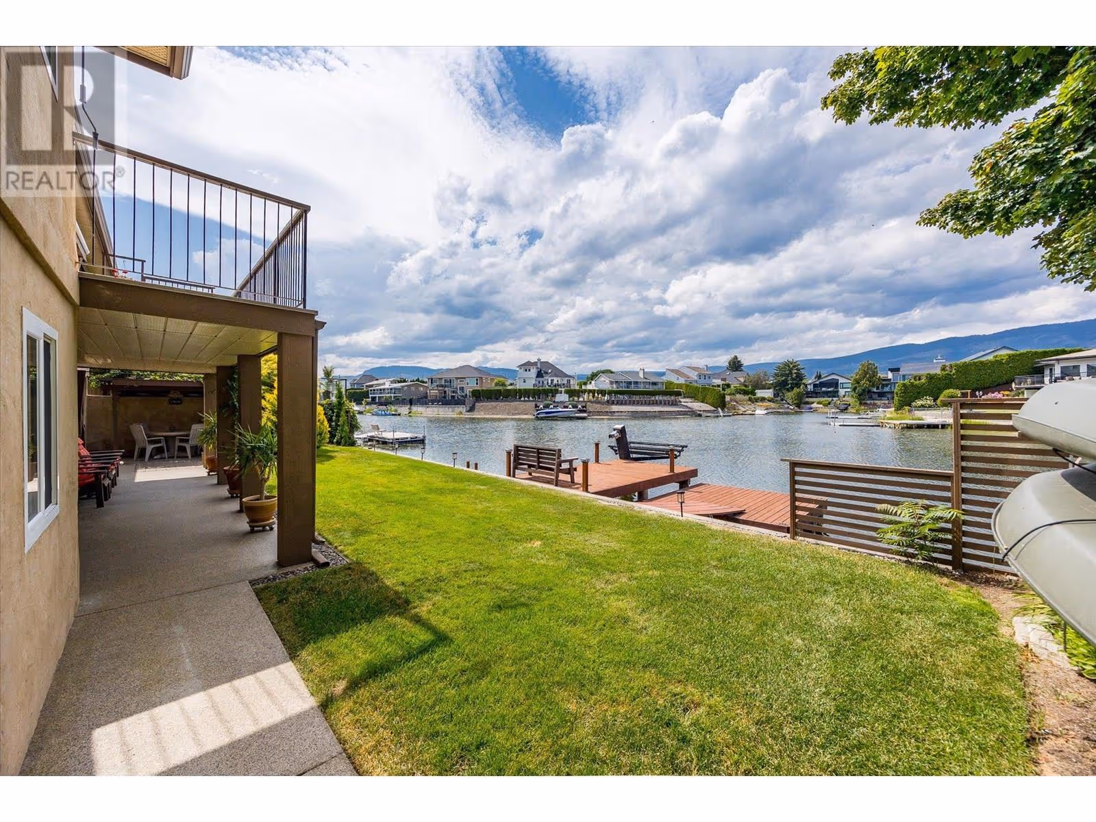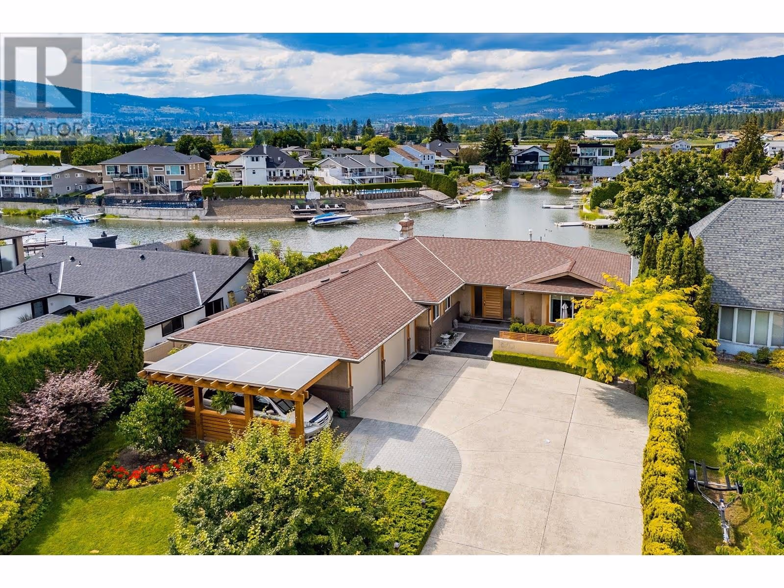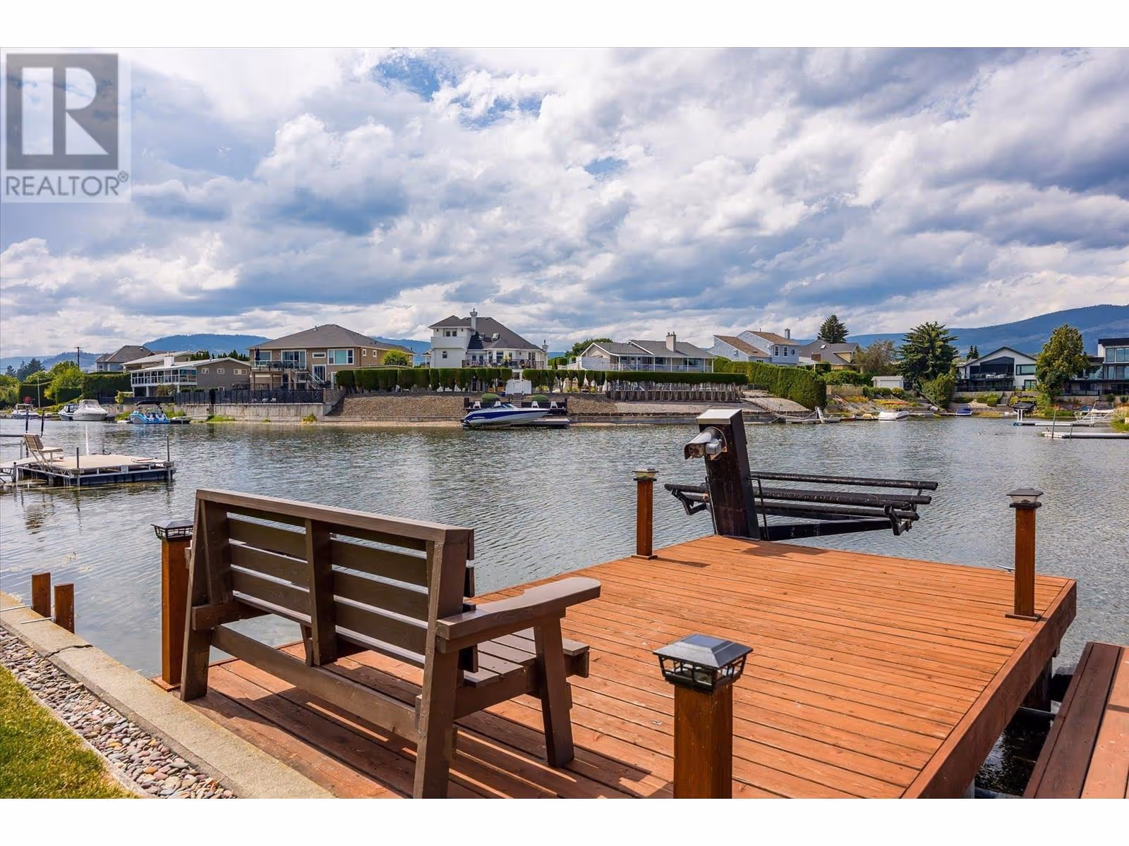 Welcome to a truly exceptional waterfront retreat on Pritchard Canal, where the Okanagan lifestyle comes to life. Here you will find the convenience of waterfront living without the higher tax bill. Designed for comfort and elegance, this professionally renovated 3-bedroom walkout rancher offers over 3,600 sq. ft. of luxurious living space. The bright, open floor plan flows seamlessly from the gourmet kitchen, boasting a granite island, custom wood cabinetry, stainless steel appliances, and a gas range to the inviting living areas with maple hardwood floors. The main level features a sophisticated master suite, a private office, and an inspiring art studio. Downstairs, a spacious family room, and a convenient guest or in-law suite complete with its own laundry and private entrance provide ample flexibility. Enjoy modern amenities like a Navien instant hot water system. Heading outside, you are welcomed by captivating views of the canal waterway and the picturesque Mission Hill Winery bell tower. Outdoor entertaining is a dream with a covered patio, a charming timbered pergola, a main level deck, and a beautifully landscaped, east-facing front courtyard. And as expected with a property on the waterway, this home on prestigious Pritchard Drive offers a newer dock with 4000 lb electric boat lift for your private moorage. With an impressive front entry, a double garage, covered pergola carport, this is an unparalleled opportunity to embrace the best of Okanagan living. (id:58842)