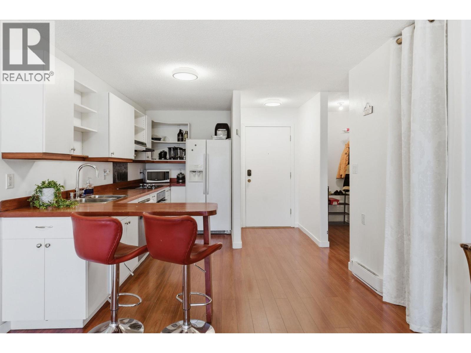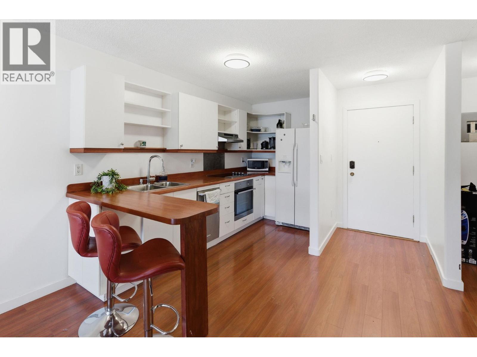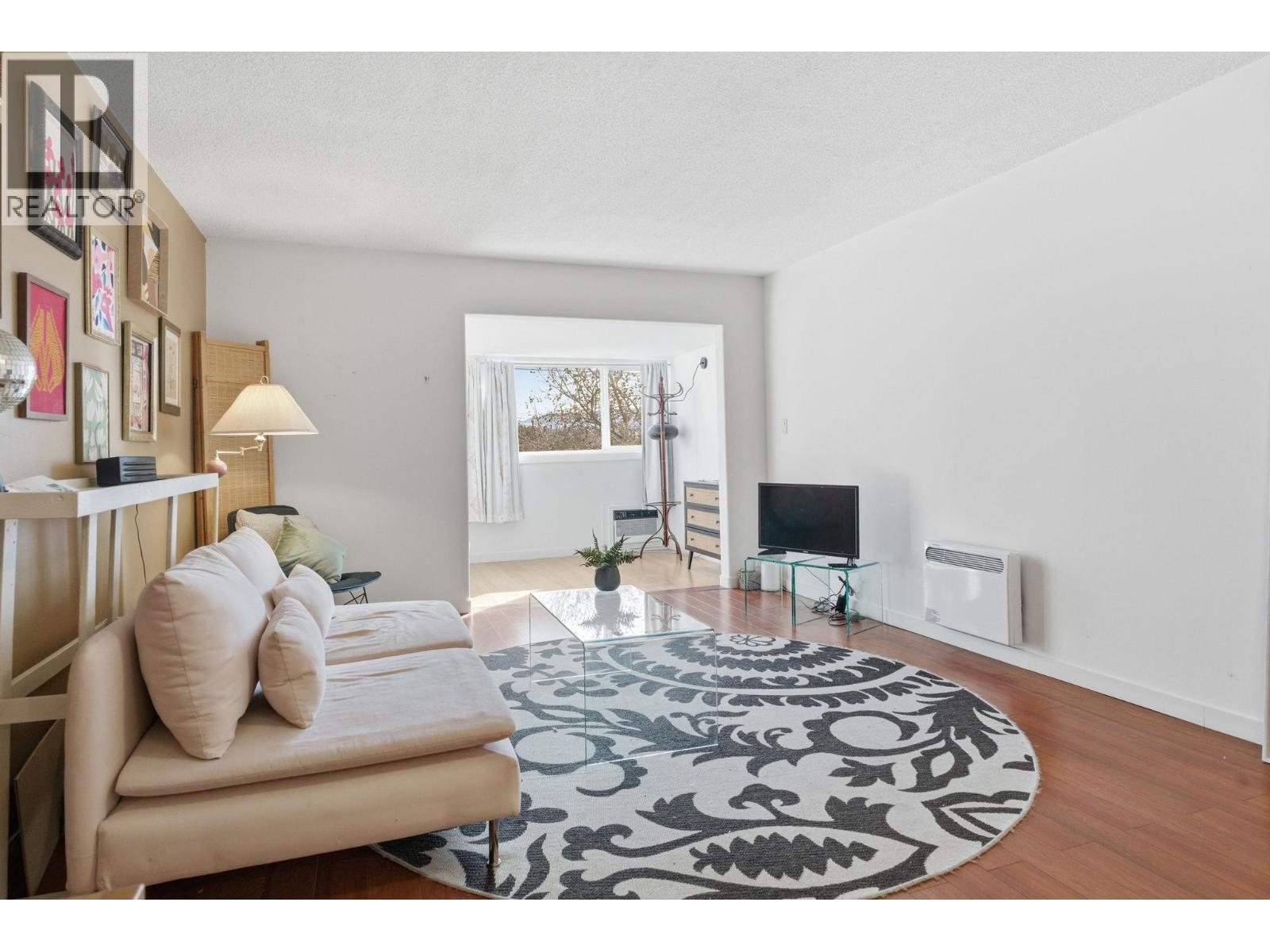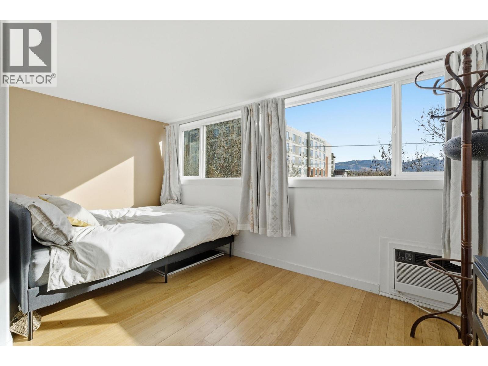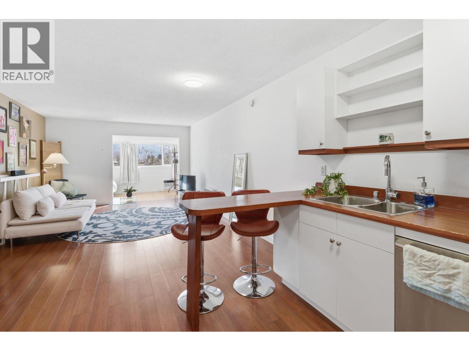 Beautfully bright, open, affordable Top Floor 1 bed/1bath condo in the heart of Kelowna. Location, Location. Tucked away in a quiet little cul de sac close to the soon to be new Parkinson Rec Center, parks, pickleball, transit, the rail trail and shopping. This one bedroom was originally a large studio that has been converted into a one bedroom. Flooded with morning light this east facing unit has a 4 piece bath, good-sized kitchen area with peninsula bar for extra counter space and eating area and newer Electrolux appliances: Dishwasher, induction cook top & oven. Underground secure parking stall #30, Storage on same floor #310. Tamarack Terrace has on on-site friendly, helpful building manager, is a well-run strata and a welcoming community. Whether you're a first-time buyer, a student a down-sizer or an investor this centrally located home is a smart choice with great potential. (id:58842)