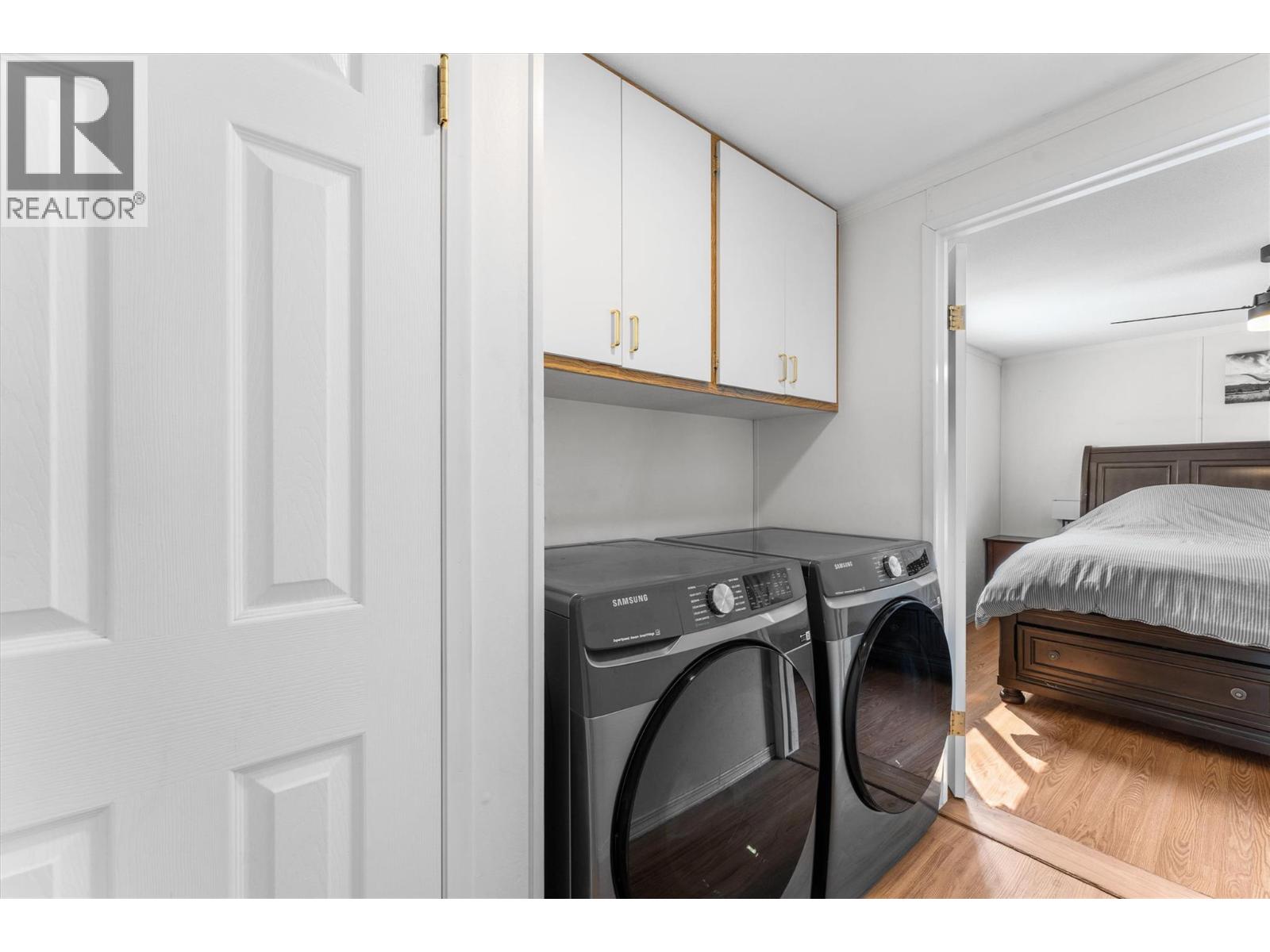 RENOVATED! Welcome to this beautifully renovated 1996 manufactured home in the heart of West Kelowna! This charming two-bedroom, one-bathroom residence sits on a generous, fully usable yard—perfect for outdoor living, gardening, or simply enjoying the Okanagan sunshine. Step inside and you’ll find a bright, refreshed interior featuring an updated kitchen with modern cabinetry and all new appliances. Fresh paint throughout, new lighting, and stylish updates create a move-in-ready atmosphere. Comfort is top of mind with a brand-new heat pump and air conditioning system, ensuring year-round efficiency and climate control. The Poly B has also been replaced with PEX! The home offers excellent flow with an open living and dining area, two comfortable bedrooms, and an updated bathroom. Outside, the oversized yard provides plenty of space for entertaining, especially on the 800 SqFt cozy covered patio with a spectacular mountain view! There is also a gorgeous Plum Tree on the property, producing more fruit than you will ever be able to eat! Conveniently located close to schools, shopping, all West Kelowna amenities and only 10 mins to downtown Kelowna, this renovated gem is the perfect opportunity for first-time buyers or downsizers. (id:58842)