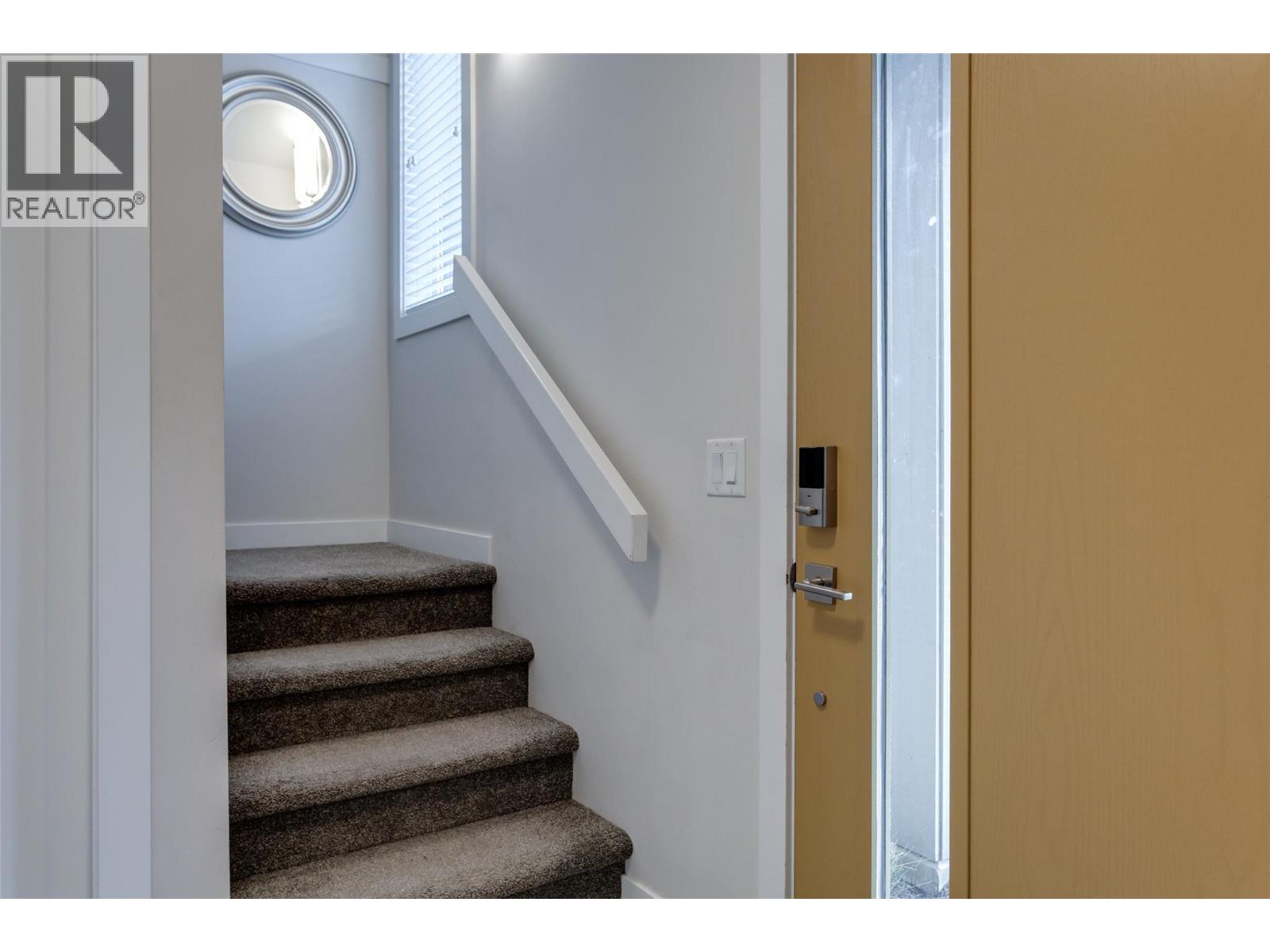 Discover Drysdale Row, a beautiful and thoughtfully created 4-bedroom, 2.5-bathroom townhome in one of North Glenmore’s most sought-after communities. Offering just under 1,600 sq. ft., the open-concept main level is designed for modern living, with elevated ceilings, a bright & spacious living area, and a gorgeous kitchen at the heart of the home. This home features a wider floor plan and large windows that fill the space with natural light. Situated on a quiet residential street, the sidewalk access leads to a charming front yard. The chef-inspired kitchen showcases a large quartz island with built-in wine storage, stainless steel appliances, and a gas range, flowing seamlessly into the open-concept living and dining areas—ideal for entertaining. A deck made for morning coffees or summer BBQs and a stylish 2-piece powder room complete this level. Upstairs offers three spacious bedrooms, a full bathroom, and convenient laundry. The primary suite includes spa-like ensuite and a walk-in closet. The lower level features a fourth bedroom or flex space, perfect for a home office, gym, or hobby room, with direct access to the side-by-side double garage. Located in a family-friendly neighbourhood, it is only a few steps to Dr. Knox Middle School and North Glenmore Elementary, with bus routes to UBCO, and close to parks, trails, shopping, and restaurants. (id:58842)