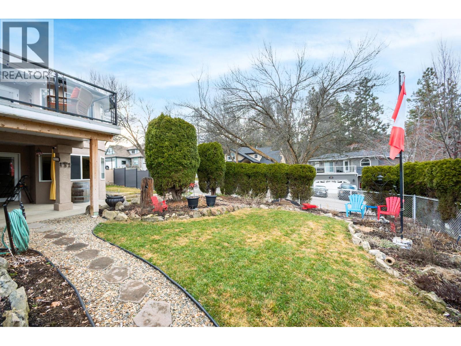 Welcome to this beautifully updated family home tucked away on a quiet cul-de-sac in Kelowna’s desirable Glenmore neighbourhood. This spacious residence offers a bright, functional layout designed for comfortable everyday living and entertaining. Room for the whole family with 5 Bedrooms + Den, and 3 bedrooms on the main. The stunning kitchen was fully renovated in 2022 and features quartz countertops, a gas stove, and a movable oversized island perfect for gathering with family and friends. The home boasts renovated bathrooms, including a luxurious ensuite with a steam shower, soaker tub and heated floors for a true spa-like retreat. With too many thoughtful upgrades and features to list including gas fireplace, built in vac; new hot water tank, all NEW plumbing (PEX: the good kind), appliances and more, Enjoy outdoor living to the fullest with a large deck and stairs down to a beautiful fully fenced backyard, complete with a pergola, arbor, water feature, and carefully designed landscaping—an ideal space to relax or entertain. Artificial turf out front for no maintenance green all year round. The property also offers a double garage, plus additional RV parking for 2! This property has been meticulously maintained and enhanced throughout with immense pride of ownership. Situated across from Caro Park, walking distance to schools, shopping, and amenities, this home offers the perfect balance of peaceful cul-de-sac living and easy access to everything Kelowna has to offer. (id:58842)