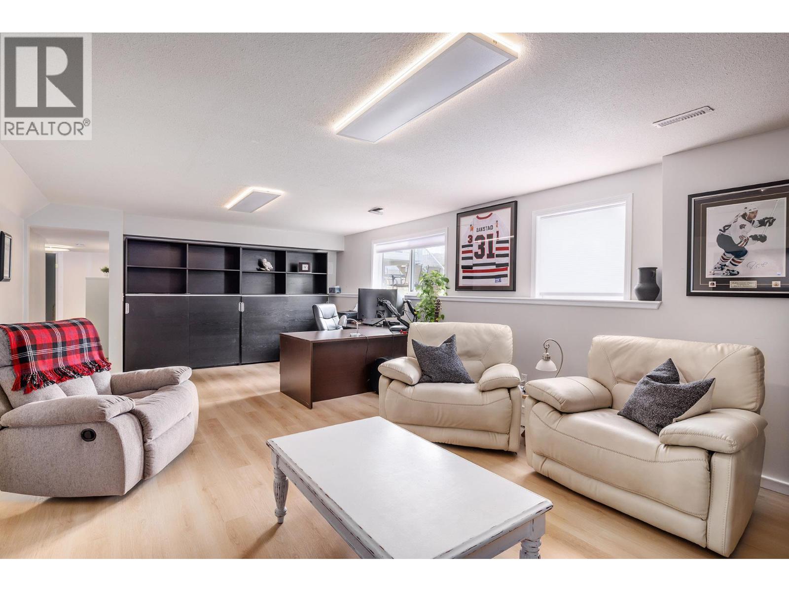 Beautifully updated rancher set on a quiet cul-de-sac on a flat lot with views of Okanagan Lake and ample parking. Vaulted ceilings in the living and dining areas create a bright, open feel with an elevated sense of space. The recently renovated kitchen is a standout, featuring new appliances, quartz countertops, a large pantry, a window bench with built-in storage, and an oversized island with seating. A stylish wine and coffee bar with both a wine fridge and a beverage fridge adds to the home’s appeal. Durable LVP flooring runs throughout. The main level offers three bedrooms and two beautifully renovated bathrooms, while the lower level provides additional flexibility with a bedroom, rec room, and flex space—ideal for a home gym or den. With a separate rear entry and existing plumbing access in the workshop area, the home presents excellent suite potential. Furnace (2009), A/C (2005), hot water tank (2020), & roof (2005). Fenced yard with chain link installed in 2021 adds privacy. Located just 15 minutes from Kelowna International Airport and within walking distance to renowned wineries including Ex Nihilo Vineyards, Arrowleaf Cellars, Gray Monk Estate Winery, Intrigue Wines, & O'Rourke's Peak Cellars. Enjoy easy access to Jack Seaton Park and nearby Davidson Road Elementary School, making this an ideal home for both lifestyle and convenience. (id:58842)