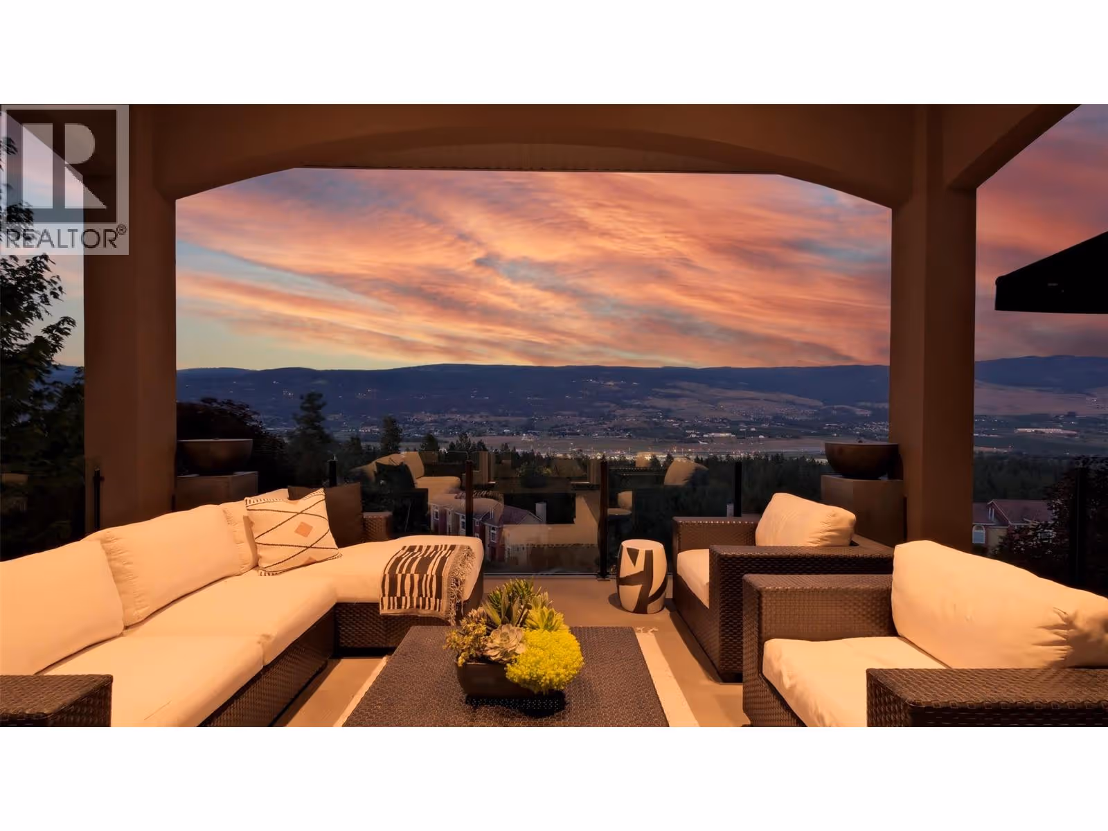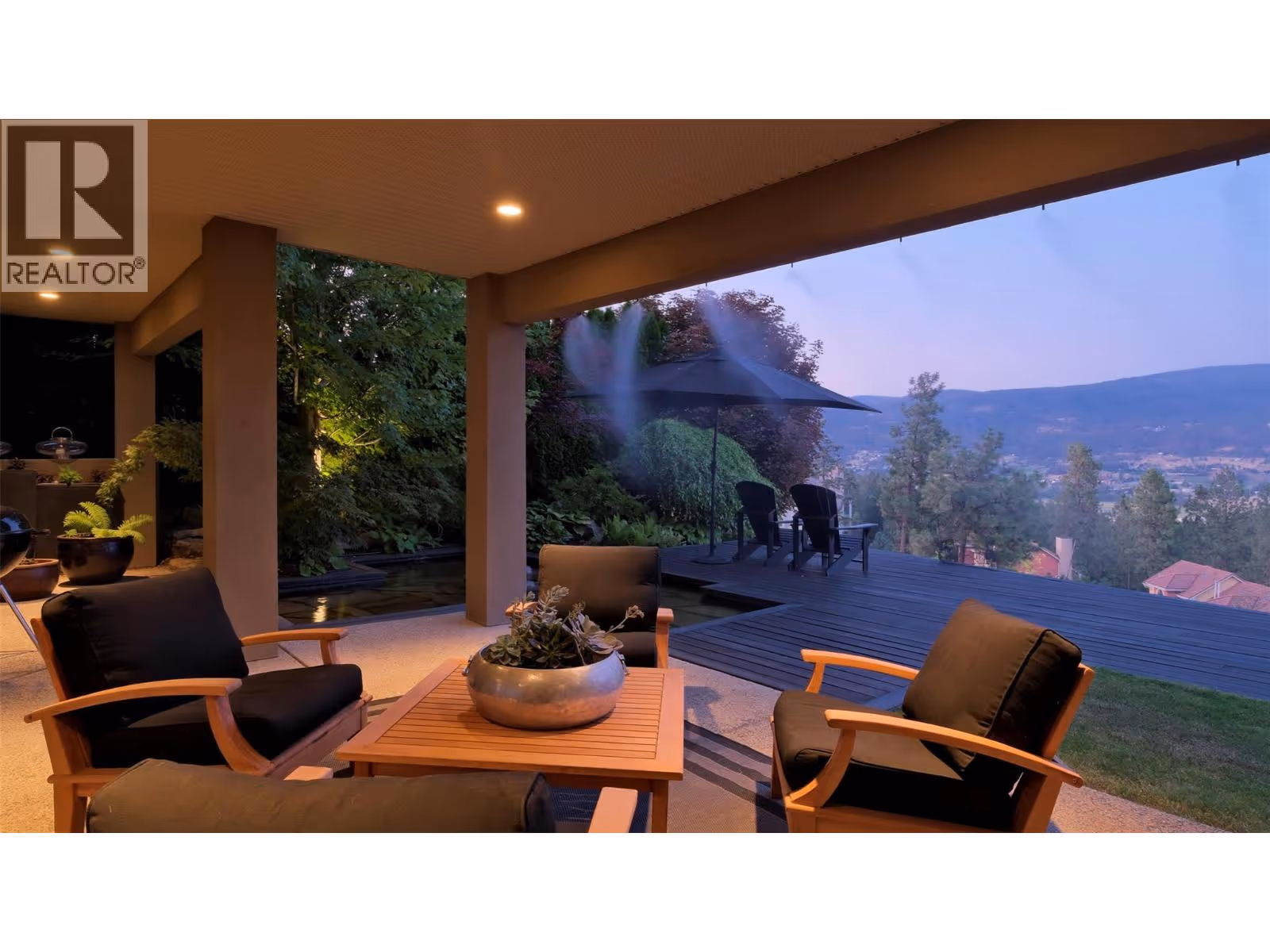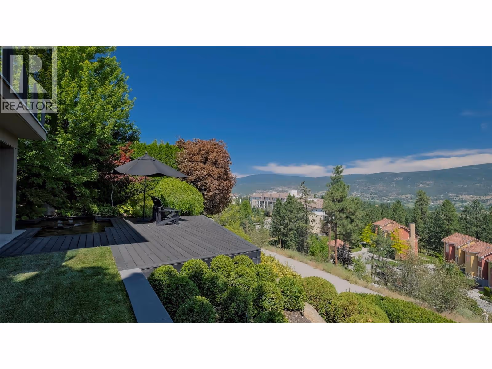 This stunning 3-bedroom plus den residence offers breathtaking east facing mountain views and high-end finishes throughout. The custom-designed Carolyn Walsh kitchen features a large island, a 6-burner Wolf gas cooktop, two high-end Liebherr fridges, built-in Miele Coffee maker and ample storage. Climate controlled wine room on the lower level and also a 22ftx 23ft gym. The professionally designed outdoor space is incredibly private, perfect for relaxing or entertaining, and includes water features in both the backyard and private front courtyard. Misting systems have been installed for added comfort. The garage has epoxy floors, storage cabinetry and slat wall system to keep everything organized. Hot Water tank 2022. High Efficiency Furnace 2023. Tile roof. This property truly has it all, combining luxury, privacy, and spectacular views. Fantastic location! Minutes from shopping, multiple golf courses, university and the airport. (id:58842)