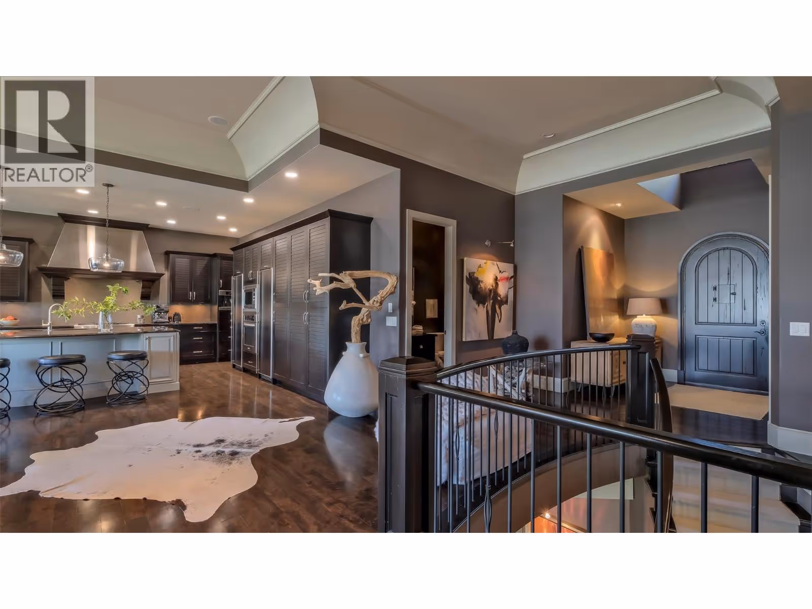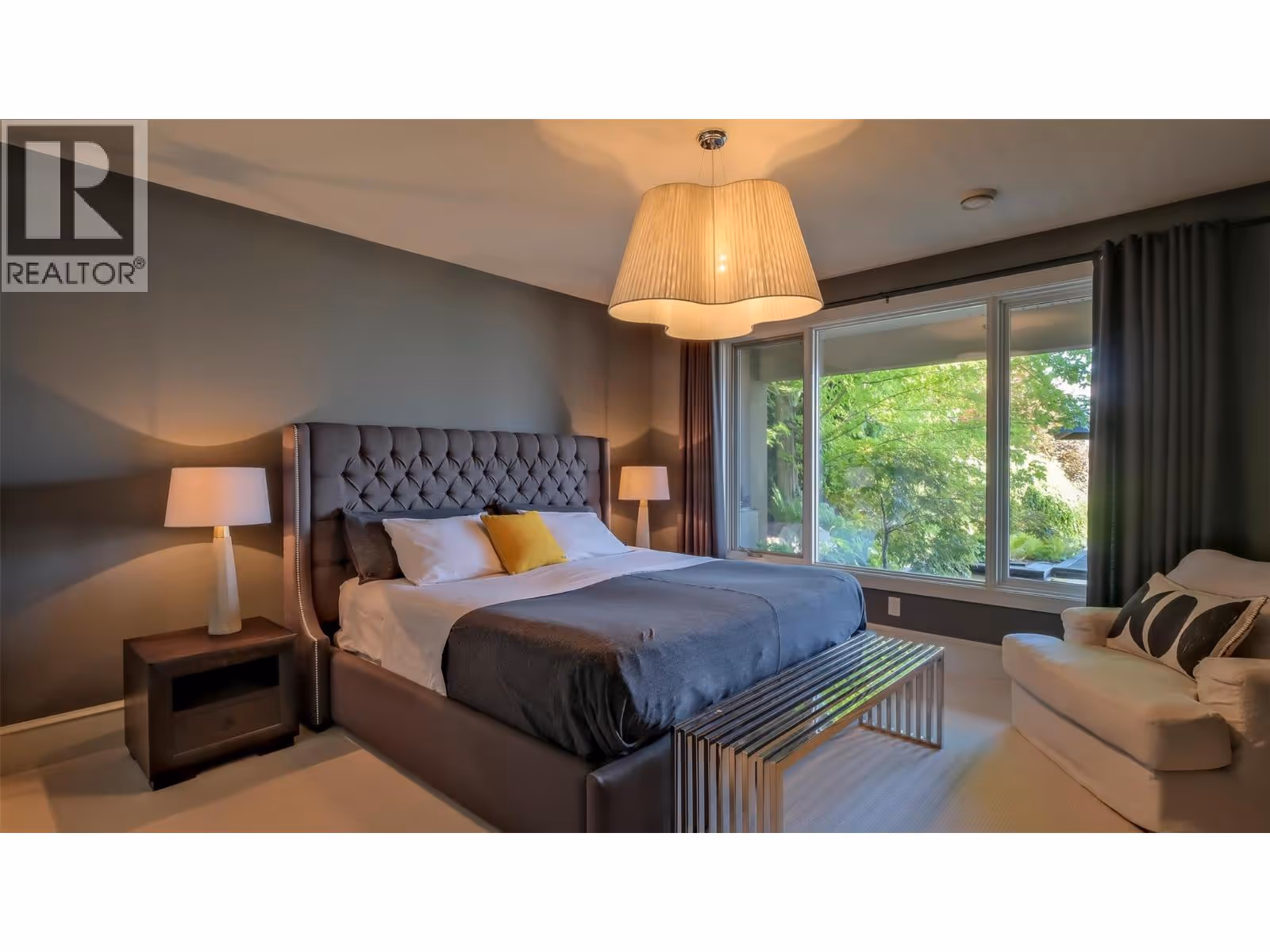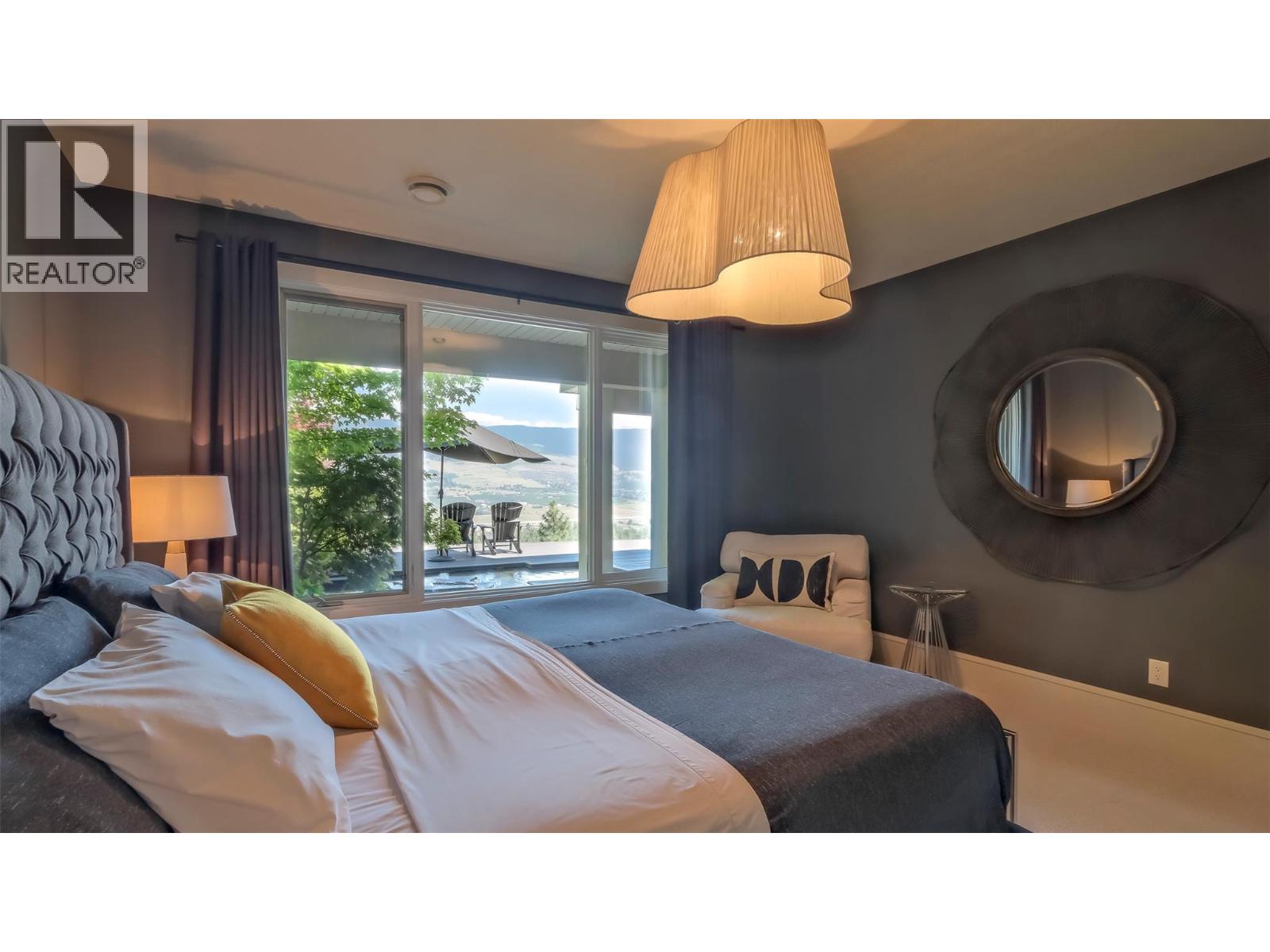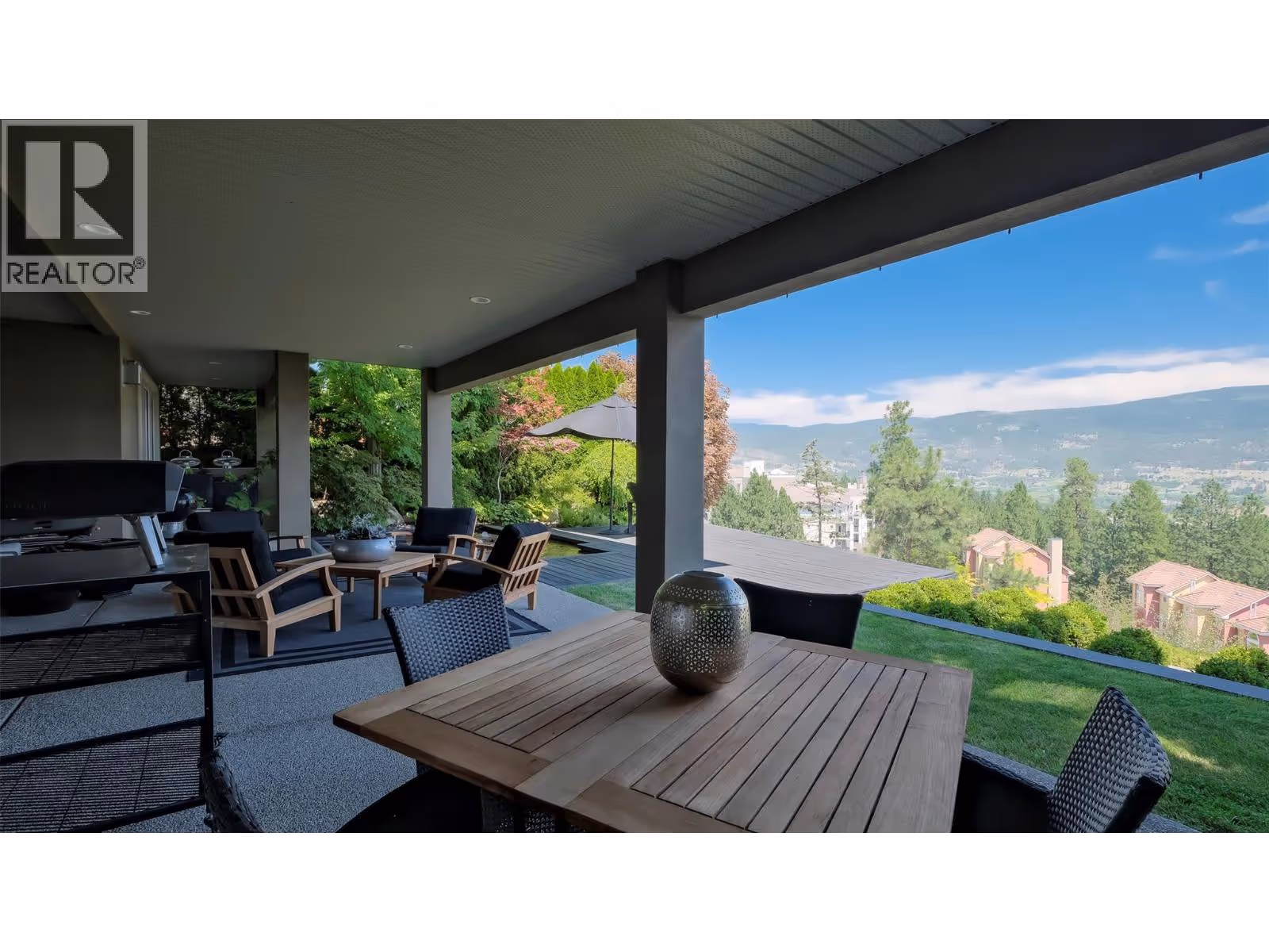 This stunning 3-bedroom plus den residence offers breathtaking east facing mountain views and high-end finishes throughout. The custom-designed Carolyn Walsh kitchen features a large island, a 6-burner Wolf gas cooktop, two high-end Liebherr fridges, built-in Miele Coffee maker and ample storage. Climate controlled wine room on the lower level and also a 22ftx 23ft gym. The professionally designed outdoor space is incredibly private, perfect for relaxing or entertaining, and includes water features in both the backyard and private front courtyard. Misting systems have been installed for added comfort. The garage has epoxy floors, storage cabinetry and slat wall system to keep everything organized. Hot Water tank 2022. High Efficiency Furnace 2023. Tile roof. This property truly has it all, combining luxury, privacy, and spectacular views. Fantastic location! Minutes from shopping, multiple golf courses, university and the airport. (id:58842)