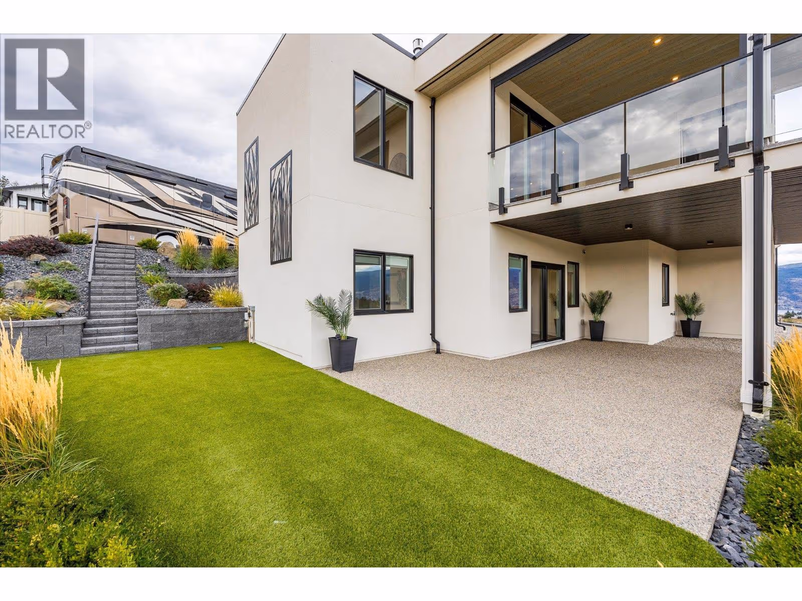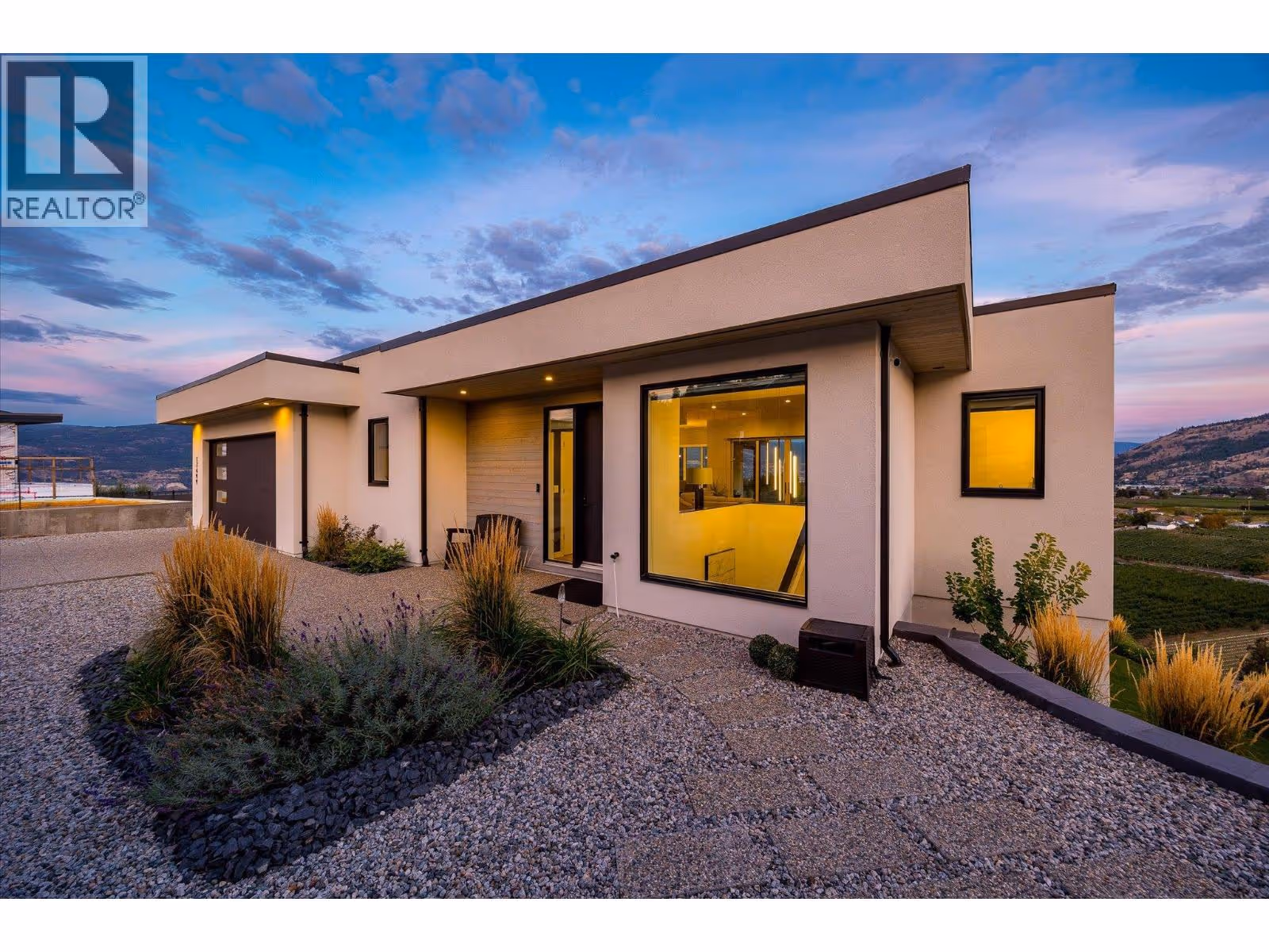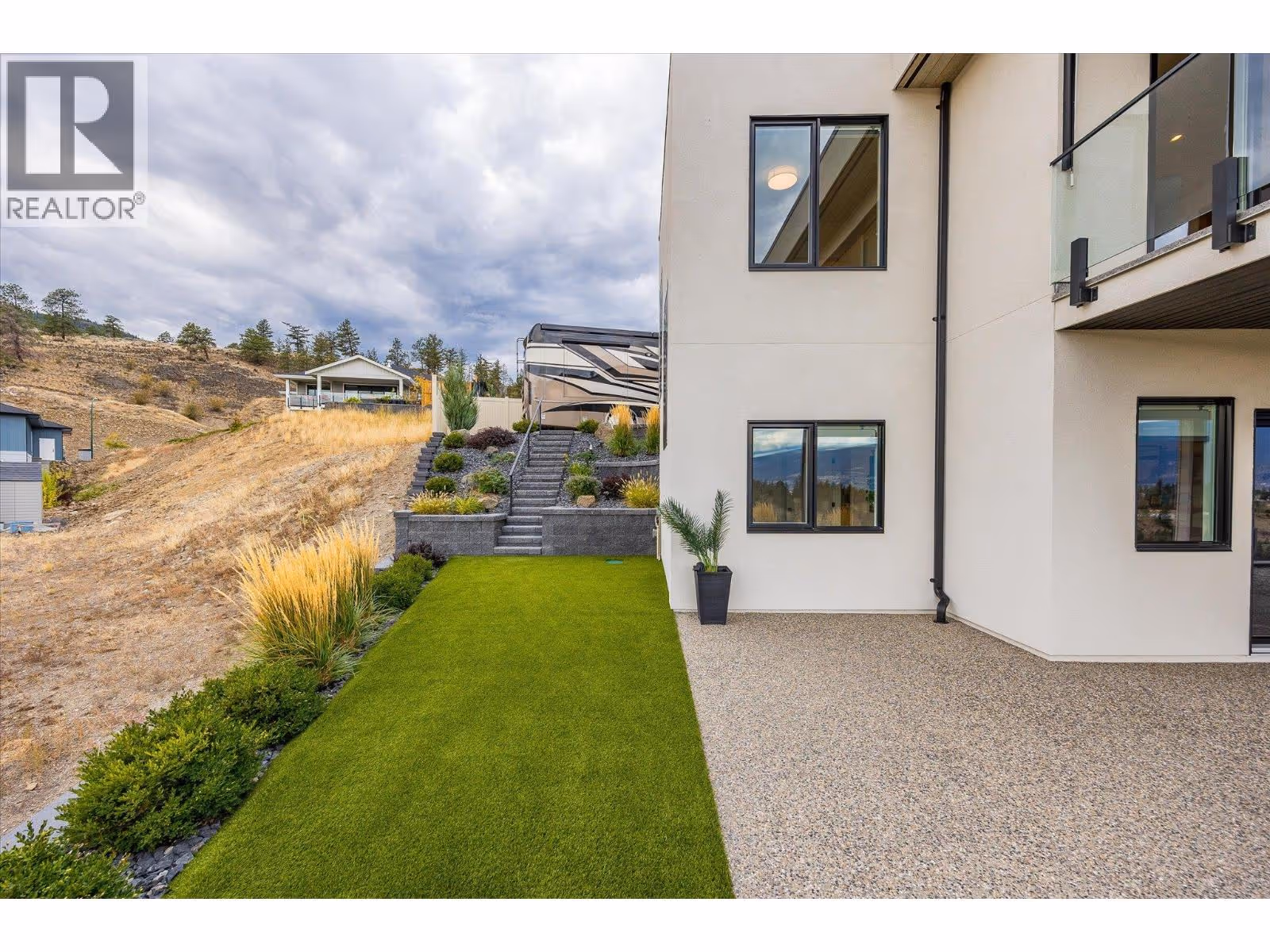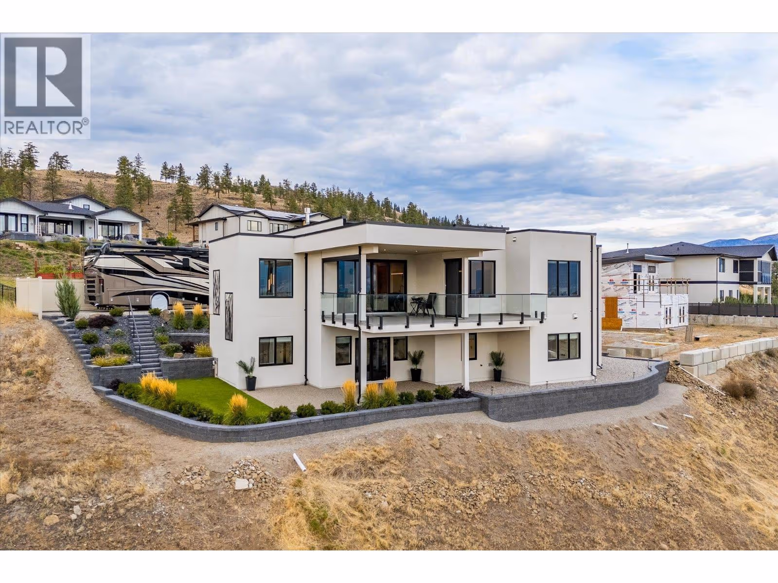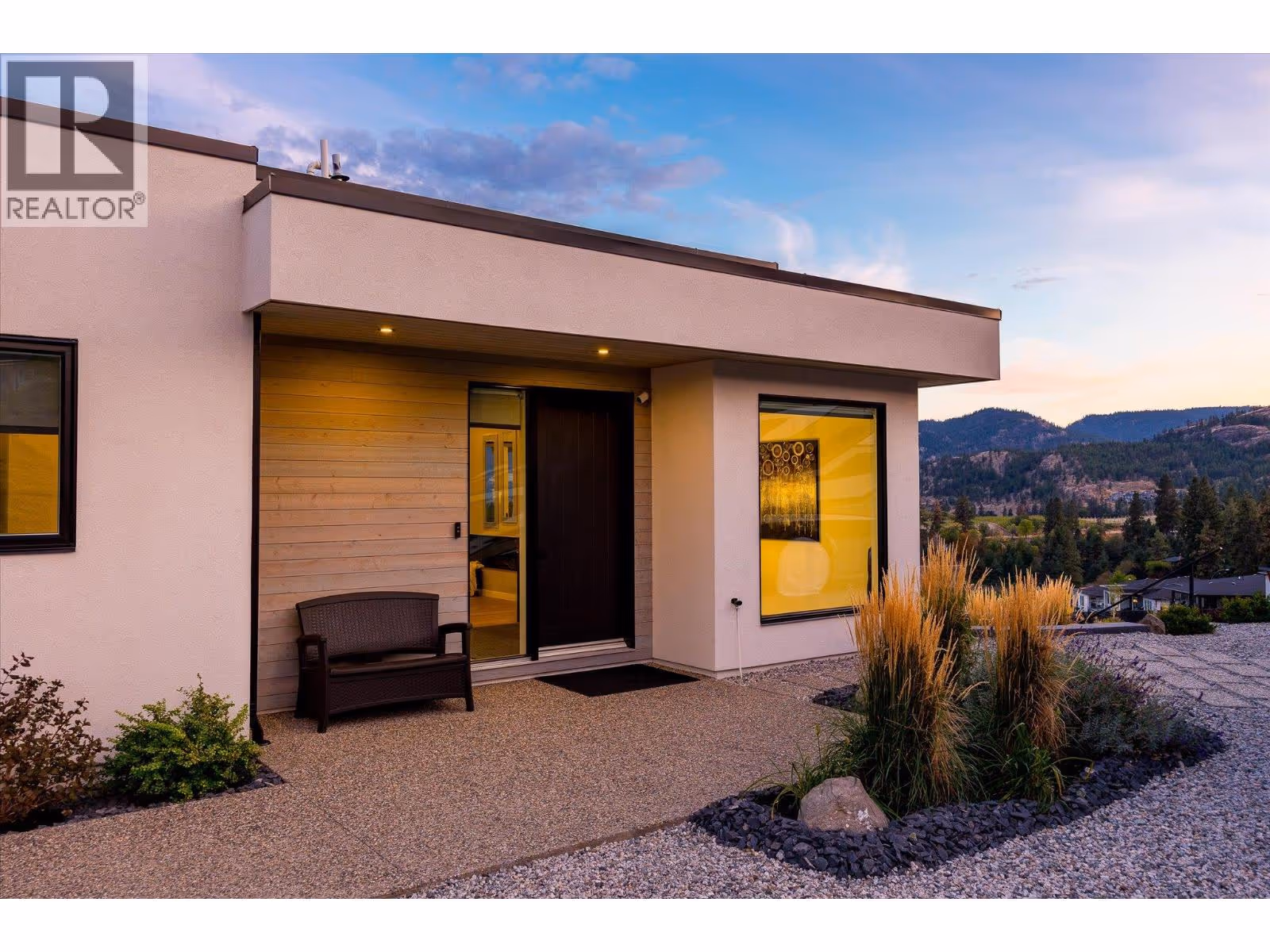 Welcome to this immaculate custom home in Summerland’s sought-after Hunters Hill community, built by renowned Richie Custom Homes. Offering nearly 3,000 sq.ft. of refined living, this three bedroom and office, three bathroom residence showcases panoramic lake, mountain, and valley views. The chef’s kitchen is equipped with custom cabinetry, premium Fisher & Paykel appliances, and seamless flow into the open living area. The primary wing features gorgeous views and complete privacy, complementing a spa-inspired primary suite with heated floors. The main floor also has a bright office and beautiful powder room. Downstairs are two additional bedrooms, gym/flex room, full bathroom, and a fantastic storage room (easily converted to an additional bedroom). The lower level features polished concrete floors, and full in-floor radiant heating. Additional features include on-demand hot water, a private gym, ample storage, and a built-in security system for peace of mind. The Park Place garage impresses with epoxy floors & custom cabinetry, and ready for EV charging. Outdoors, enjoy an artistic shaded deck, hot tub connection, synthetic turf, a 42 foot x 10 foot RV pad with 50-amp service, irrigation, and low maintenance landscaping. Completed in 2022, this home shows brand new, with home warranty in place — a perfect harmony of luxury, technology, and design. (id:58842)