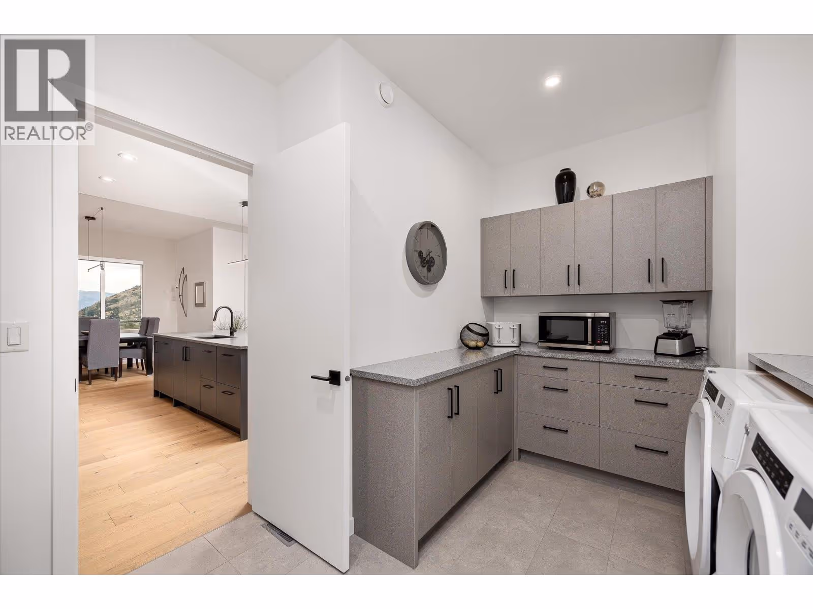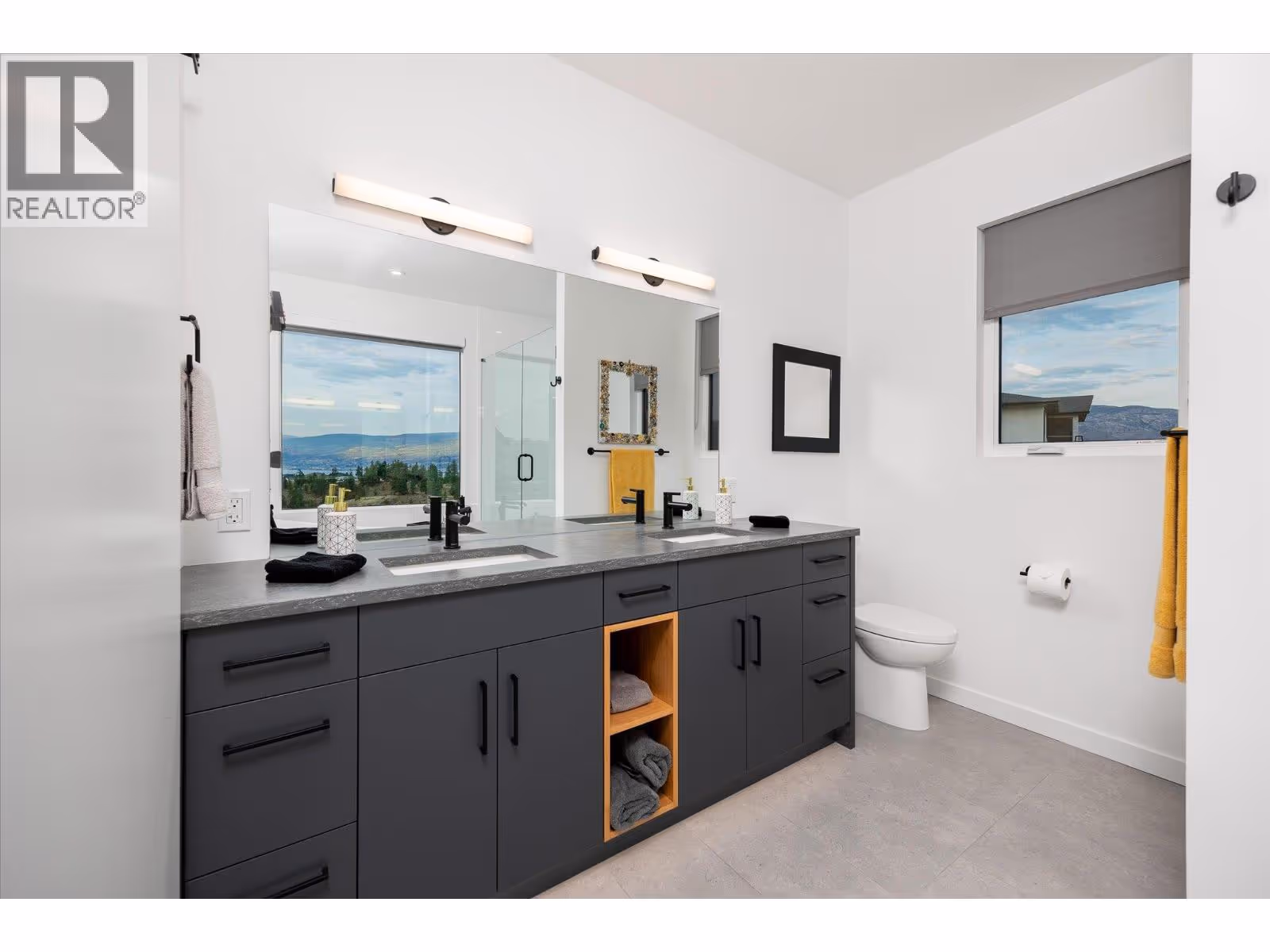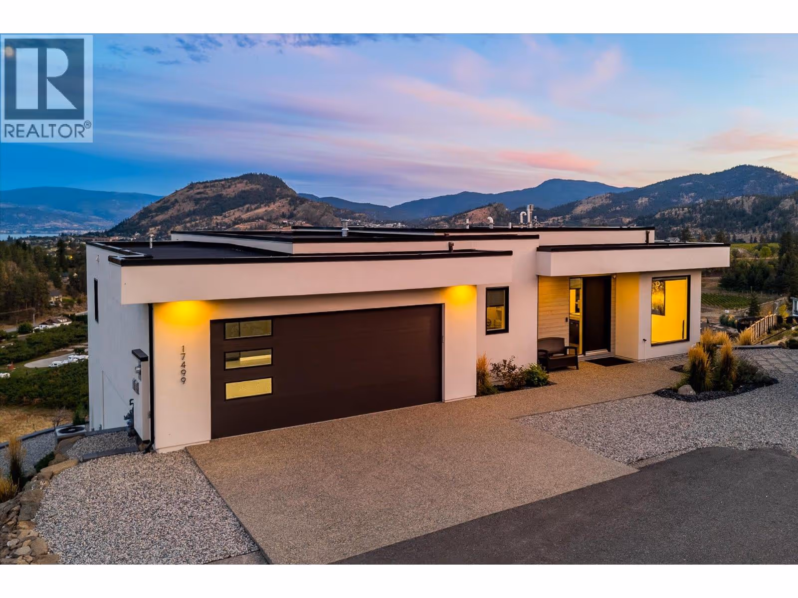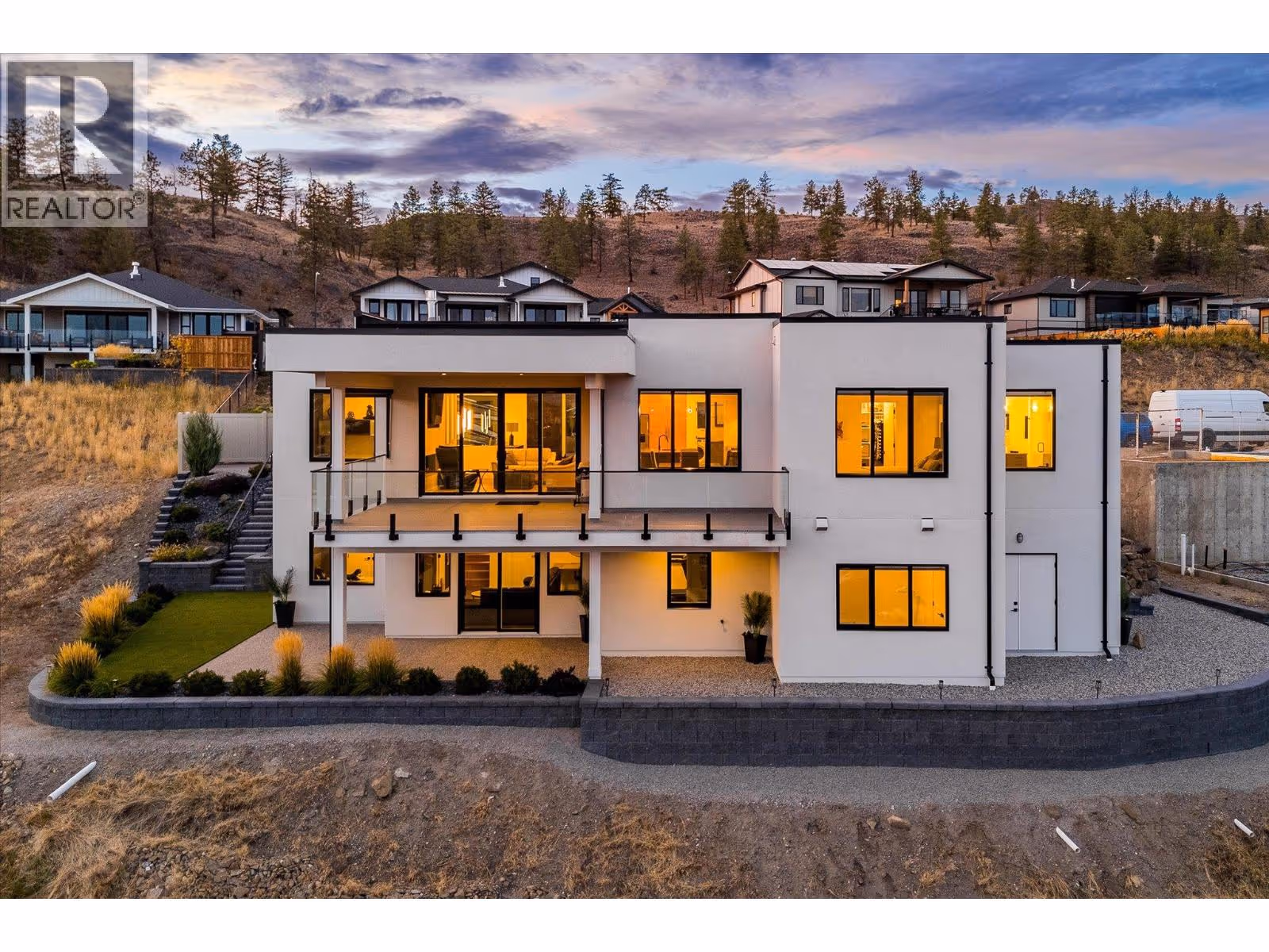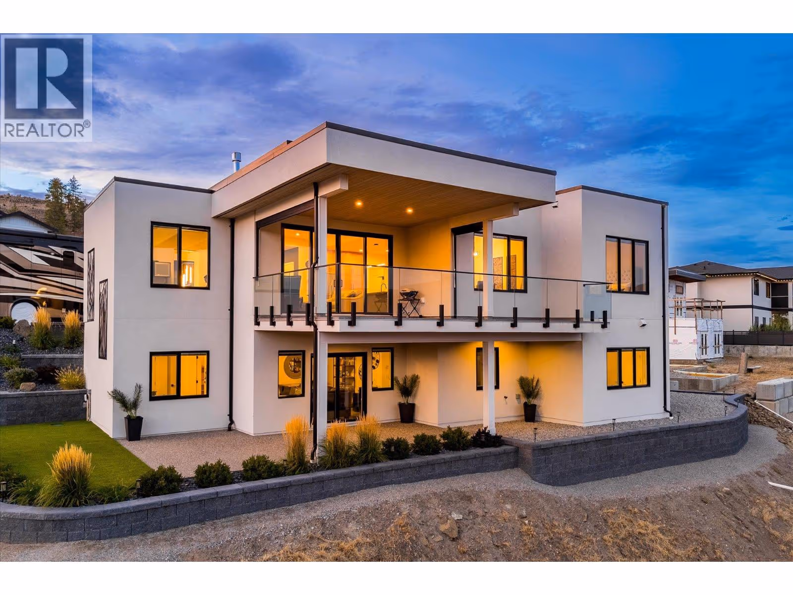 Welcome to this immaculate custom home in Summerland’s sought-after Hunters Hill community, built by renowned Richie Custom Homes. Offering nearly 3,000 sq.ft. of refined living, this three bedroom and office, three bathroom residence showcases panoramic lake, mountain, and valley views. The chef’s kitchen is equipped with custom cabinetry, premium Fisher & Paykel appliances, and seamless flow into the open living area. The primary wing features gorgeous views and complete privacy, complementing a spa-inspired primary suite with heated floors. The main floor also has a bright office and beautiful powder room. Downstairs are two additional bedrooms, gym/flex room, full bathroom, and a fantastic storage room (easily converted to an additional bedroom). The lower level features polished concrete floors, and full in-floor radiant heating. Additional features include on-demand hot water, a private gym, ample storage, and a built-in security system for peace of mind. The Park Place garage impresses with epoxy floors & custom cabinetry, and ready for EV charging. Outdoors, enjoy an artistic shaded deck, hot tub connection, synthetic turf, a 42 foot x 10 foot RV pad with 50-amp service, irrigation, and low maintenance landscaping. Completed in 2022, this home shows brand new, with home warranty in place — a perfect harmony of luxury, technology, and design. (id:58842)