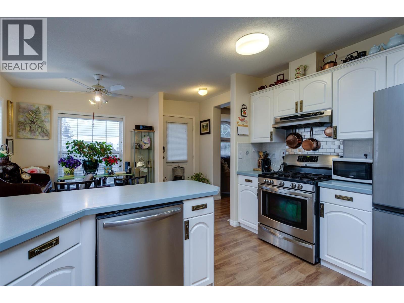 Well-Maintained 2 Bed / 2 Bath Double Wide in 55+ Community – Freehold Land, No Pad Rent! This beautifully kept 2 bedroom, 2 bathroom double wide home offers comfortable, low-maintenance living in a quiet 55+ complex. Situated on freehold land with no pad rent, this property provides exceptional value with a low strata fee of only $85/month. Inside, you’ll find attractive laminate flooring and a bright, inviting layout enhanced by a skylight that fills the home with natural light. The kitchen features stainless steel appliances, including a gas stove, making it both stylish and functional. The spacious floor plan offers generous living areas and two full bathrooms for added convenience. Enjoy outdoor living with covered parking, a workshop/shed for hobbies or extra storage, and a charming gazebo—perfect for relaxing or entertaining. Small dogs are welcome, making this an ideal home for pet lovers seeking a peaceful community lifestyle. Don’t miss this opportunity for affordable ownership in a well-managed 55+ complex! All measurements taken from I-Guide. (id:58842)