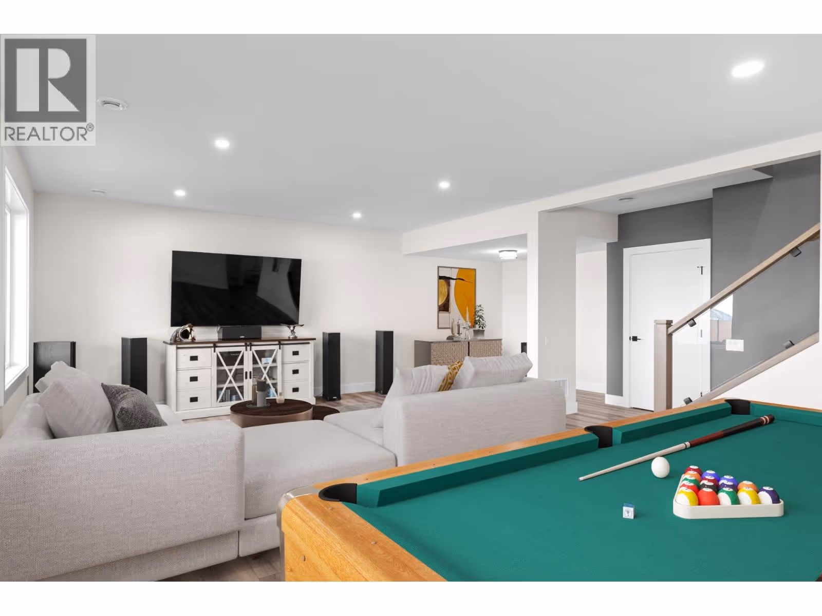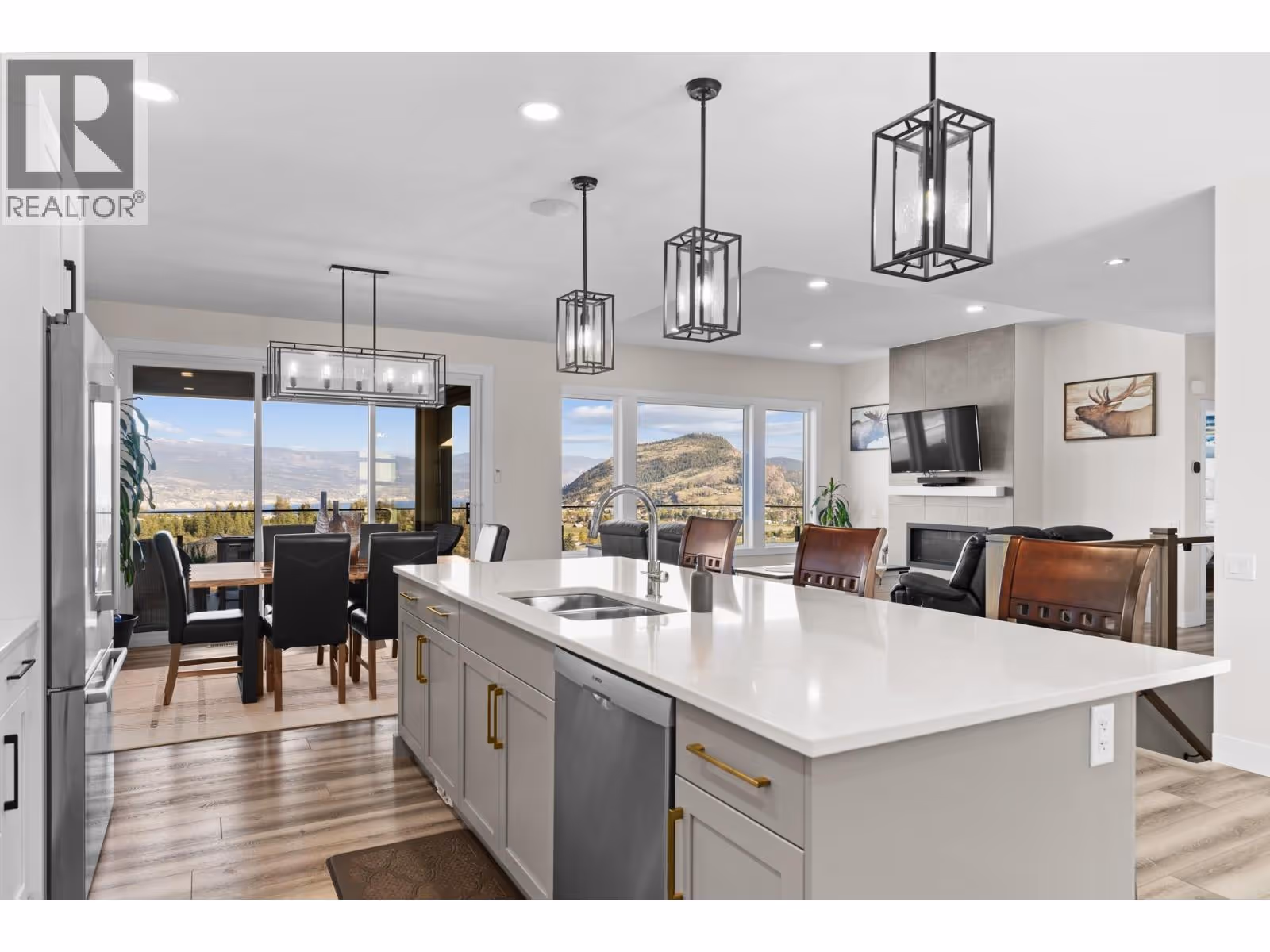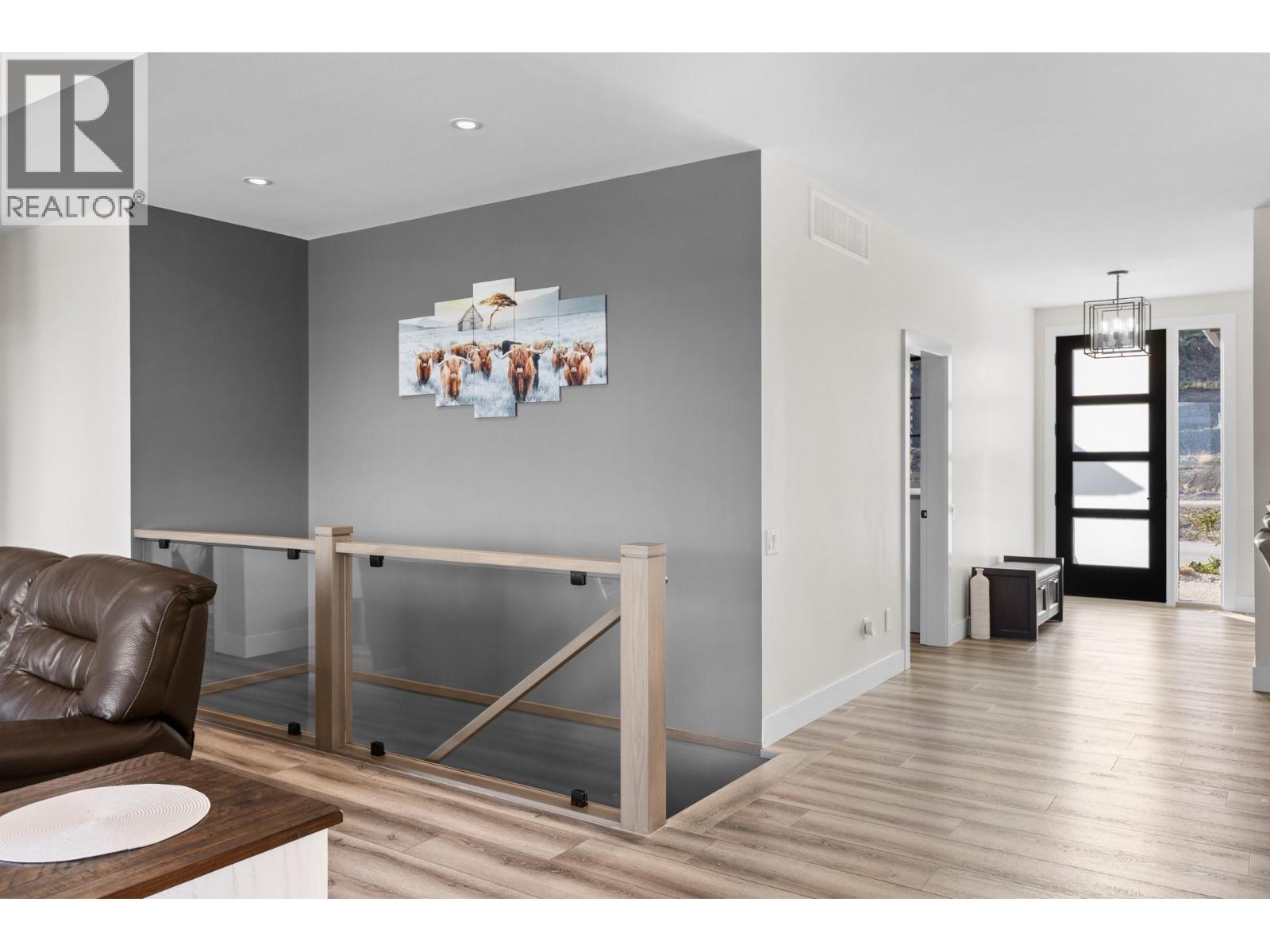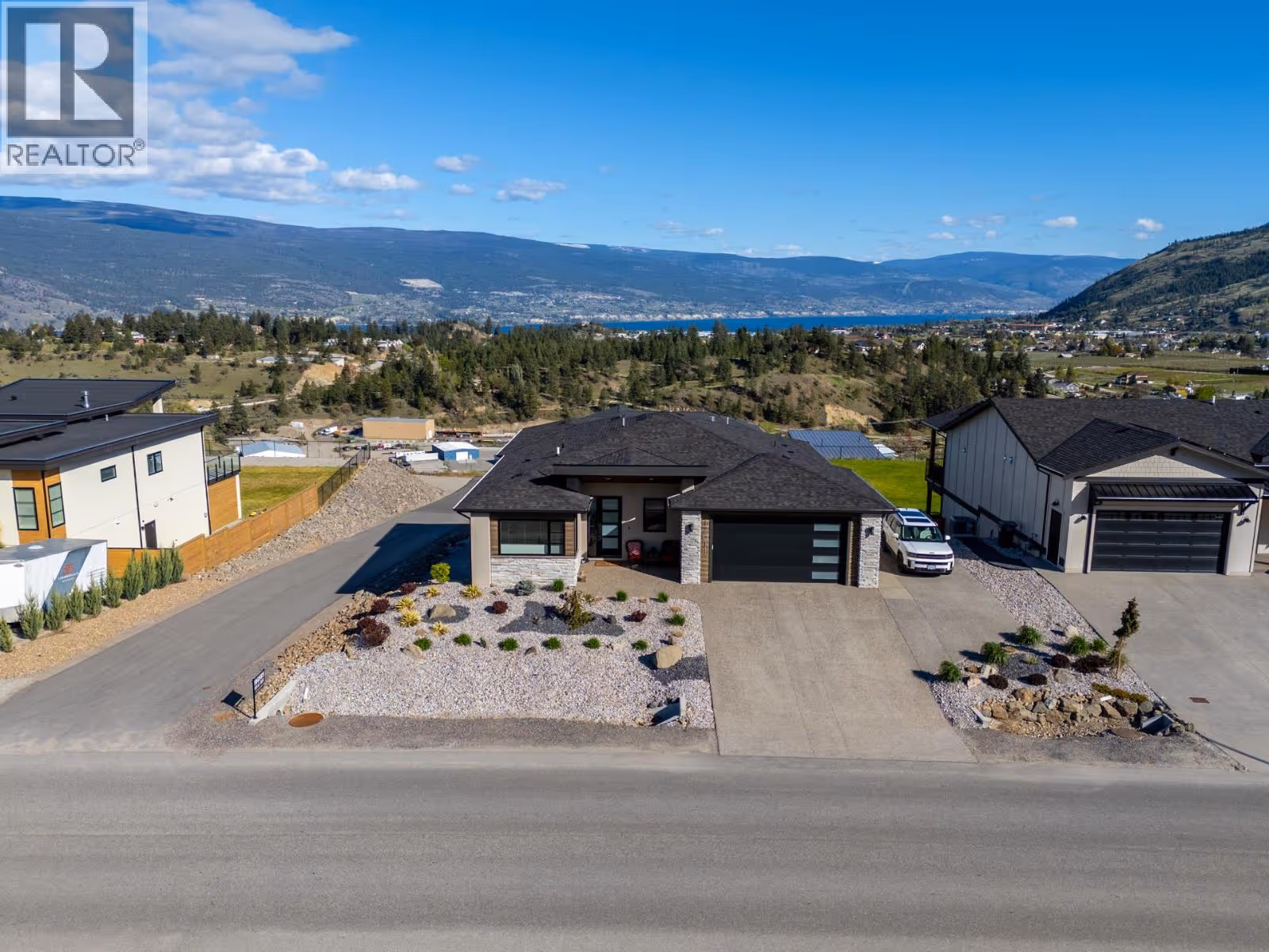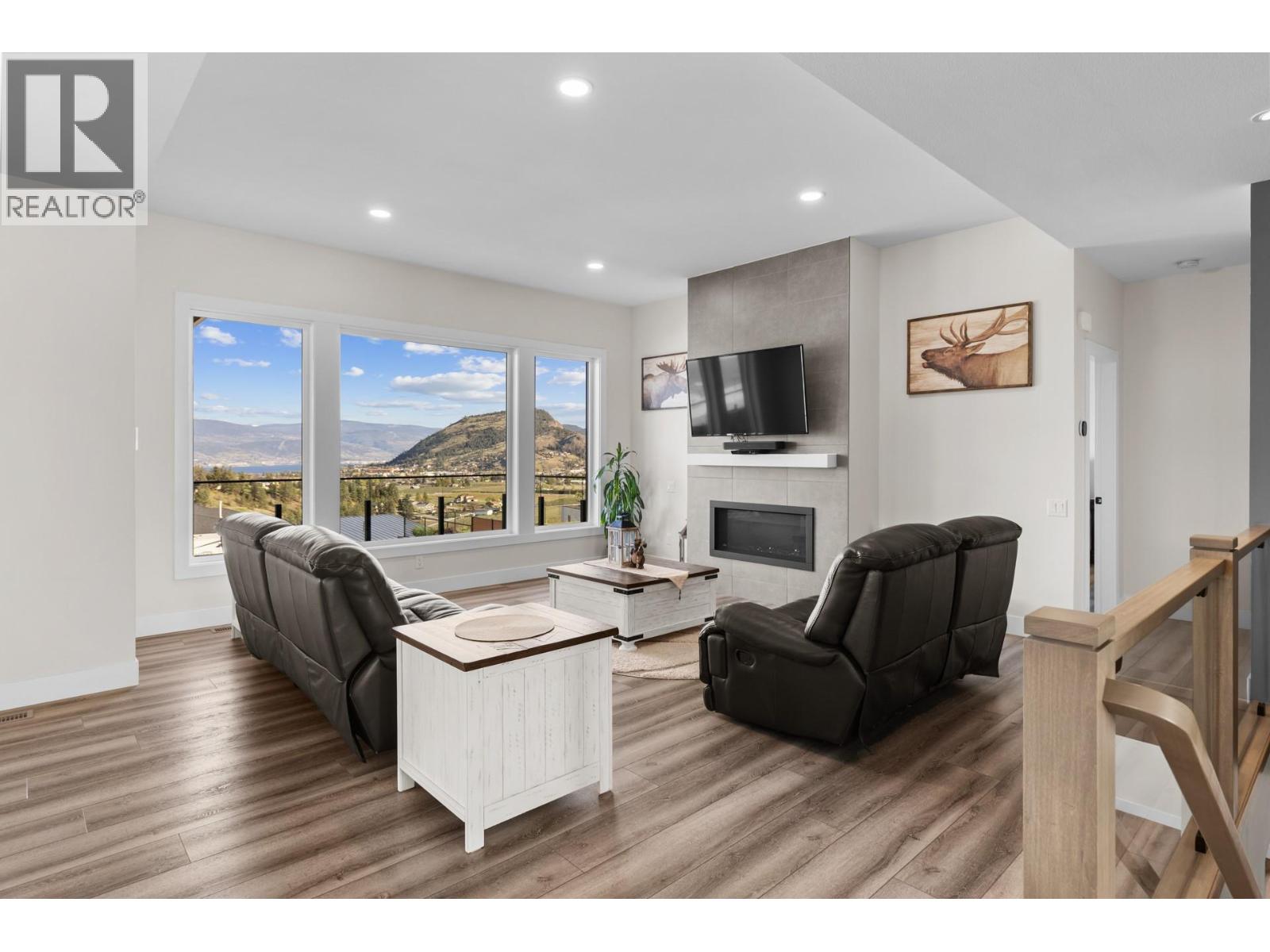 Welcome to Hunter Hill, Summerland’s most exciting new neighbourhood. Perched on a sprawling (and fully usable) 0.33 lake view parcel, this modern 3,060 sqft home has room for the whole family. The open concept main living space boast a bright, modern kitchen, with generous island seating, stainless appliances with gas range, and full size pantry. The dining room opens onto a huge deck, complete with full phantom screen package for 4 season outdoor living. The living room beckons with a tiled gas fireplace, and beautiful views of the lake, Giant’s Head, and all of Summerland. The primary ensuite has dual vanities, beautiful glass shower, and soaker tub - with heated floors for the colder months. The main level is finished off with a spacious office, and powder room. Downstairs are two more bedrooms, full bath, and extensive finished storage space. The enormous family/games room has all the space you want for movie nights and a pool table. Outside, the back yard features lush landscaping, and plenty of room for a pool. This home has upgrades such as built in sound, power screens throughout, and oversized double garage + RV parking, and roughed in for hot tub. This property is in pristine condition from top to bottom, inside and out. (id:58842)