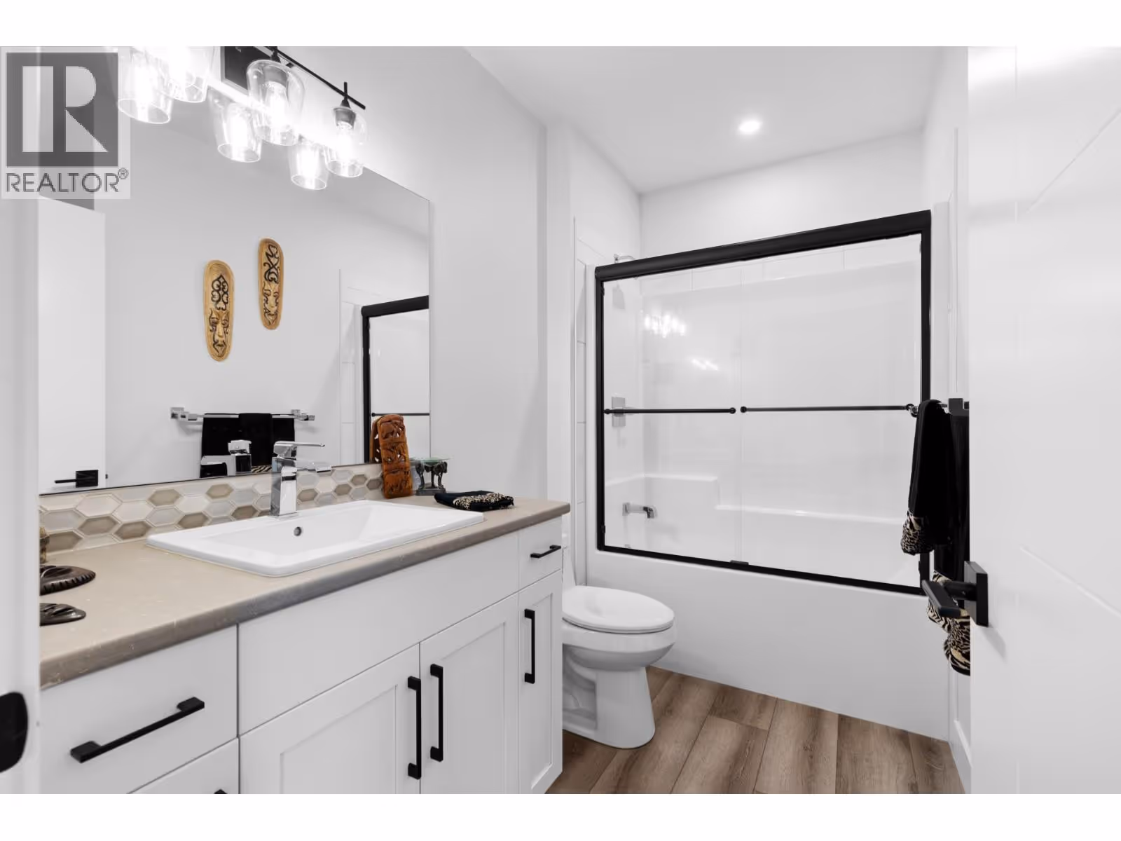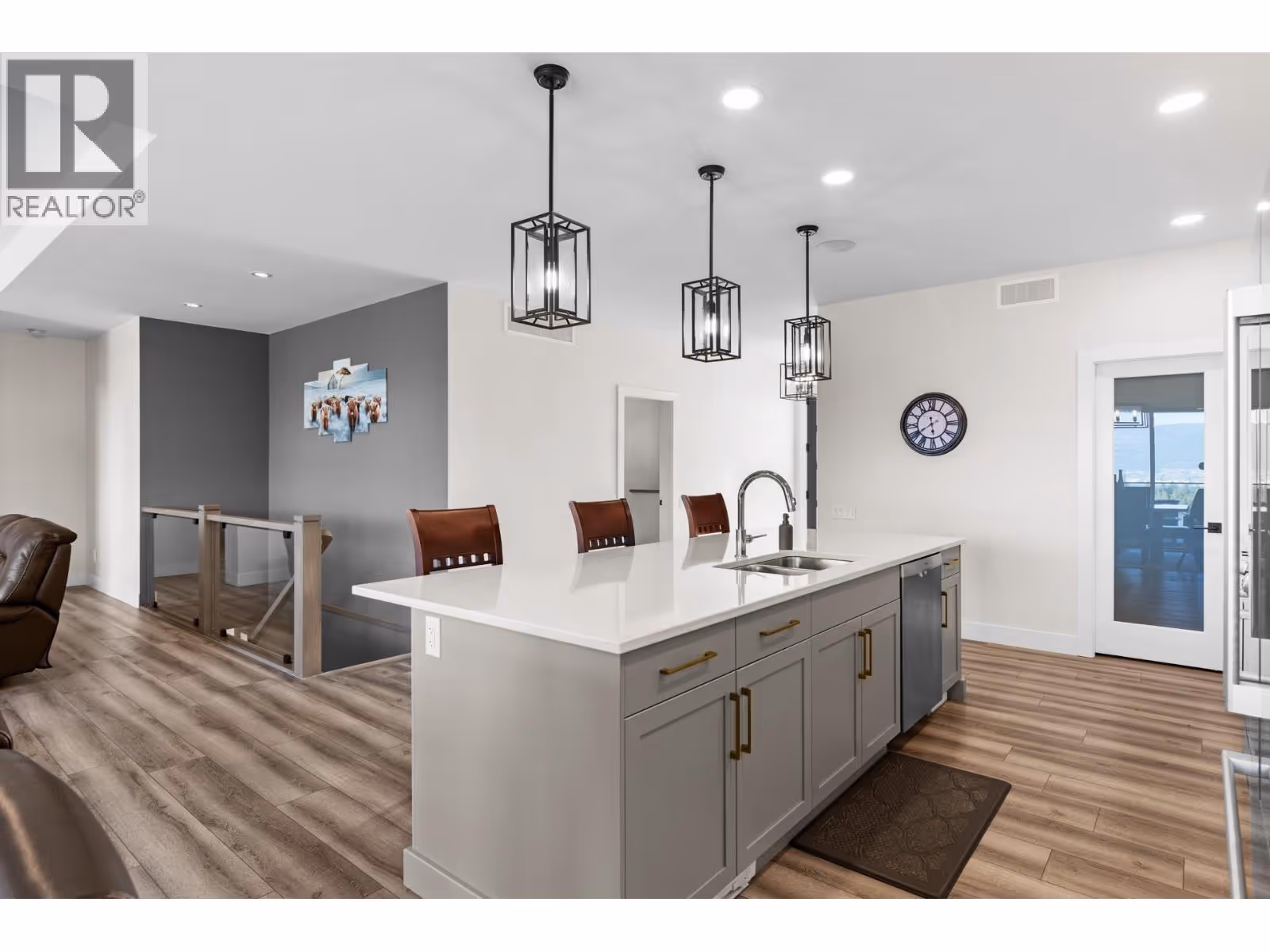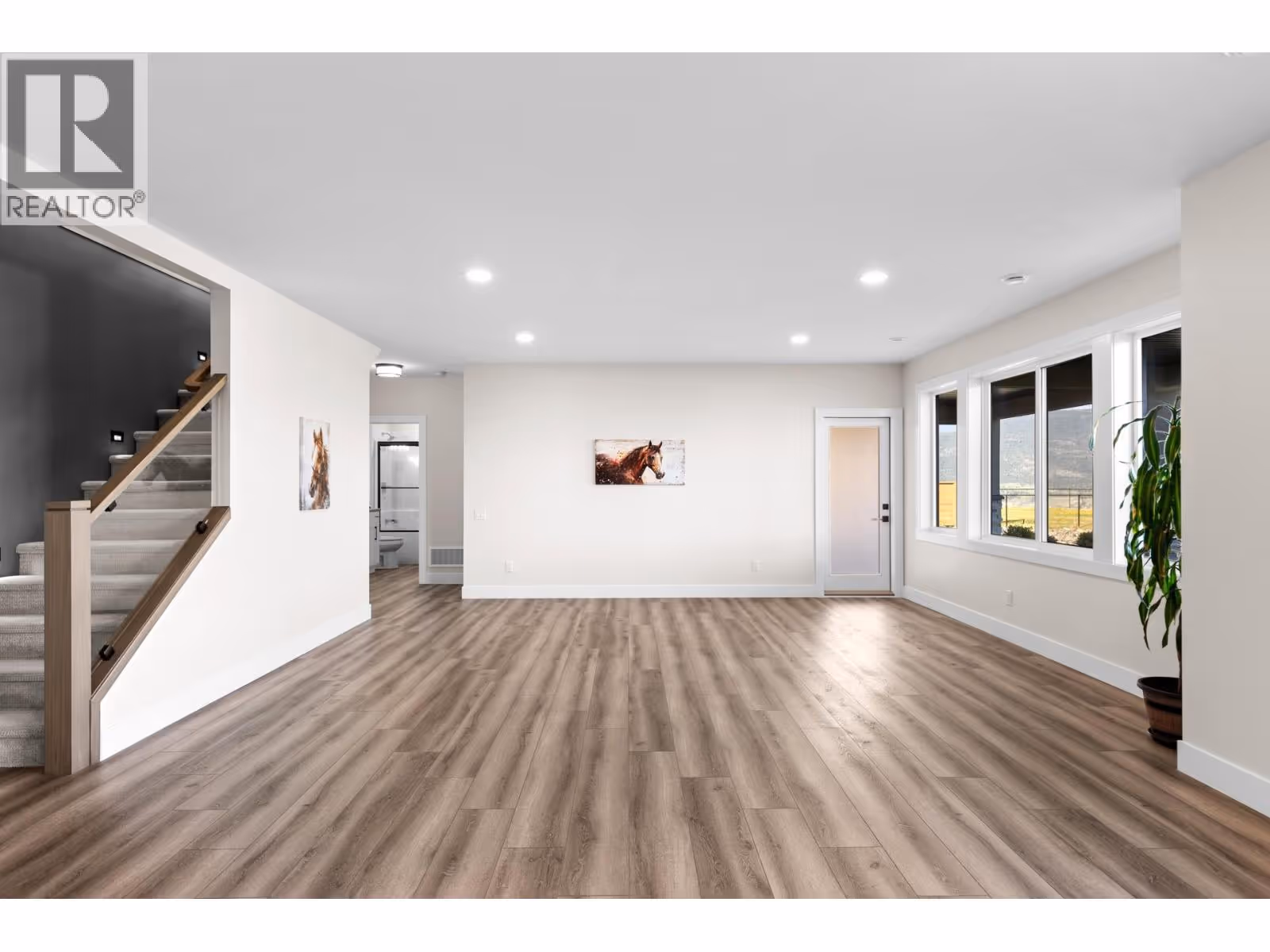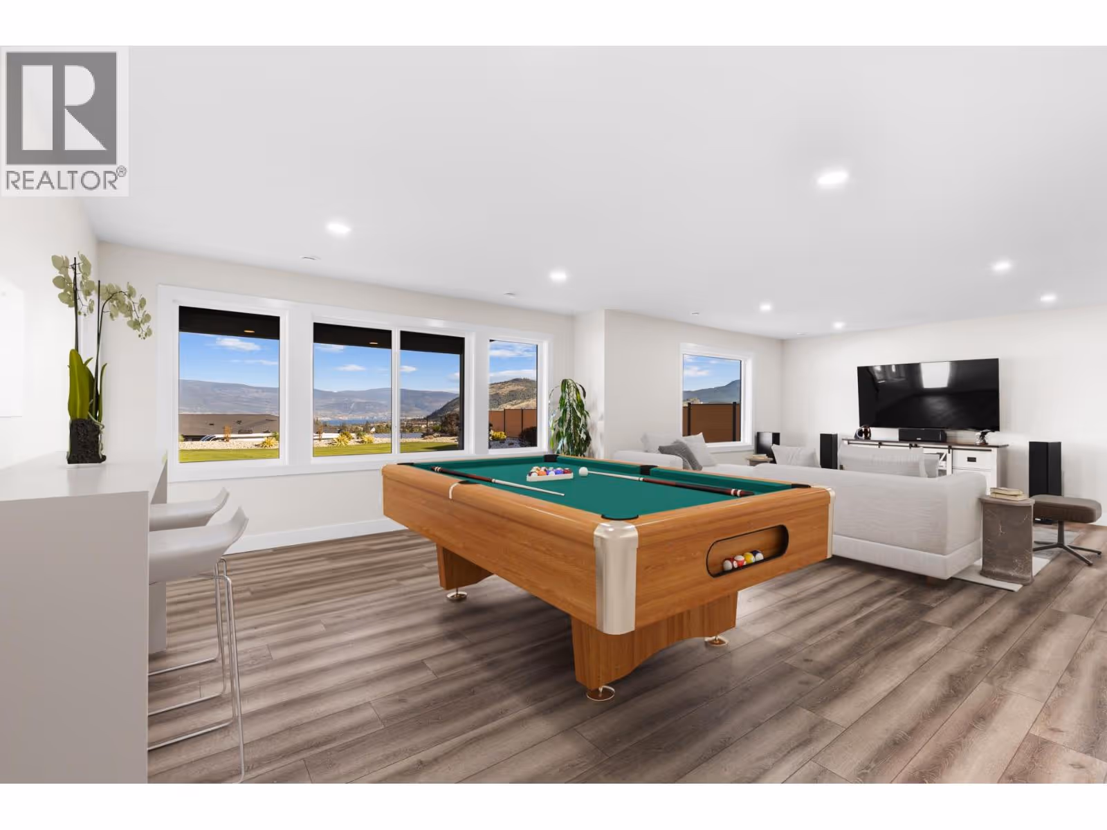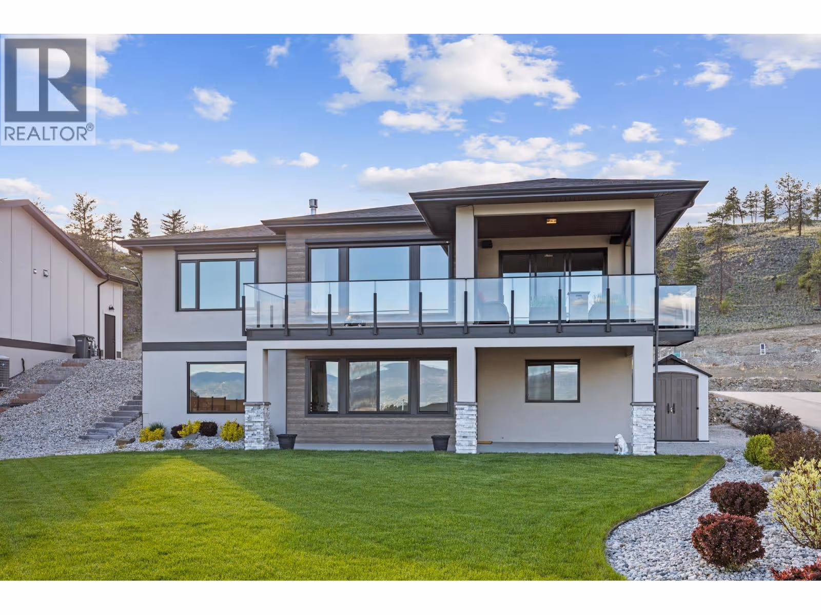 Welcome to Hunter Hill, Summerland’s most exciting new neighbourhood. Perched on a sprawling (and fully usable) 0.33 lake view parcel, this modern 3,060 sqft home has room for the whole family. The open concept main living space boast a bright, modern kitchen, with generous island seating, stainless appliances with gas range, and full size pantry. The dining room opens onto a huge deck, complete with full phantom screen package for 4 season outdoor living. The living room beckons with a tiled gas fireplace, and beautiful views of the lake, Giant’s Head, and all of Summerland. The primary ensuite has dual vanities, beautiful glass shower, and soaker tub - with heated floors for the colder months. The main level is finished off with a spacious office, and powder room. Downstairs are two more bedrooms, full bath, and extensive finished storage space. The enormous family/games room has all the space you want for movie nights and a pool table. Outside, the back yard features lush landscaping, and plenty of room for a pool. This home has upgrades such as built in sound, power screens throughout, and oversized double garage + RV parking, and roughed in for hot tub. This property is in pristine condition from top to bottom, inside and out. (id:58842)