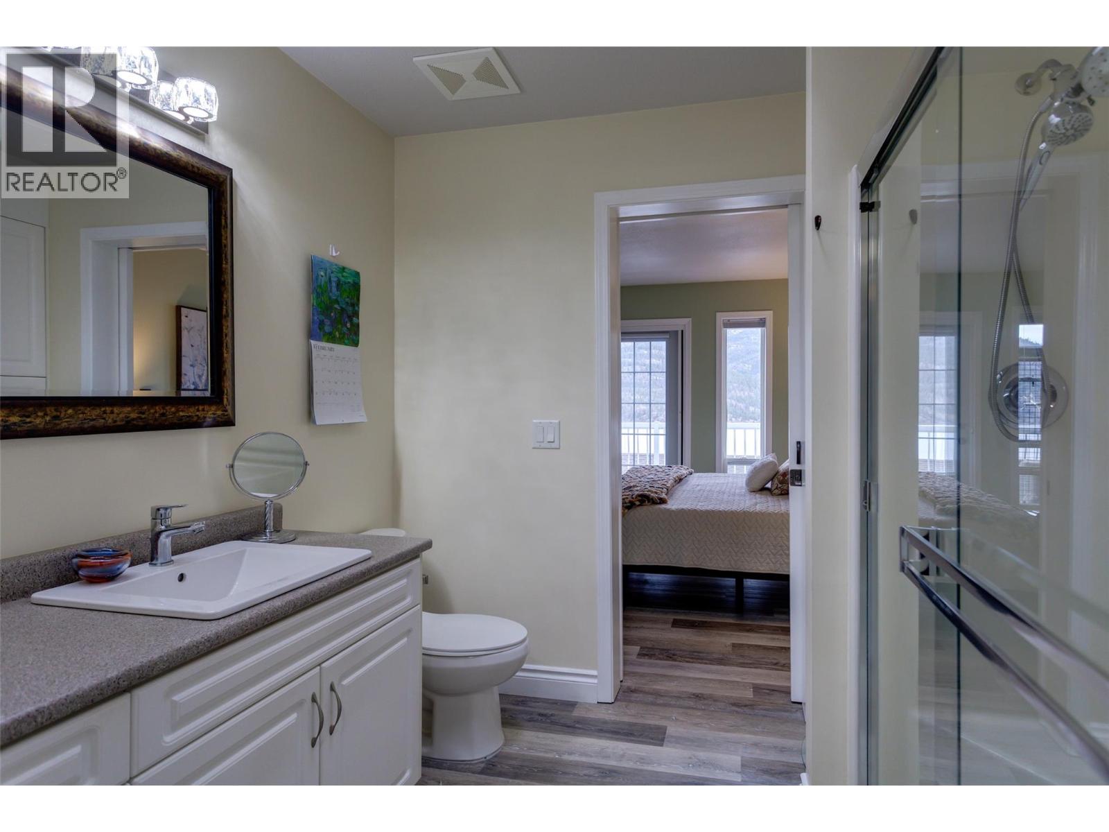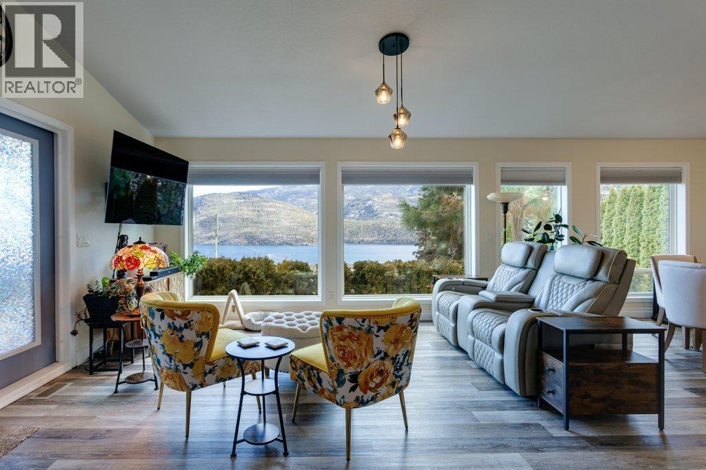 Life, simplified ... Make your move today to the most sought-after manufactured home park in the Central Okanagan - Kal Pine Estates! This friendly, well managed community overlooks the incomparable, stunning, Kalamalka Lake - just 30 minutes north of Kelowna and 20 minutes south of Vernon. Make this 2 bedroom, 2 bath, open concept home your Utopia. Privately nestled into the hillside, this home boasts big, bright windows and vaulted ceilings with unobstructed views from all rooms of the many, magical colours of the lake and the mountains to the east. Undoubtedly, this pristine home is located on the BEST lot in the development! The kitchen features a large island with a breakfast bar and plenty of cabinets, quartz countertops and a walk in pantry. Recent updates include (2019) a high-efficiency furnace, hot water heater, new roof, and new flooring, and (2020) a radon mitigation system. Easily accessible from the garage is a heated (6'4"" crawlspace) basement with concrete floors. An ideal, dry storage solution for all those extras. LOCATION is everything! Beach access and the Okanagan Rail Trail are just across the highway. Skiing, hiking, biking, boating, wine tasting, shopping and other amenities are just a stone's throw away. At the beginning, middle or end of the day you can come home and enjoy the evening views on your large, lake-facing deck or relax in your hot tub and soak your aching muscles after a joyous day on the ski hill. This home is whispering your name... (id:58842)