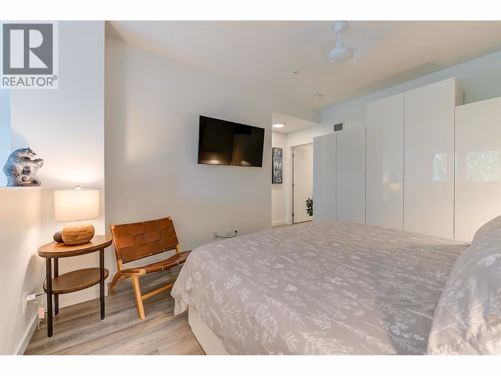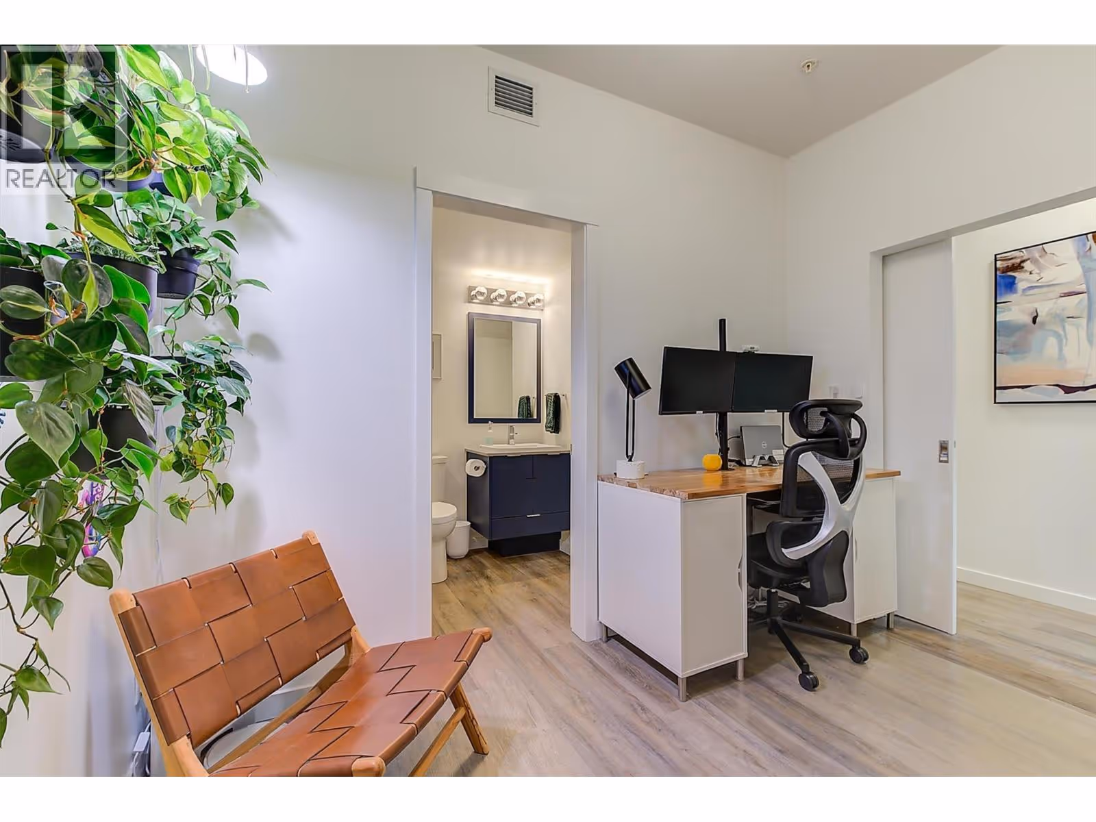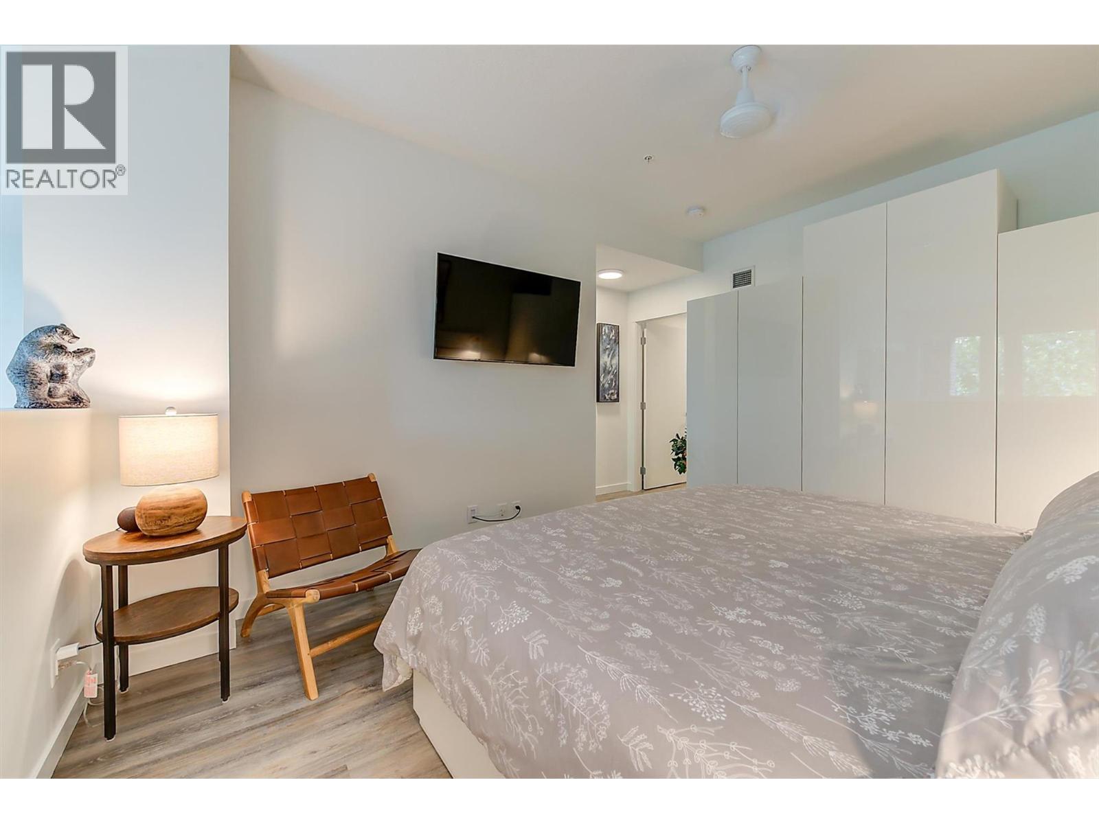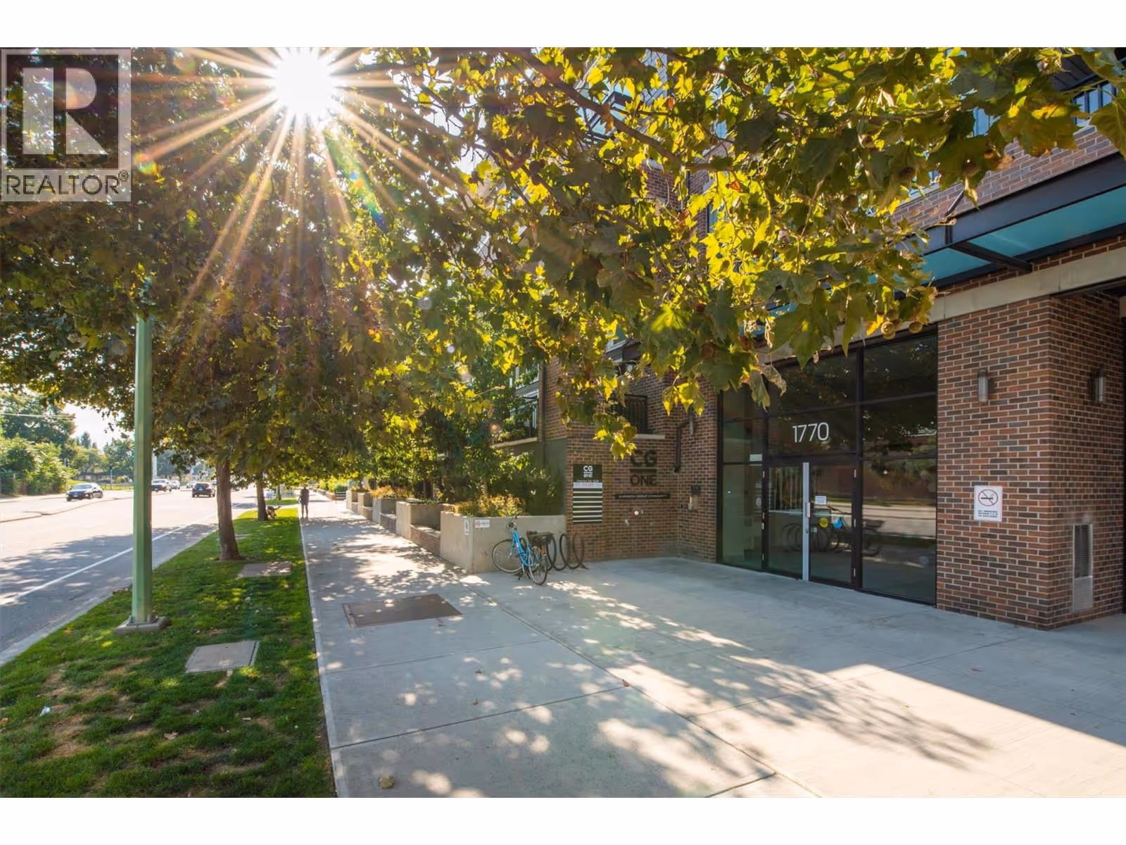 Bright, Urban Chic Loft-style condo at Central Green! This 2-bedroom, 2-bathroom home offers entry on both levels with towering 18 ft ceilings and impressive oversized floor to ceiling windows allowing the natural light to flood your living space. The open layout showcases a sleek kitchen with contemporary dual tone cabinetry, stainless steel appliance package, light quartz countertops, a moveable island with eating bar capability, all flowing into a cool, luxe living area with elegant modern lighting, perfect for entertaining day or night. Step out to the east-facing terrace with a beautiful brick facade and black accented frosted glass privacy panels to enjoy your morning coffee as the sun rises or enjoy a fresh Okanagan evening. The Lofted primary bedroom overlooks the main living area below and offers ample closet space, a 3pc ensuite bath & laundry while the main floor second bedroom is ideal for guests, crafts, a home office, or a studio. Practical perks include a secure underground parking stall, plus a convenient, same floor, storage locker. Central Green is situated beside the prestine Family & Pet friendly Rowcliffe Park. You’ll enjoy a running loop, off-leash dog park with small dog area, playground, and beautiful green space right outside your door. THIS all within walking distance to beaches, schools, shopping, dining, and Kelowna’s vibrant downtown easily accessible by transit out front OR steps away via the Bertram Pathway & the new Bertram Multiuse Overpass! (id:58842)