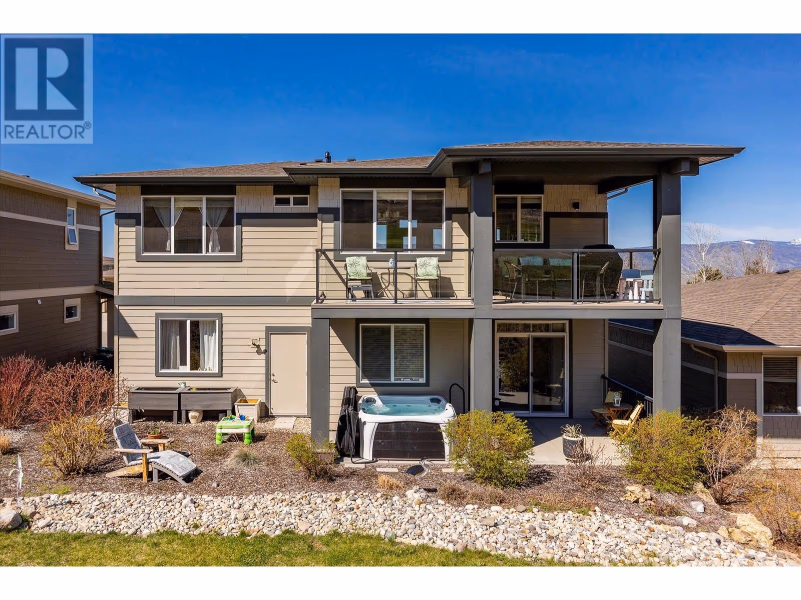 Welcome to Solstice at Tower Ranch – Affordably priced, this is your opportunity to own a nearly-new home with golf course living, mountain views, and resort-style amenities. The lower level features a spacious office and guest room, half bathroom, and a double-car garage. The upper level boasts a bright, open-concept living space with large windows, two generous bedrooms including a private ensuite, and another full bath. Step outside to your three patio spaces—front, back, and a covered lower patio ideal for your new hot tub or quiet relaxation. Tower Ranch Golf Course, one of the top-ranked public courses in British Columbia, surrounds you with panoramic valley and lake views. As a resident, you’ll enjoy direct access to the course, scenic walking trails, and the vibrant Tower Ranch Clubhouse offering a fitness center, restaurant, and gathering spaces. This newer home is of incredible value in a prestigious community. Whether you’re retiring, investing, or simply looking for a fresh start in a serene yet connected setting, this home delivers. Don’t miss your chance to experience golf course living at its best—book your showing today! (id:58842)