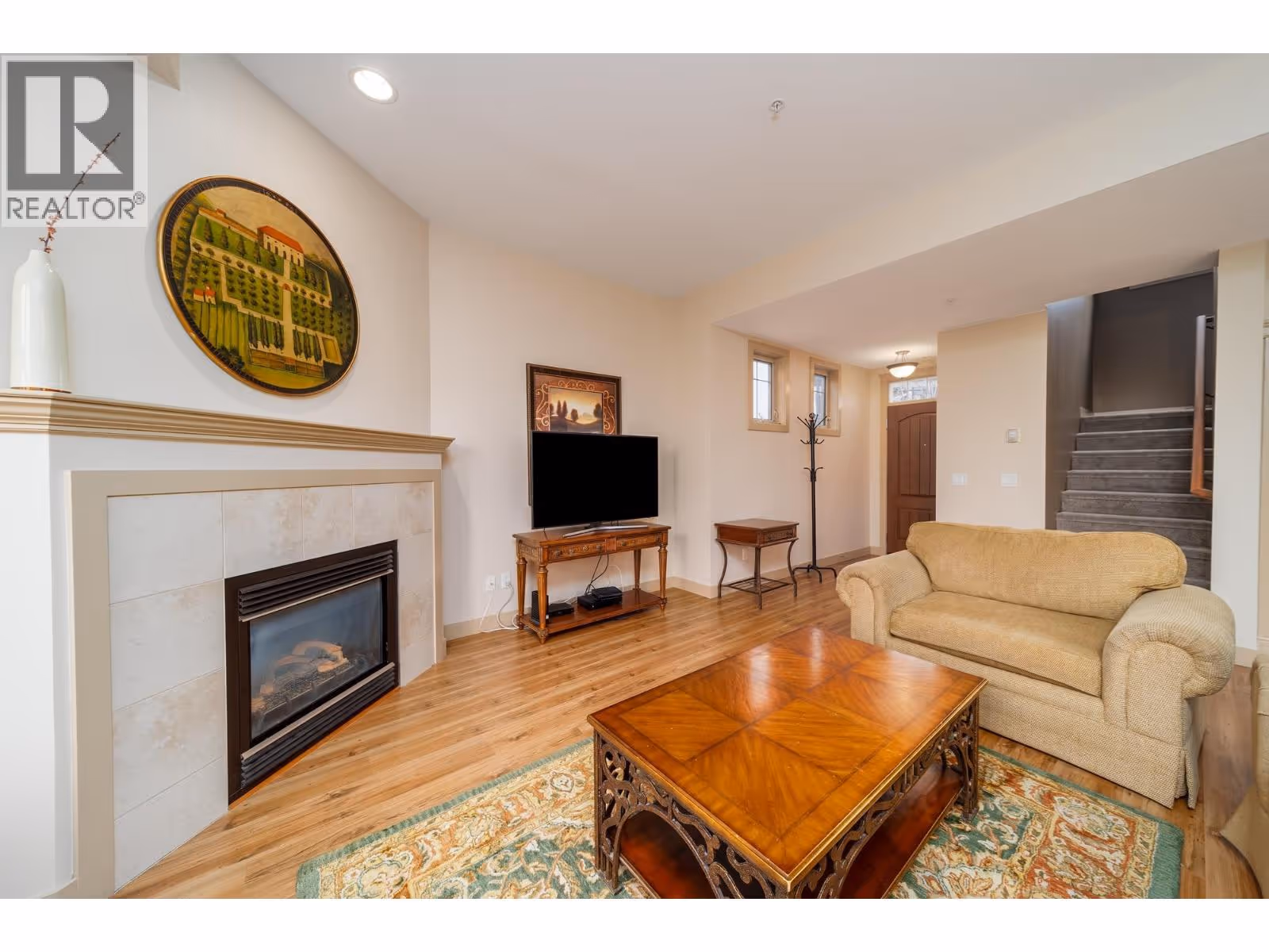 Fully Furnished 2-Bed, 3-Bath Townhome in Bella Sera. Welcome to Bella Sera – a peaceful, nature-surrounded enclave offering the perfect blend of comfort, style, and convenience. This fully furnished two-bedroom, three-bathroom townhome is ideally situated in a quiet location and backs onto lush green space, providing a serene retreat with a private deck to enjoy the view. Inside, you'll find a bright and open floor plan with large windows that flood the space with natural light. The beautifully appointed kitchen flows seamlessly into the living and dining areas, complete with a cozy gas fireplace – perfect for relaxing or entertaining. Each spacious bedroom features its own ensuite bathroom, offering comfort and privacy for residents and guests alike. The primary suite also boasts direct access to the deck for your morning coffee or evening unwind. Bella Sera residents enjoy access to a well-equipped exercise room, a sparkling outdoor pool, and a hot tub. Located just minutes from UBCO, world-class golf courses, and the airport, this is a prime location for both full-time living and investment. With rental opportunities allowed, this home is ideal as a primary residence, vacation getaway, or income-generating property. Don’t miss your chance to own in one of the area’s most sought-after communities. (id:58842)