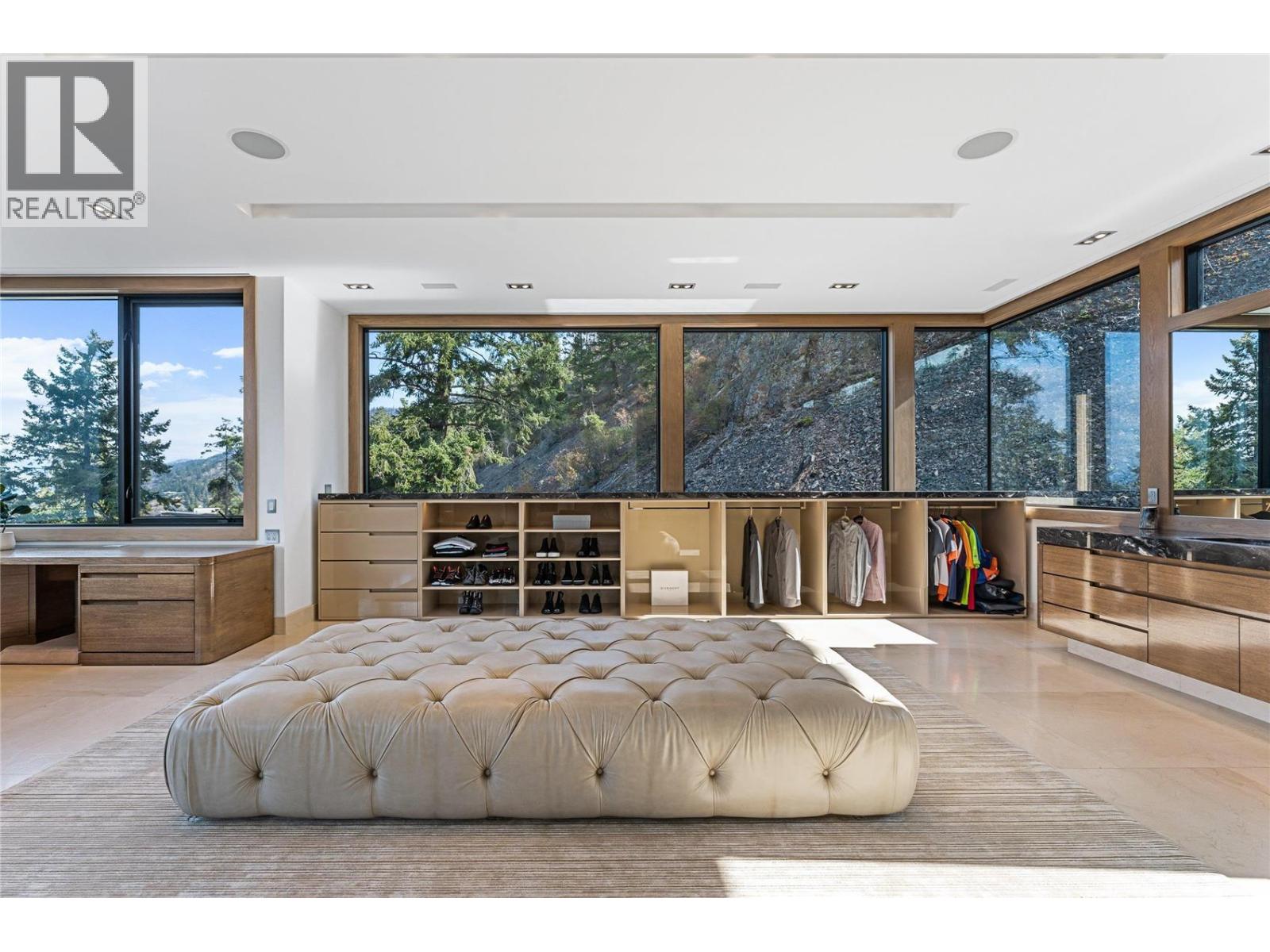 Sheerwater - One of the Okanagan’s most sought-after gated lakefront communities. A distinct modern West Coast architecture is evident through out this exceptionally crafted home perched on natural 2.5-acre setting offering a commanding view of Lake Okanagan. The seamless integration of indoor and outdoor spaces, use of extraordinary large windows, incorporation of wood beams, cedar accents, vaulted roof lines and use of natural elements through a variety of materials and textures has combined to create this timeless design. With over 9000 sq. ft. of living space, an oversized 3-4 car garage, detached casita, infinity pool, rock encased hot tub, 1200 bottle wine cellar, outdoor kitchen and multiple decks and patios to take advantage of the site characteristics. Of special note is the luxurious primary bedroom that is truly beyond compare - this over 3600 sq. ft. space spans the entire upper level, with breathtaking 'floating' lake views. The space is complimented by a home gym, his and hers closets and ensuite, inviting relaxation room and a view to be remembered from the wall of windows! Ease of access to lakeside dock with full time boat moorage. (id:58842)