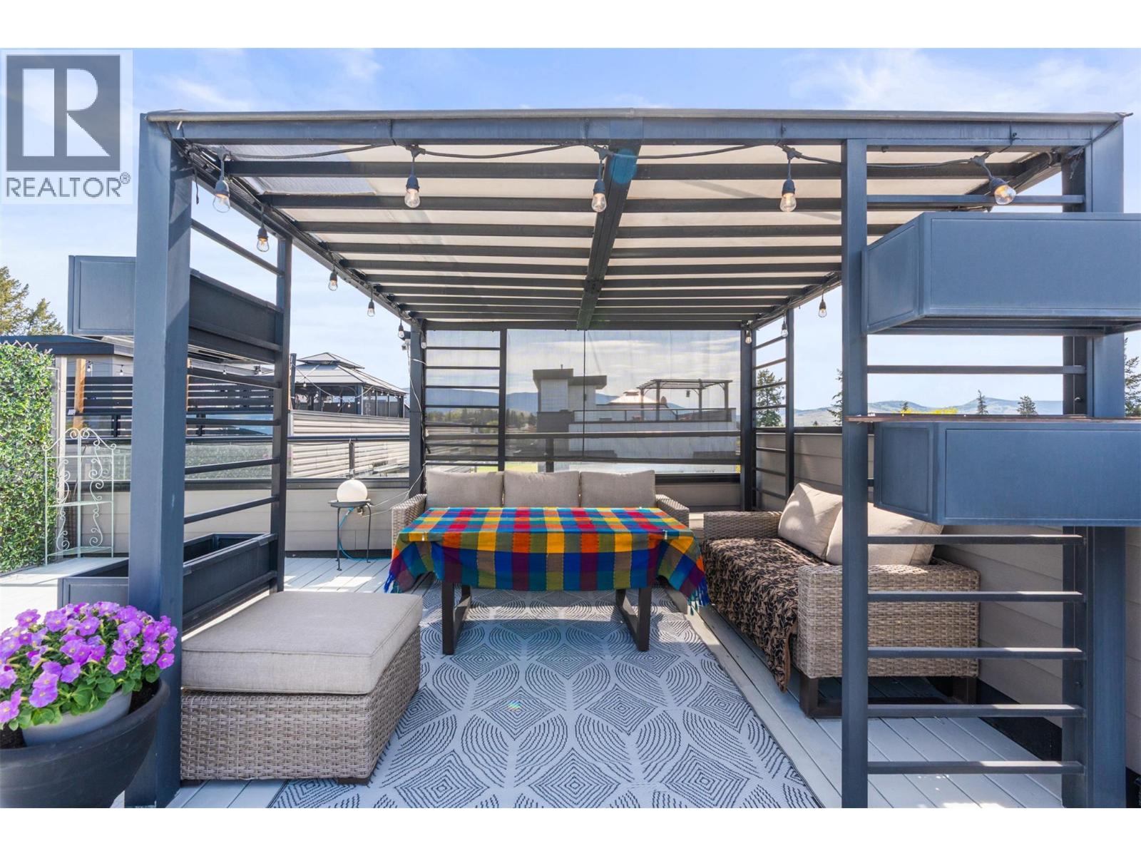 Start at the top—because that’s where this home really separates itself. An impressive 650 sq ft private rooftop patio takes in south and west-facing views across Turtle Mountain and the city. Morning coffee, evening drinks, summer nights… this is where you’ll spend more time than you think. Below, the home unfolds across four well-designed levels. The main living space is bright, open, and built to bring people together—featuring a stunning kitchen with a large island, quartz countertops, stainless steel KitchenAid appliances, and a walk-in pantry that keeps everything organized and out of sight. Upstairs, three bedrooms create a quiet retreat, including a generous primary with walk-in closet and a full ensuite with double vanities and a tiled walk-in shower. Downstairs adds flexibility with a bonus family room—perfect for a media space, home gym, or guest area—plus access to the tandem garage with room for vehicles, storage, and everything else that comes with Okanagan living. End unit. Central location. Four levels that live better than expected (id:58842)