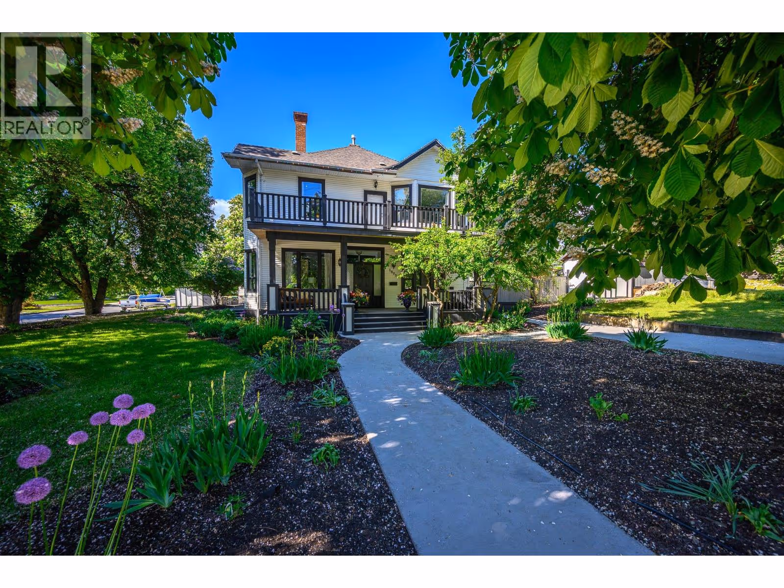Built in 1910, this iconic East Hill estate has been meticulously restored, seamlessly blending timeless elegance with modern luxury—ready to serve your family for the next century. Proudly showcasing its Colonial Revival architecture, this stately 2-story residence retains its classic character with soaring ceilings, rich crown moldings, original hardwood floors, wainscoting, hot water radiators, and elegant fireplaces. Yet it now offers all the comforts of contemporary living, including a stunning new kitchen, renovated bathrooms, and thoughtfully updated living spaces. The grand staircase leads to 5 bedrooms including an exceptional new primary suite and dressing room —one with a charming “secret room"". Entertain effortlessly with spacious gathering areas, a formal dining room, cozy reading nooks, and for teens or guests, an impressive lower-level media room and games area. Adults will love the dedicated wine room and bar. Extensively updated since the 1990s, this home features a well-integrated addition. Outside, the fully landscaped and fenced .41-acre corner lot is your private oasis, complete with a 16’x35’ saltwater pool and hot tub—perfect for summer entertaining. Located in one of East Hill’s most beloved neighborhoods, walking distance to schools, parks, and downtown Vernon. A rare opportunity to own a piece of history without sacrificing modern convenience—this home is truly one of a kind. (id:58842)
