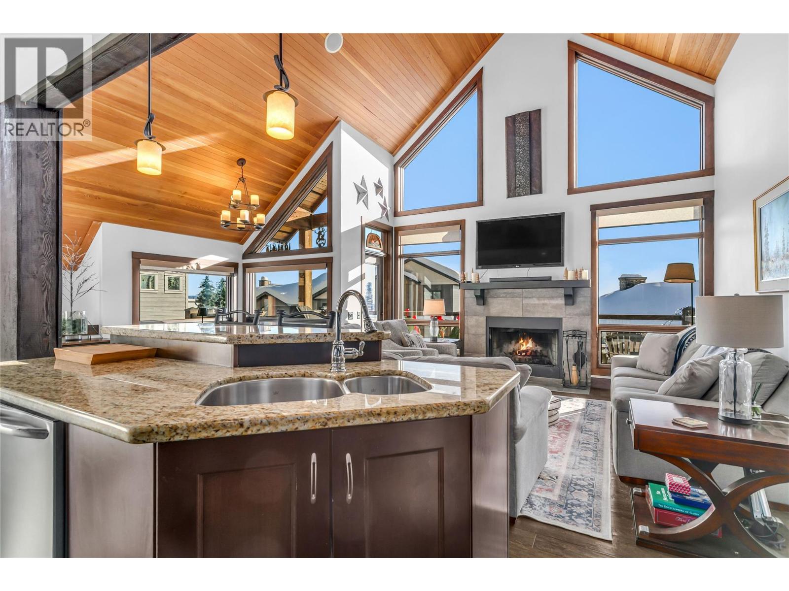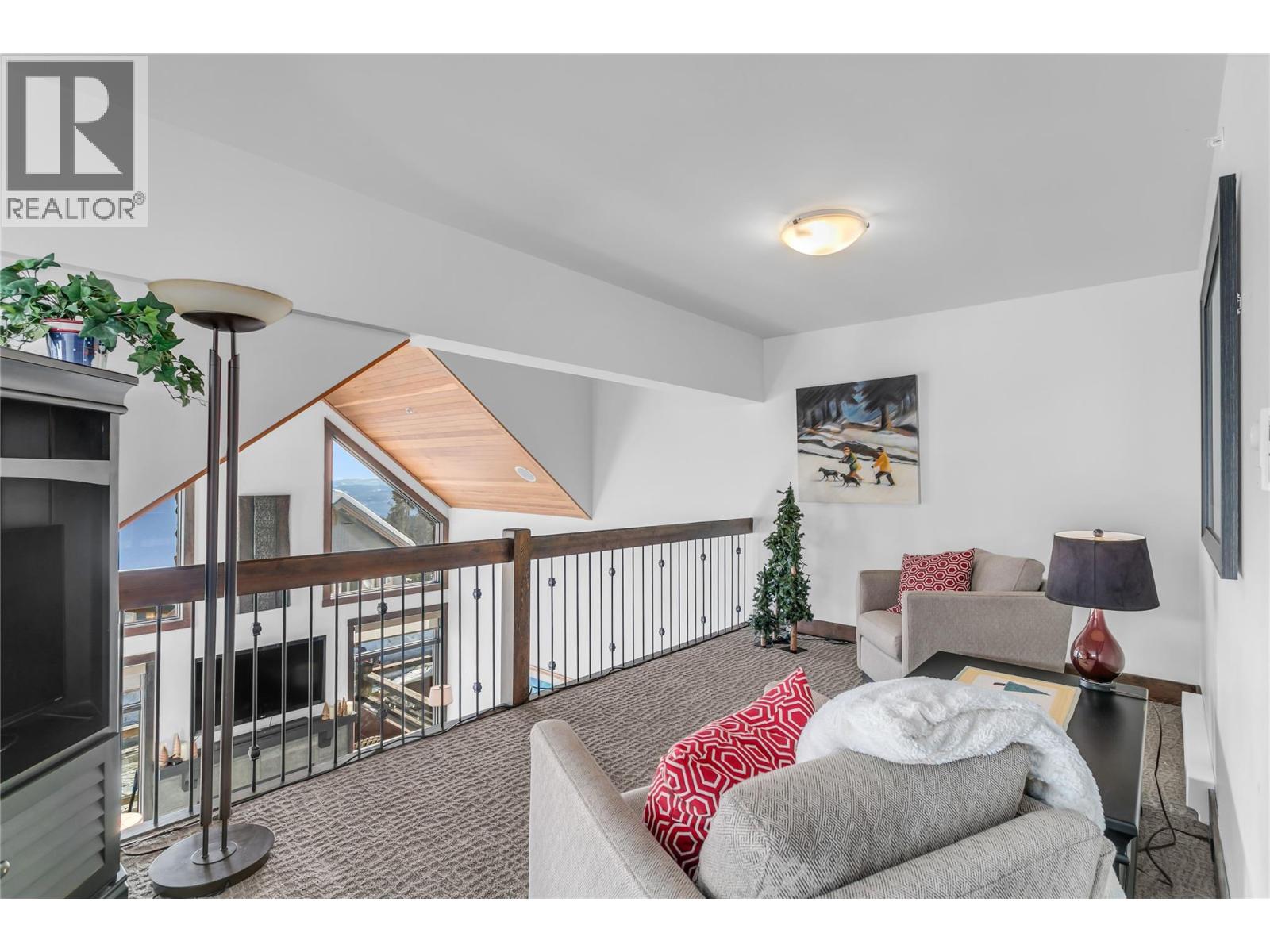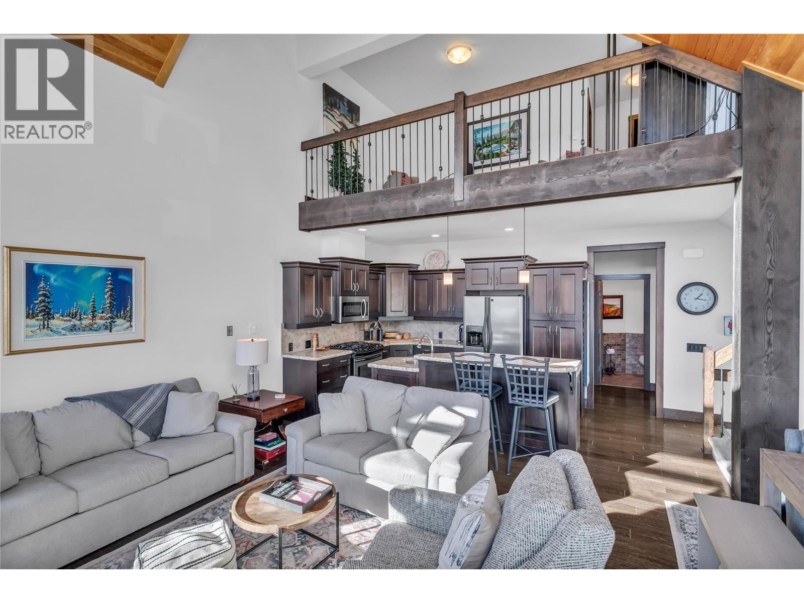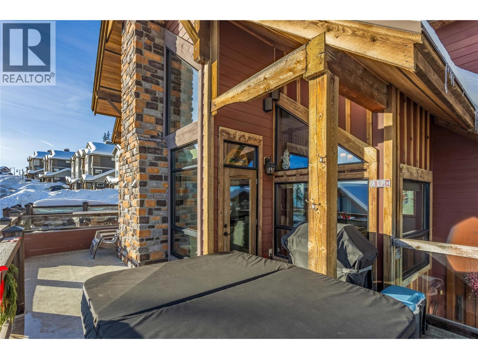 Located in Grizzly Ridge at Big White Ski Resort, this true classic ski chalet delivers timeless alpine character paired with thoughtful, high-end upgrades throughout. Originally built as the show home, the residence showcases superior craftsmanship, refined design, and premium finishes rarely found on the mountain. The home has never been rented with 1 owner and presents in exceptional condition. The main living level features two large bedrooms, each with its own ensuite and one with a gas fireplace for cozy nights, while the upper level offers two additional spacious bedrooms complemented by a full bathroom. In total, the home includes 3.5 bathrooms, all with heated floors and a large steam shower in the main primary, providing comfort and functionality for families and guests. The former garage has been converted into a family room and ski/mud room with in floor radiant heat, adding approximately 375 sq ft of valuable living space (not included in finished measurements and easily converted back to a garage if desired). The main living area is anchored by vaulted ceilings, a chef’s kitchen and a WETT-certified wood-burning fireplace, creating an inviting chalet atmosphere. Additional highlights include views of the Monashee Mountain range through the floor to ceiling windows, a wine cellar, a loft, and a generous private patio with hot tub. Low strata fees complete this standout Grizzly Ridge offering. Furnishings are negotiable. (id:58842)