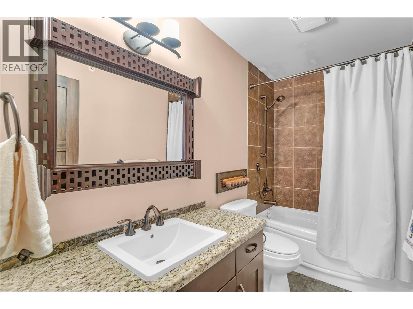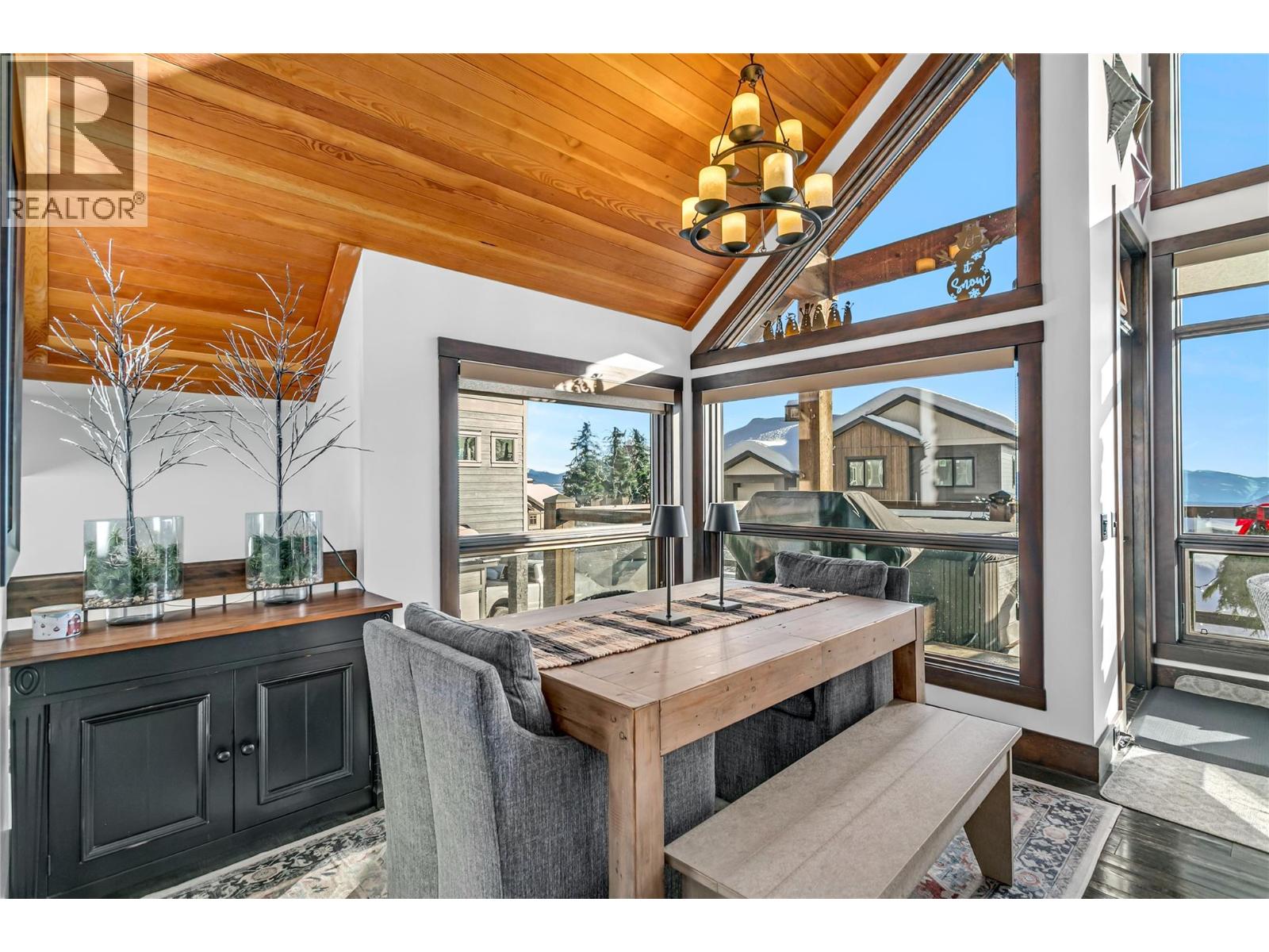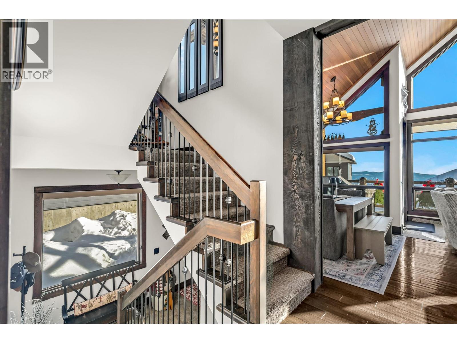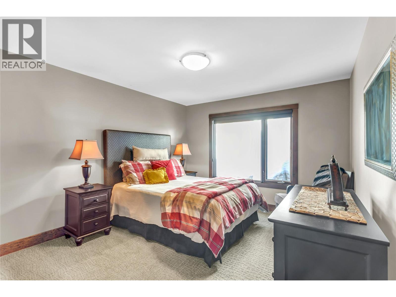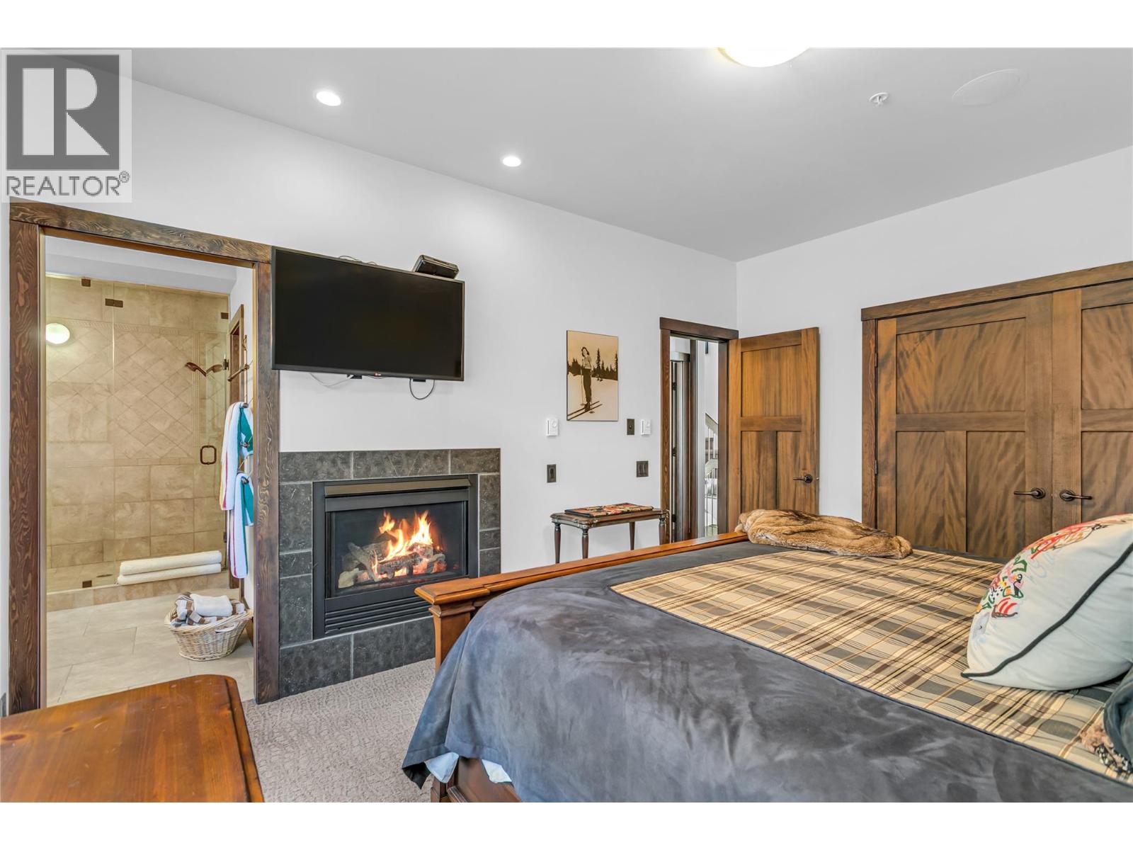 Located in Grizzly Ridge at Big White Ski Resort, this true classic ski chalet delivers timeless alpine character paired with thoughtful, high-end upgrades throughout. Originally built as the show home, the residence showcases superior craftsmanship, refined design, and premium finishes rarely found on the mountain. The home has never been rented with 1 owner and presents in exceptional condition. The main living level features two large bedrooms, each with its own ensuite and one with a gas fireplace for cozy nights, while the upper level offers two additional spacious bedrooms complemented by a full bathroom. In total, the home includes 3.5 bathrooms, all with heated floors and a large steam shower in the main primary, providing comfort and functionality for families and guests. The former garage has been converted into a family room and ski/mud room with in floor radiant heat, adding approximately 375 sq ft of valuable living space (not included in finished measurements and easily converted back to a garage if desired). The main living area is anchored by vaulted ceilings, a chef’s kitchen and a WETT-certified wood-burning fireplace, creating an inviting chalet atmosphere. Additional highlights include views of the Monashee Mountain range through the floor to ceiling windows, a wine cellar, a loft, and a generous private patio with hot tub. Low strata fees complete this standout Grizzly Ridge offering. Furnishings are negotiable. (id:58842)