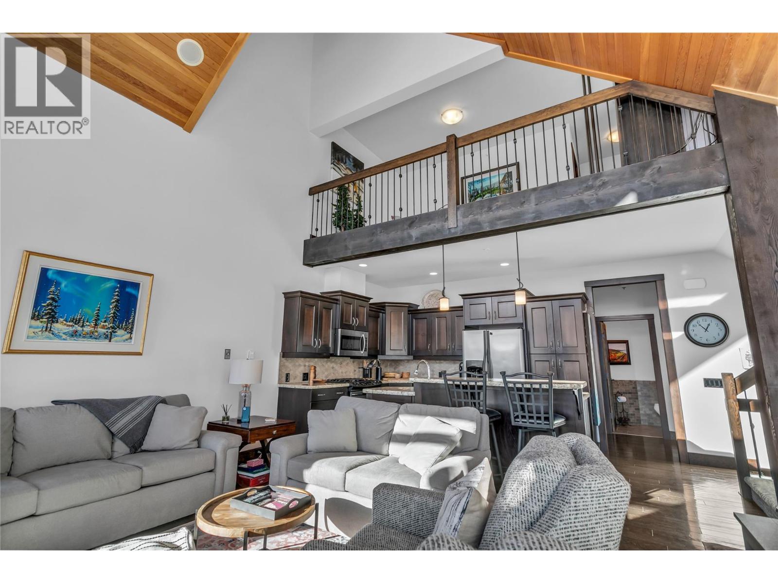 Located in Grizzly Ridge at Big White Ski Resort, this true classic ski chalet delivers timeless alpine character paired with thoughtful, high-end upgrades throughout. Originally built as the show home, the residence showcases superior craftsmanship, refined design, and premium finishes rarely found on the mountain. The home has never been rented with 1 owner and presents in exceptional condition. The main living level features two large bedrooms, each with its own ensuite and one with a gas fireplace for cozy nights, while the upper level offers two additional spacious bedrooms complemented by a full bathroom. In total, the home includes 3.5 bathrooms, all with heated floors and a large steam shower in the main primary, providing comfort and functionality for families and guests. The former garage has been converted into a family room and ski/mud room with in floor radiant heat, adding approximately 375 sq ft of valuable living space (not included in finished measurements and easily converted back to a garage if desired). The main living area is anchored by vaulted ceilings, a chef’s kitchen and a WETT-certified wood-burning fireplace, creating an inviting chalet atmosphere. Additional highlights include views of the Monashee Mountain range through the floor to ceiling windows, a wine cellar, a loft, and a generous private patio with hot tub. Low strata fees complete this standout Grizzly Ridge offering. Furnishings are negotiable. (id:58842)