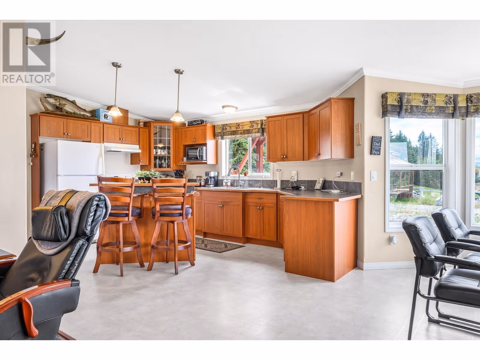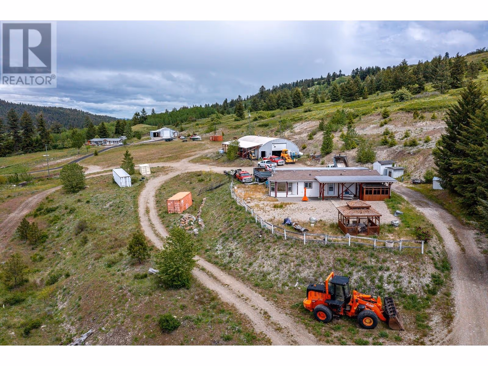 *A Rare Opportunity in One of the Okanagan’s Most Coveted Locations* Set on 9.62 breathtaking acres, this lakeview property is a rare gem offering unmatched potential in one of the most desirable areas of the Central & North Okanagan. Located just 15 km's to Lake Country, 5 km's to Predator Ridge Golf Resort and 20 km's to Vernon & only minutes to award-winning wineries & boat launches - this is truly a lifestyle investment. The welcoming 2-bedroom, 2-bathroom home combines comfort & sustainability. Designed for massive efficiency & cost-effective living, the home features a modern geothermal heating & cooling system, well water & a septic system - providing significant savings and making affordable acreage living a reality. Enjoy outdoor living at its finest with both north & south-facing covered patios, a peaceful gazebo & multiple RV hook-ups for guests. The expansive 80x40 shop is a standout feature with polished concrete floors, 220V power, 18' ceilings, a 500,000 BTU propane furnace, 22' x 10' office & an adjoining 81' x 16' lean-to for additional covered parking or RV storage. This acreage also includes: C-can storage & topsoil. There are no size restrictions for building a second residence, adding exceptional value in a location where land is truly priceless. Whether you’re seeking privacy, a fully equipped workshop or unforgettable lake and mountain views, this property has it all.*Contact your Agent or the Listing Agent today for more info or to schedule a viewing.* (id:58842)