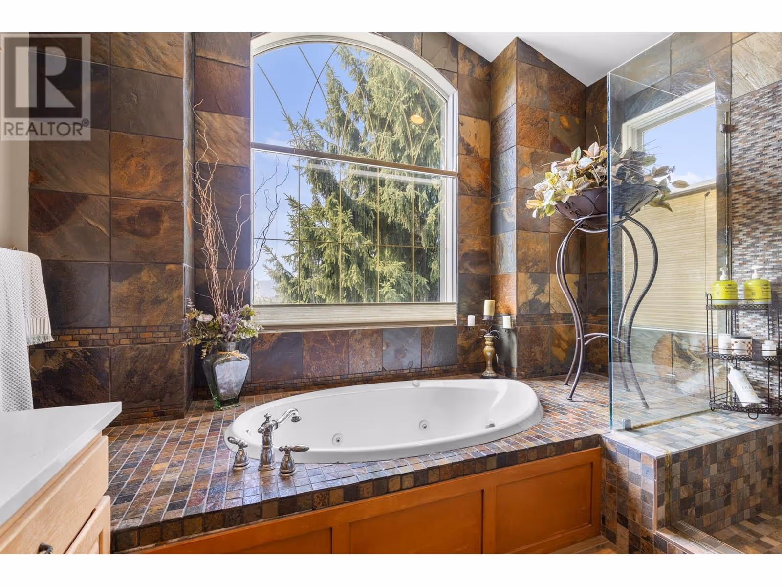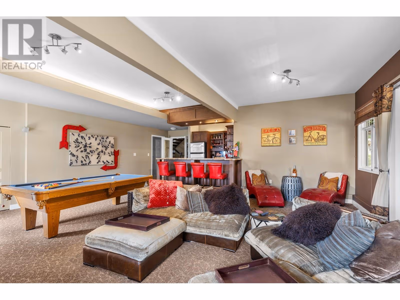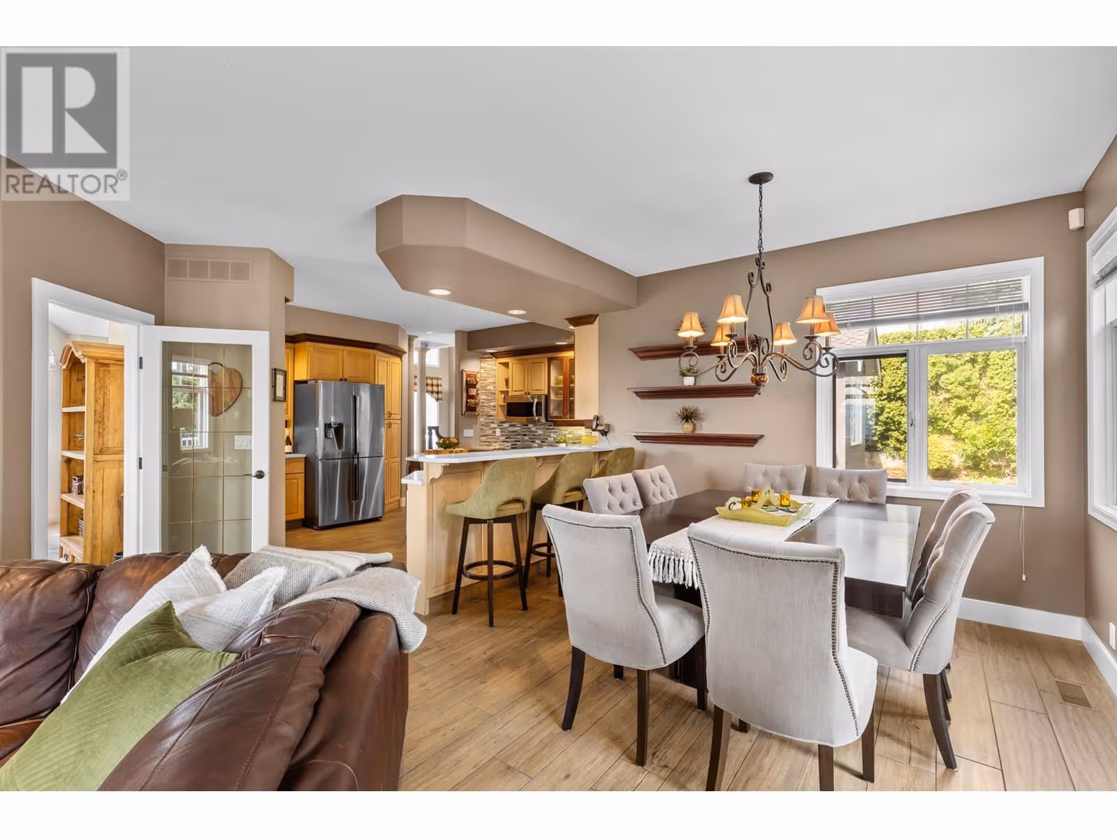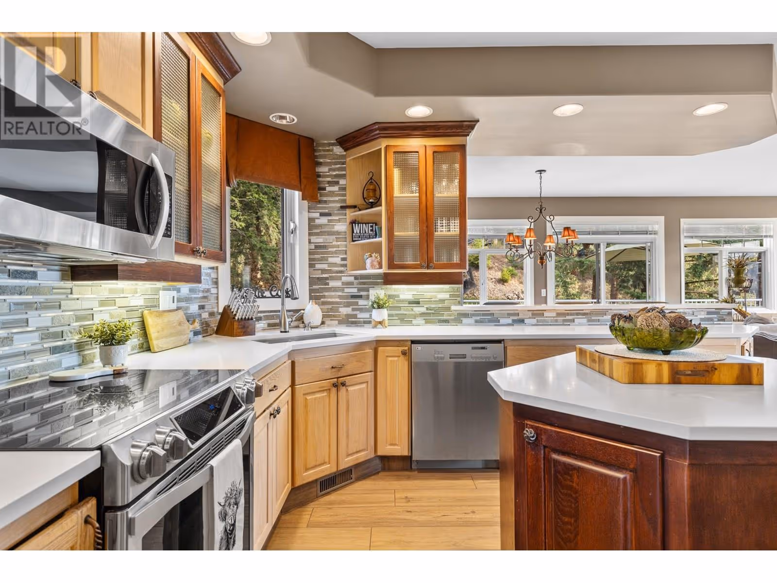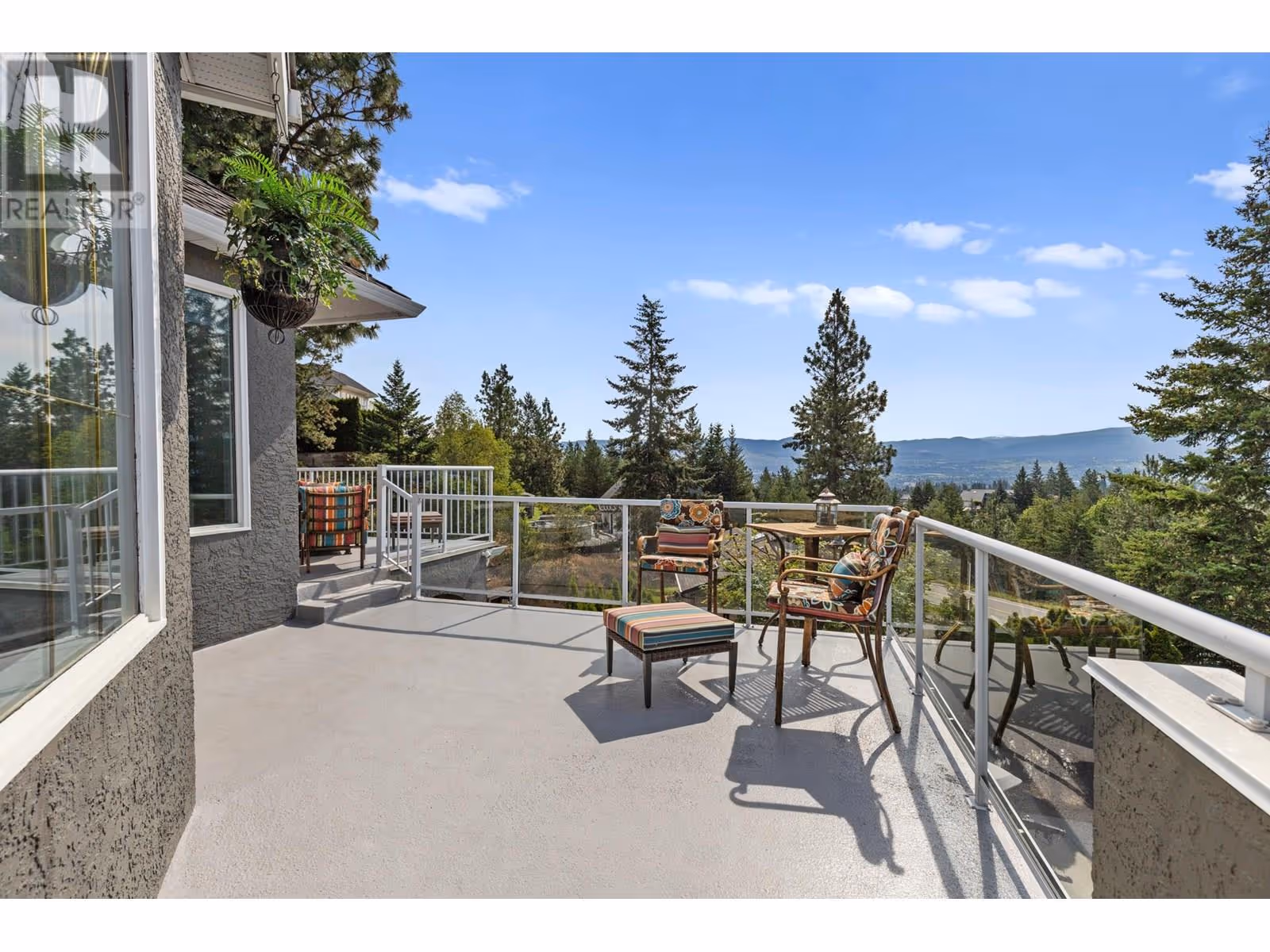 Located in one of Kelowna’s most desirable family neighbourhoods, this 4-bedroom, 3-bathroom home offers over 4,000 sq. ft. of beautifully finished living space and thoughtful touches throughout. Whether you're hosting friends or enjoying a quiet evening with the family, this home delivers the perfect backdrop. Step inside to find luxurious Italian porcelain tile flooring, a chef-inspired kitchen with an induction cooktop and oven, and a wrap-around patio deck capturing expansive valley and peekaboo lake views. The open-concept main floor connects seamlessly to the private backyard—making indoor-outdoor living effortless. The executive-style primary suite features a spa-like ensuite with a soaker tub, large shower, and walk-in closet. Two additional bedrooms share a connecting loft space the kids will adore. Downstairs, the lower level is built for entertaining: a fully equipped wet bar with a massive slab countertop, a games area with gas fireplace, and direct access to the 8-person hot tub and backyard. This level also offers suite potential with a separate entrance, large bedroom, and full bath. Outside, there’s room for all your toys: a double garage, single carport with electric vehicle charger, two driveways, and a tucked-away mini garage. The fenced yard is private, and the side yard offers even more flexibility for future plans. Located minutes from top-rated schools, hiking trails, and everyday amenities, this is more than just a home—it’s a lifestyle. (id:58842)