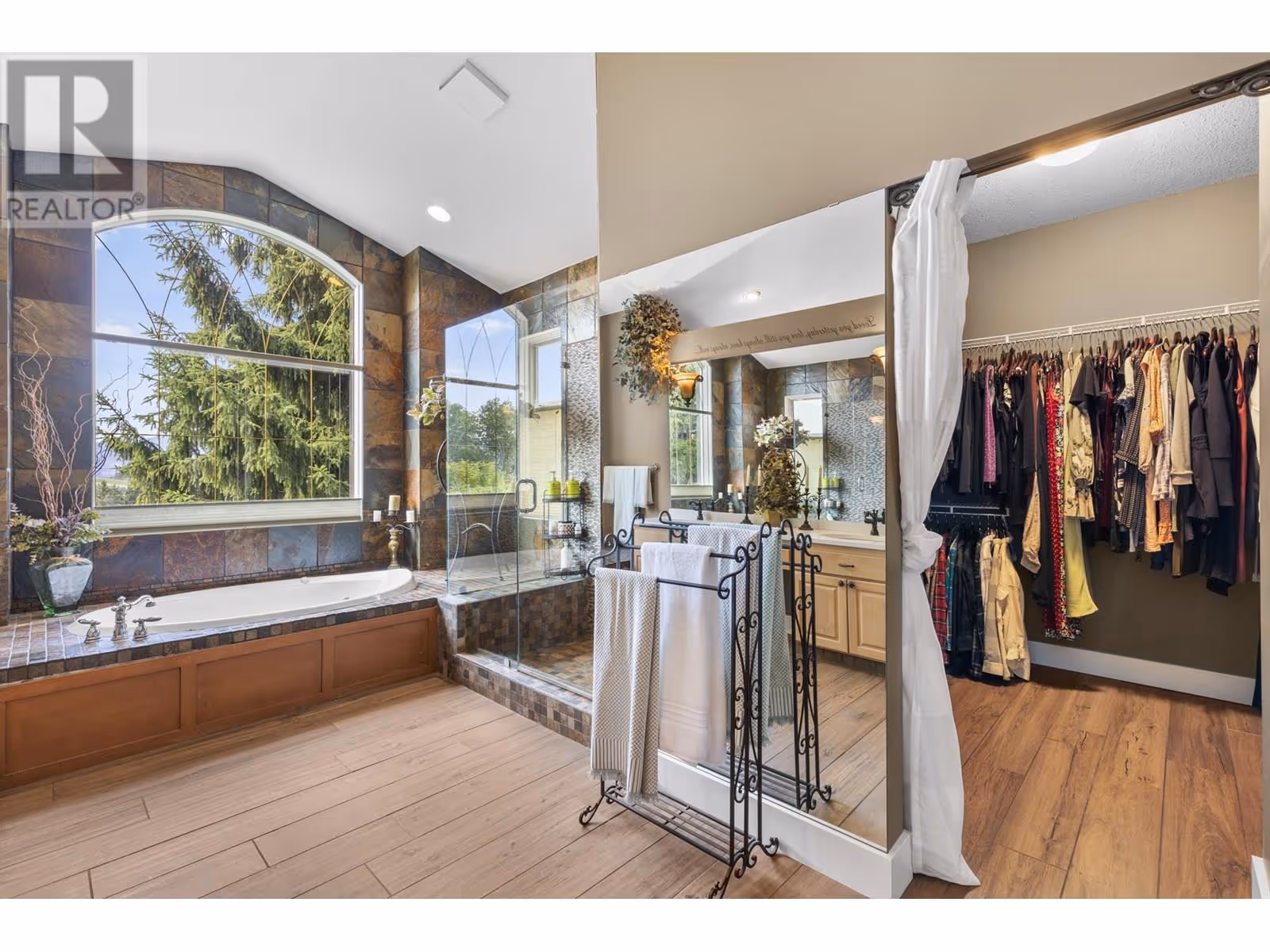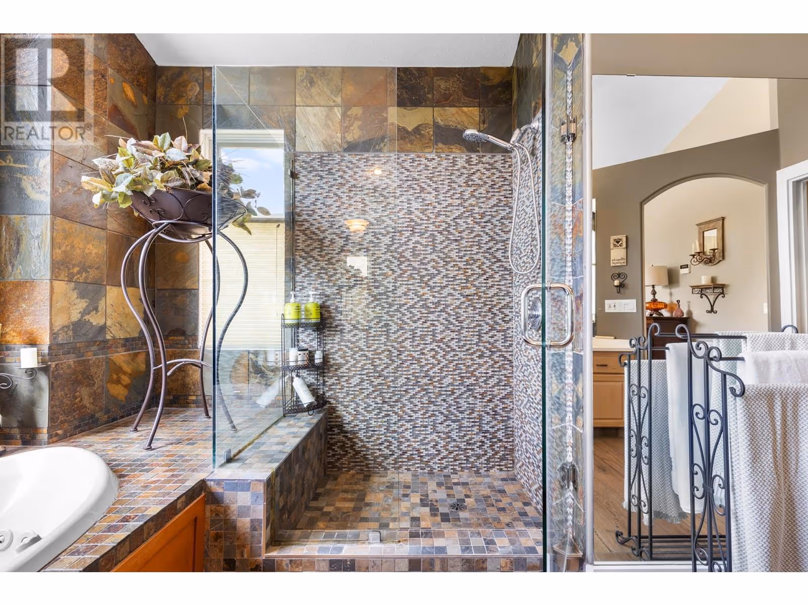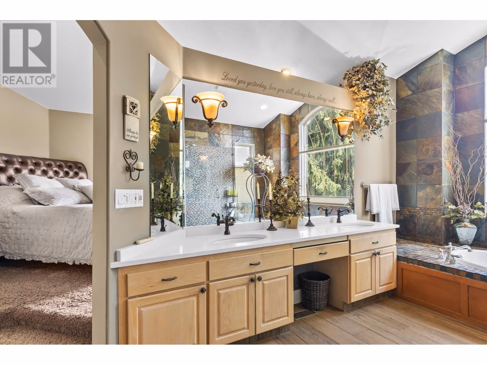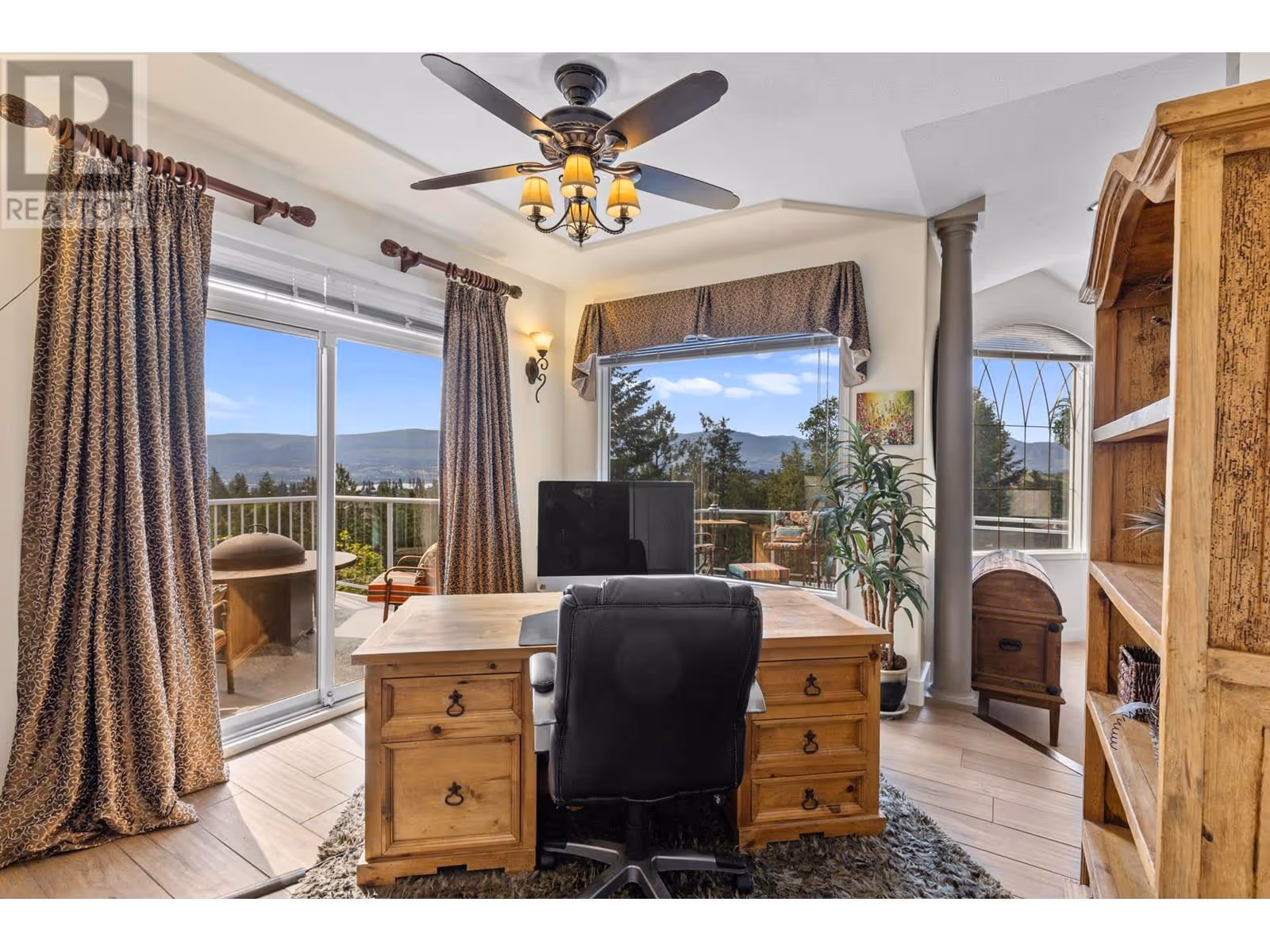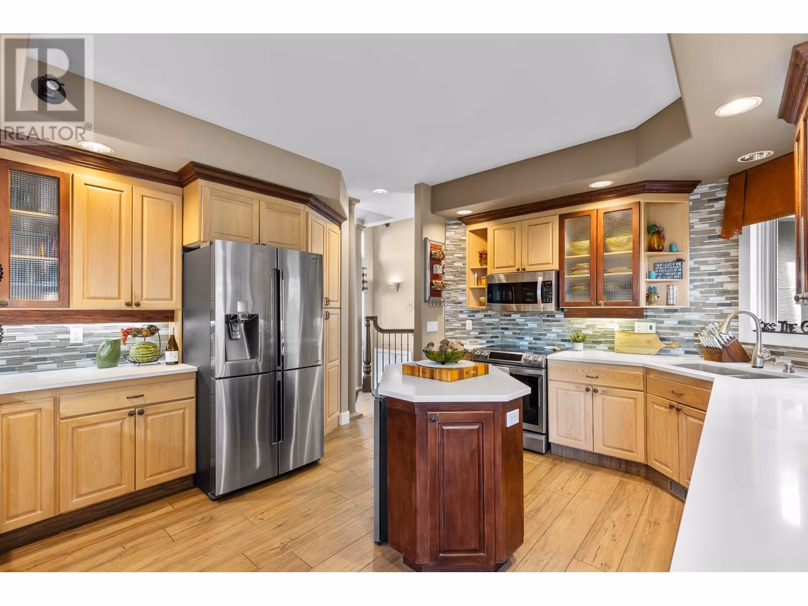 Located in one of Kelowna’s most desirable family neighbourhoods, this 4-bedroom, 3-bathroom home offers over 4,000 sq. ft. of beautifully finished living space and thoughtful touches throughout. Whether you're hosting friends or enjoying a quiet evening with the family, this home delivers the perfect backdrop. Step inside to find luxurious Italian porcelain tile flooring, a chef-inspired kitchen with an induction cooktop and oven, and a wrap-around patio deck capturing expansive valley and peekaboo lake views. The open-concept main floor connects seamlessly to the private backyard—making indoor-outdoor living effortless. The executive-style primary suite features a spa-like ensuite with a soaker tub, large shower, and walk-in closet. Two additional bedrooms share a connecting loft space the kids will adore. Downstairs, the lower level is built for entertaining: a fully equipped wet bar with a massive slab countertop, a games area with gas fireplace, and direct access to the 8-person hot tub and backyard. This level also offers suite potential with a separate entrance, large bedroom, and full bath. Outside, there’s room for all your toys: a double garage, single carport with electric vehicle charger, two driveways, and a tucked-away mini garage. The fenced yard is private, and the side yard offers even more flexibility for future plans. Located minutes from top-rated schools, hiking trails, and everyday amenities, this is more than just a home—it’s a lifestyle. (id:58842)