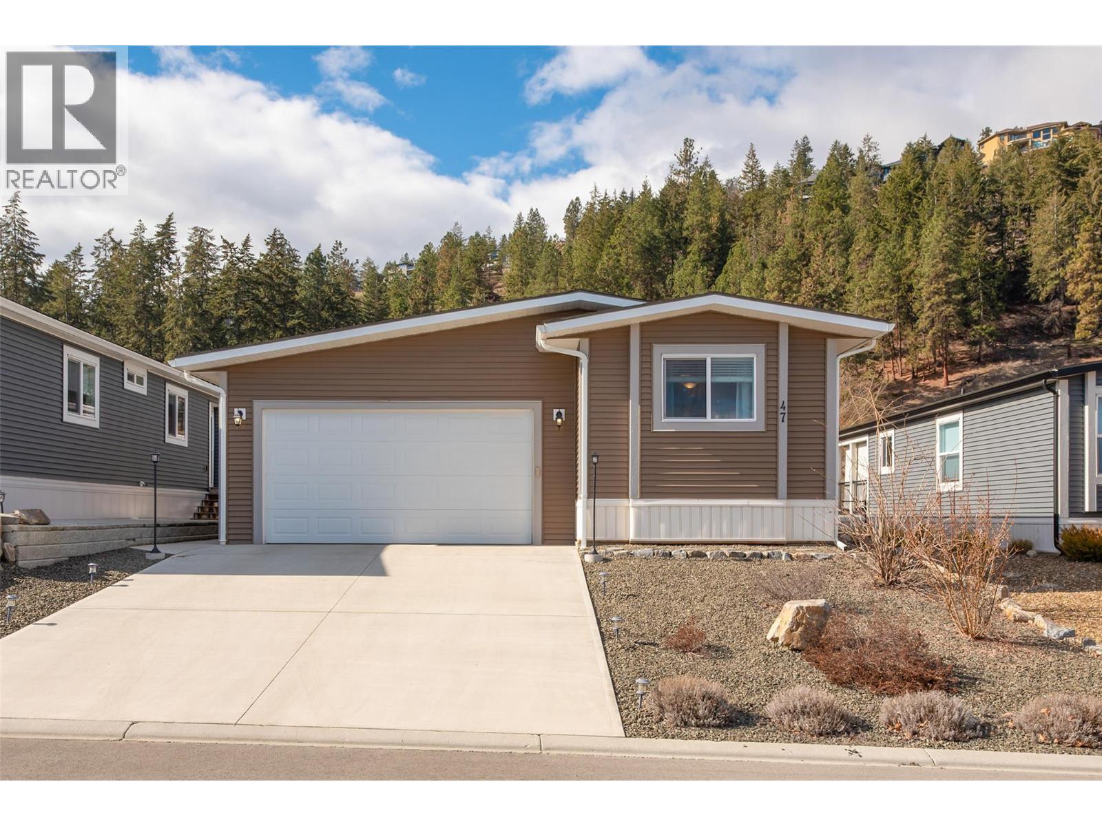 STUNNING PROPERTY WITH DOUBLE GARAGE IN ONE OF THE BEST PARKS IN WEST KELOWNA – Enjoy Okanagan living with 1,418 SF interior space AND an additional ~400 SF of covered deck out your back steps. Beautiful and spacious kitchen (stainless-steel appliances, quality cabinetry, large island, pendant lighting), an open layout to living and dining areas, along with the large covered deck provide a great home for entertaining both inside and out. The primary bedroom boasts a lovely ensuite with double vanities and walk-in closet and it is nicely separated from the 2nd bedroom and bathroom for added privacy from family/guests. Additional flex room provide options for an office, craft room, or whatever you desire. Get rid of your mower - this home has a beautifully designed low-maintenance yard. Spend less time working and more time enjoying. You are close to the beach, Downtown Kelowna, hiking trails, wineries, restaurants and so much more. If you are unsure you are ready to downsize than this may just be the place for you. This home has all the space you would expect from many detached homes or townhouses. And no need to downsize your vehicles with this double garage and large driveway providing lots of parking or maybe additional storage for your outdoor toys, work bench, workout space…so much flexibility for you as your needs change. This home is immaculate and still has new home warranty into 2029. Act quickly and schedule your showing before it’s gone! (id:58842)