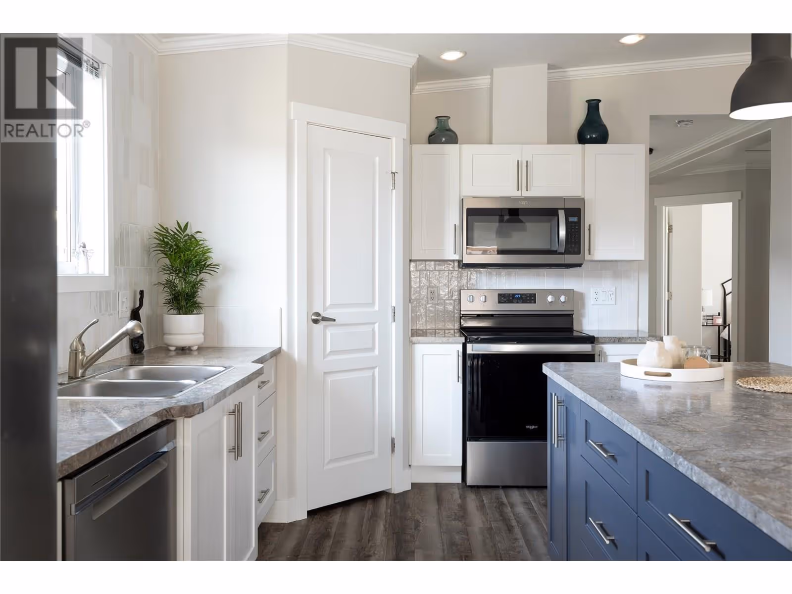 Welcome to affordable & stylish living in the heart of West Kelowna! This beautifully updated 3-bedroom, 2-bathroom home is tucked away in Nancee Way Village, a well-maintained park that offers NO AGE RESTRICTIONS and is PET-FRIENDLY (limit 2: cats or dogs up to 15"" at shoulder). Step inside to an inviting open-concept layout featuring a large living room with stunning fireplace, brand new stainless steel kitchen appliances, and a spacious kitchen island perfect for entertaining. Enjoy seamless indoor-outdoor flow with a new covered deck off the dining room, ideal for relaxing or summer BBQs. The fully fenced yard offers privacy and security, with low-maintenance Arizona-style landscaping that looks great year-round. There's also a large storage shed, plus RV and boat parking available within the park. Conveniently located close to highway access and shopping, this home has everything you need! Comfort, convenience, and style. PAD rental $550 per month which includes water, sewer, garbage, recycling & snow removal. (id:58842)
