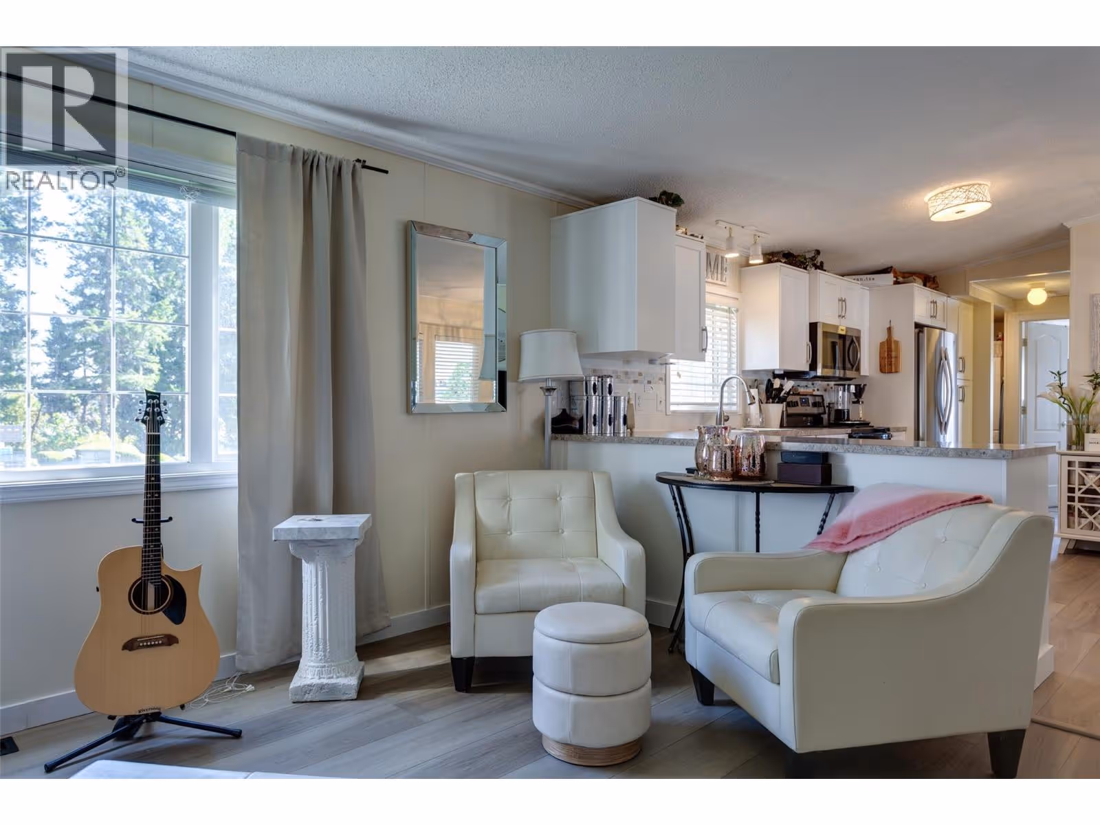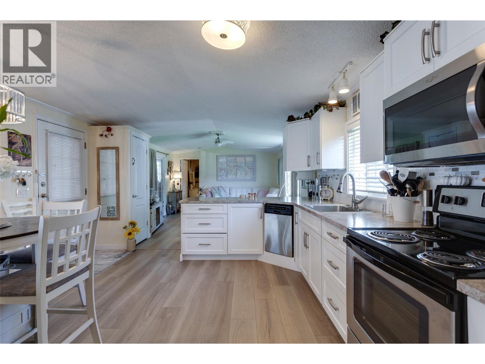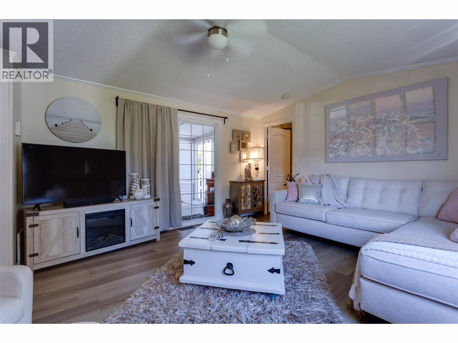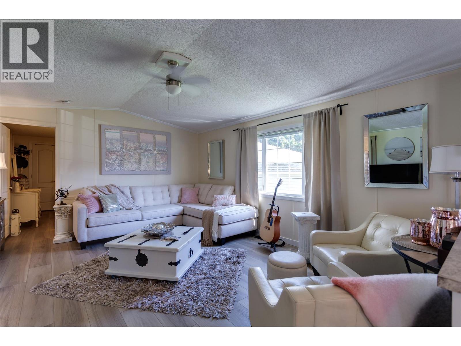 Don't miss out on viewing this meticulously and well-maintained home in Crystal Springs, West Kelowna's premier 55+ retirement community, nestled in the desirable Shannon Lake area. This home offers a fabulous layout, complete with an open floor plan, updated kitchen, bathrooms, skylights, stainless steel appliances, new flooring, and modern light fixtures. Recently repainted, the interior is brightened by large windows that frame picturesque mountain views. The large 16"" x 10 "" sunroom, with its patio doors off the living room and additional patio doors at each end, surrounded by screened windows, provides a tranquil space to enjoy nature all year-round. The primary bedroom is generously sized and includes a walk-in closet and ensuite. A second spacious bedroom and an additional four-piece bathroom are located at the opposite end of the home, ensuring privacy for guests. A dedicated laundry room features a newer front-loading washer and dryer. Outside, the beautifully landscaped yard offers a private patio area perfect for relaxation. The low-maintenance garden includes convenient drip lines, artificial turf, a spacious gazebo, and a matching storage shed. Parking includes a carport for one vehicle and an additional driveway space. There is RV/Boat parking in the park. The home is conveniently located on a no-through road adjacent to the clubhouse, which offers an extra guest suite. All city amenities are just a short drive away. Owners may have one small dog (not to exceed 12 lbs or 14"") or one cat. Gross property taxes: $1,308.30, Pad rent: $700 for new buyers, and water and sewer approximately $228 every quarter. This is a fantastic opportunity to own a piece of paradise on private land and enjoy the Okanagan lifestyle. (id:58842)