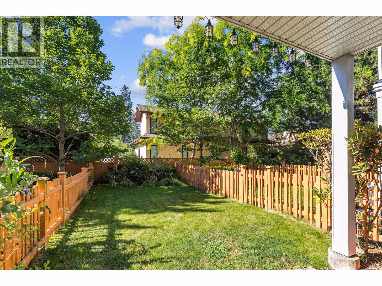 Welcome to this beautifully updated 3-bedroom, 3-bath townhouse, ideally situated in the sought-after Solano development! Centrally located and move-in ready, this home shines with tasteful upgrades throughout — including brand new carpeting, fresh paint, and modern light fixtures. The main level features a well-appointed kitchen with stainless steel appliances, granite countertops, and convenient access to the private deck — perfect for relaxing or summer BBQs. The bright and spacious living room is a true highlight, complete with a custom feature wall and cozy gas fireplace. Upstairs, you’ll find three comfortable bedrooms, including a generously sized primary suite with a 3-piece ensuite. The lower level entryway opens into a practical landing area, tandem garage with a shop/storage area, and access to the private, fenced yard — a great spot for kids or pets to play safely. Enjoy the unbeatable location with all major amenities just steps away and the scenic Mission Creek Greenway only minutes from your door. (id:58842)