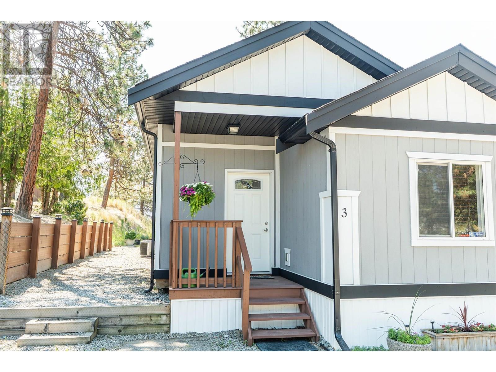 Million-Dollar Lakeview Living in West Kelowna Welcome to Unit #3 at 1860 Boucherie Road where modern comfort meets breathtaking scenery. This beautifully renovated 3-bedroom, 1-bathroom home offers 1,107 sq. ft. of open-concept living space, a gourmet kitchen with beautiful cabinetry, sleek stainless steel appliances, and plenty of counter space for meal prep or entertaining. The adjoining dining area is spacious and inviting ideal for hosting family or friends. Wake up each day to a million-dollar view from the large primary bedroom, which features a generous walk-in closet. The two additional bedrooms offer flexibility for family, guests, or a home office. The walk-through bathroom includes a massive soaker tub, creating the perfect space to unwind. Stylish upgrades continue with a gorgeous washer and dryer, while outside, the home boasts grey Hardie board siding, decorative window trim, and a massive 185 sq. ft. deck perfect for soaking up the view. The sprawling layout includes a bright living room, a functional kitchen (12'8"" x 11'5""), and a sunny dining area (14'10"" x 8'0""). Handy 10 x 8 Storage shed for yard tools & more Situated in a peaceful community that feels like the country—but is just 5 minutes from all amenities, schools, and services—this home offers the perfect balance of tranquility and convenience. Whether you’re downsizing, investing, or buying your first lakeview property, this is your opportunity to own a slice of paradise in West Kelowna. (id:58842)