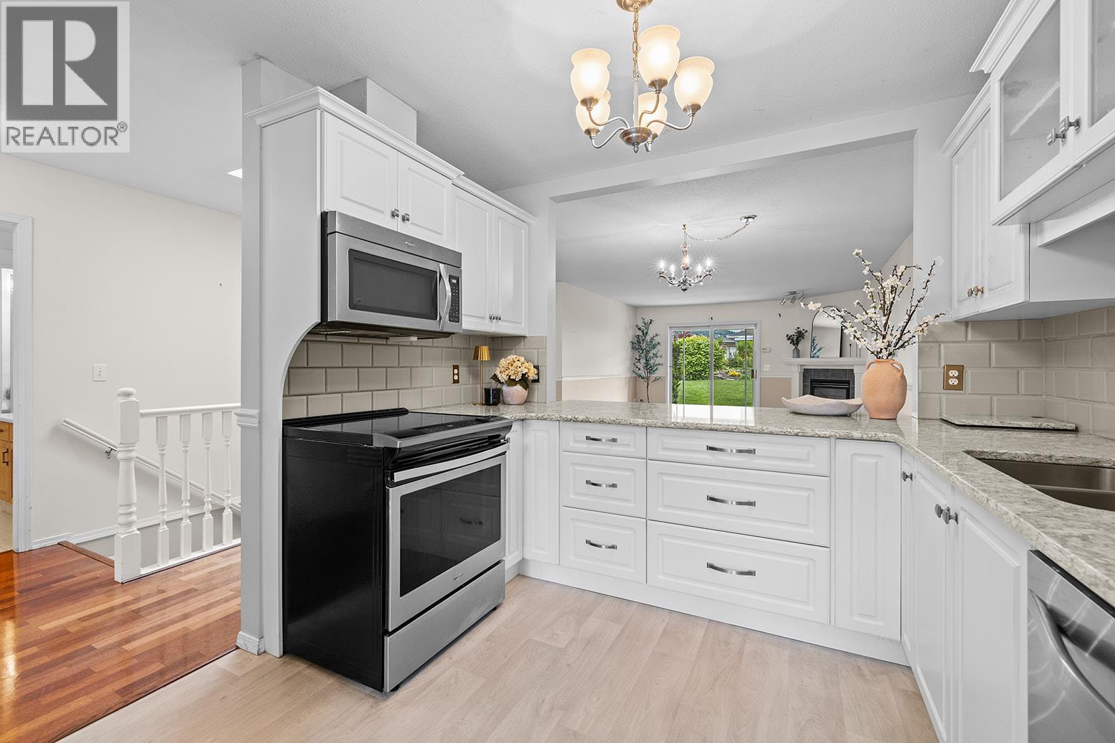 With an AMAZING LOCATION, discover comfort and convenience in this bright and spacious 4 bedroom, 3-bathroom townhome, perfectly nestled in a quiet, well-kept 55+ community in the heart of Kelowna. The main floor offers a thoughtful layout with a light-filled entrance with a gorgeous skylight, a primary bedroom featuring a private ensuite with an accessible WALK IIN TUB & expansive dual vanity. A second bedroom, and an additional full bathroom on your main level is perfect for convenience. Cozy up in your living room with a gas fireplace & enjoy a seamless flow into both the dining room and kitchen that has been opened up to create a space that is perfect for gathering and savouring company. The kitchen is adorned with granite countertops, bright white cabinetry, whirlpool appliances and a newer stove. Downstairs, you’ll find a versatile rec room, a third full bath, and laundry area—ideal for guests or hobbies. Enjoy the ease of an attached single-car garage and low-maintenance living. Just minutes from shopping, parks, medical offices, and transit, this home offers the perfect blend of comfort, location, and lifestyle. Furnace 2016. AC 2018. HWT 2021. Electrolux 2019. (ages are approx) 1 cat or dog allowed (max 15” at shoulder and 25lbs) (id:58842)