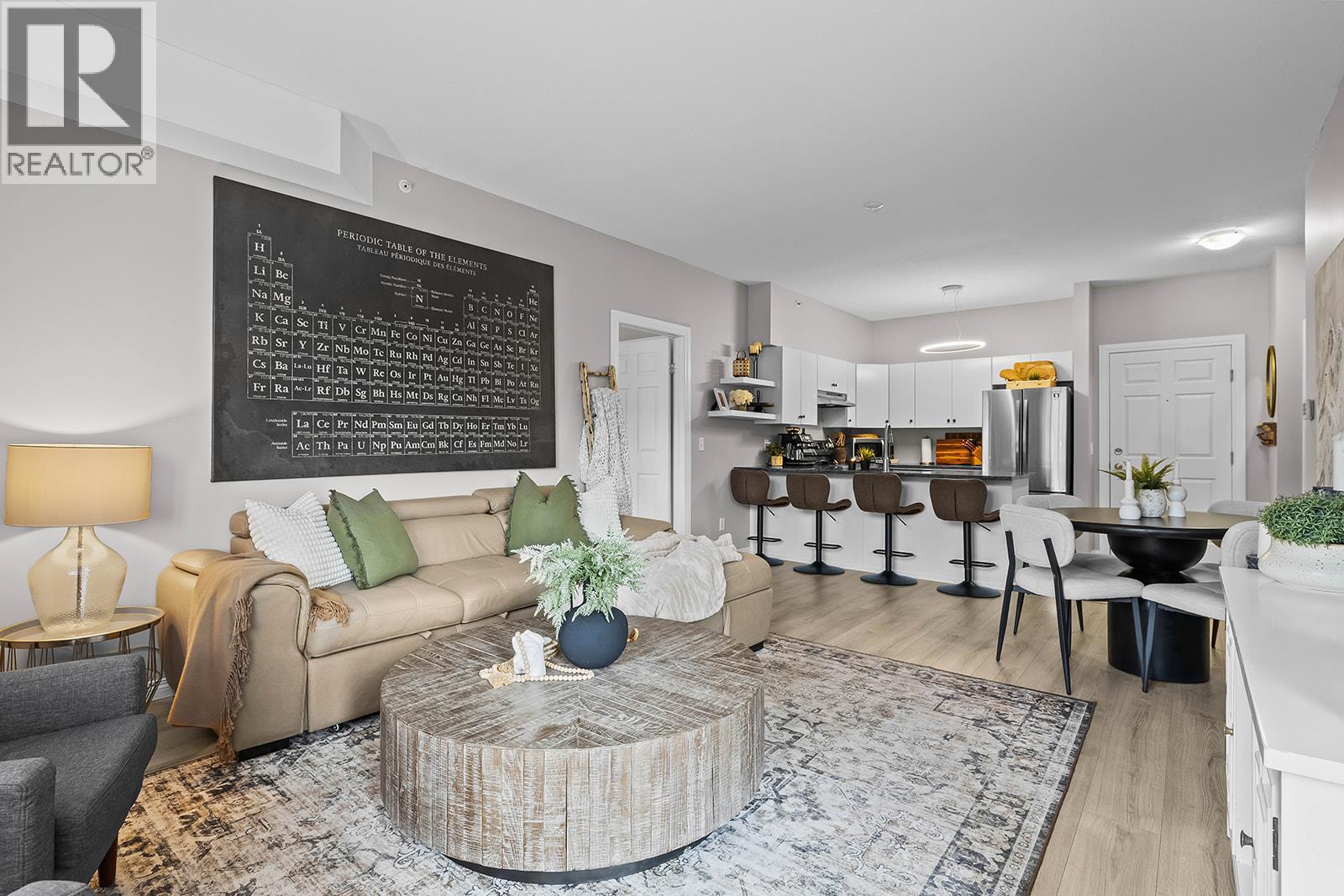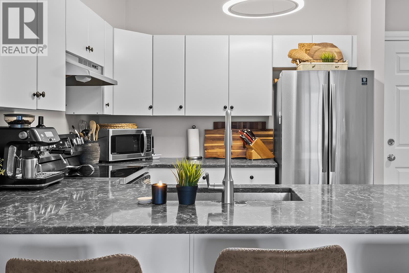 Beautifully updated, bright top floor 2 bedroom condo showcasing true pride of ownership. Finished in modern, soft pastel tones, this home features granite countertops, white cabinetry, stainless steel appliances, updated lighting, and stylish grey plank flooring, showing a perfect 10/10. Ideal as a primary residence or investment property, with both short- and long-term rentals permitted. Located just steps from the Quail Ridge Championship Golf Course and within walking distance or a short drive to UBCO. Conveniently close to shops, restaurants, coffee shops, a cidery, gas bar, pharmacy, and Kelowna International Airport. Includes one underground parking stall and access to a bike storage room. An excellent opportunity for investors, students, and golf enthusiasts alike, with quick access to the meeting office, fitness centre, and outdoor pool and hot tub amenities. (id:58842)