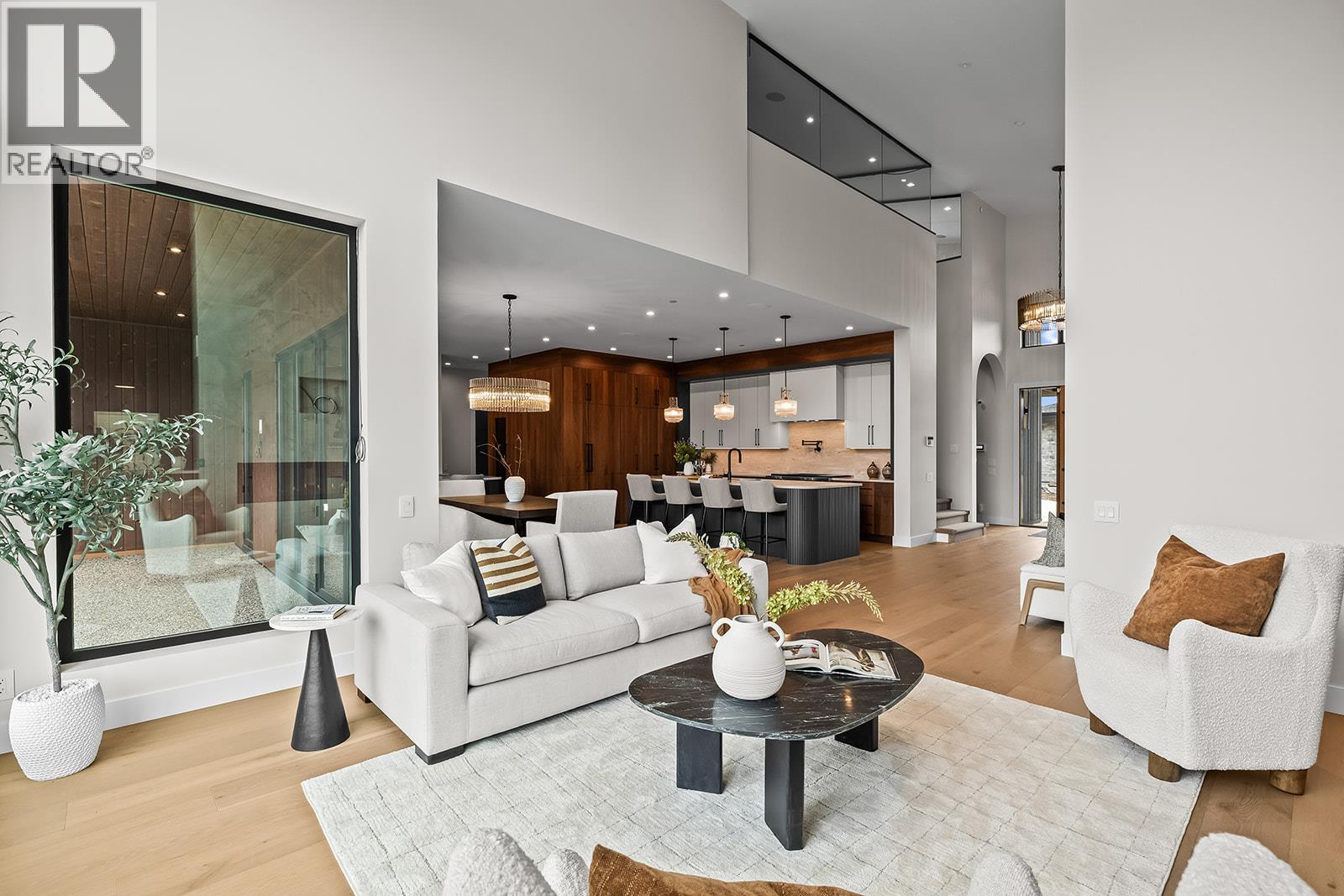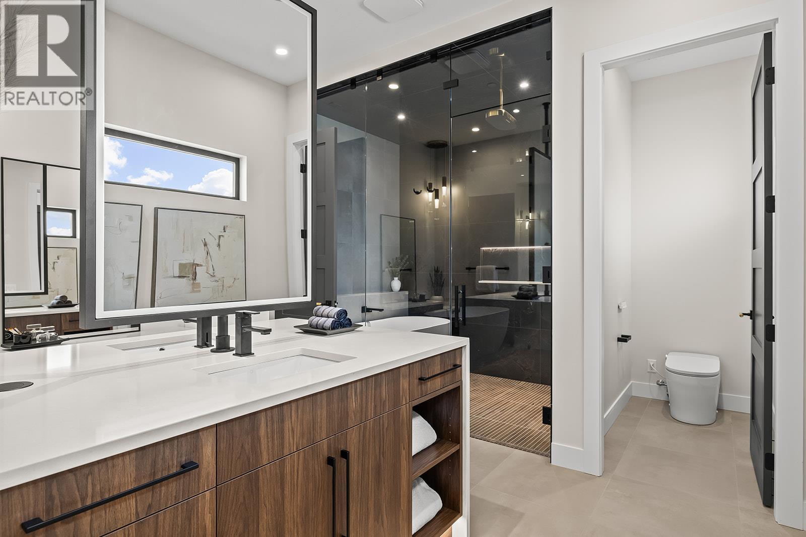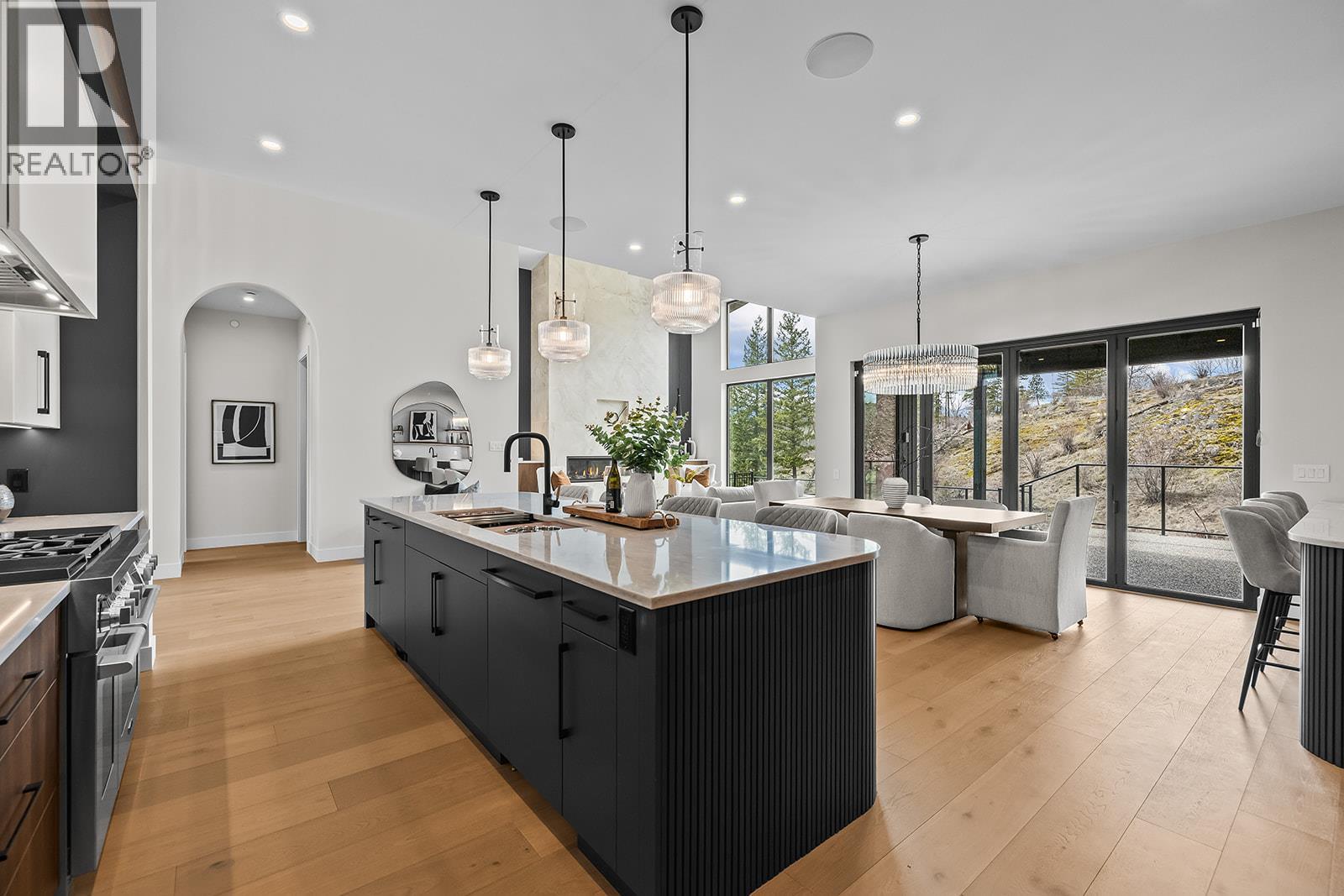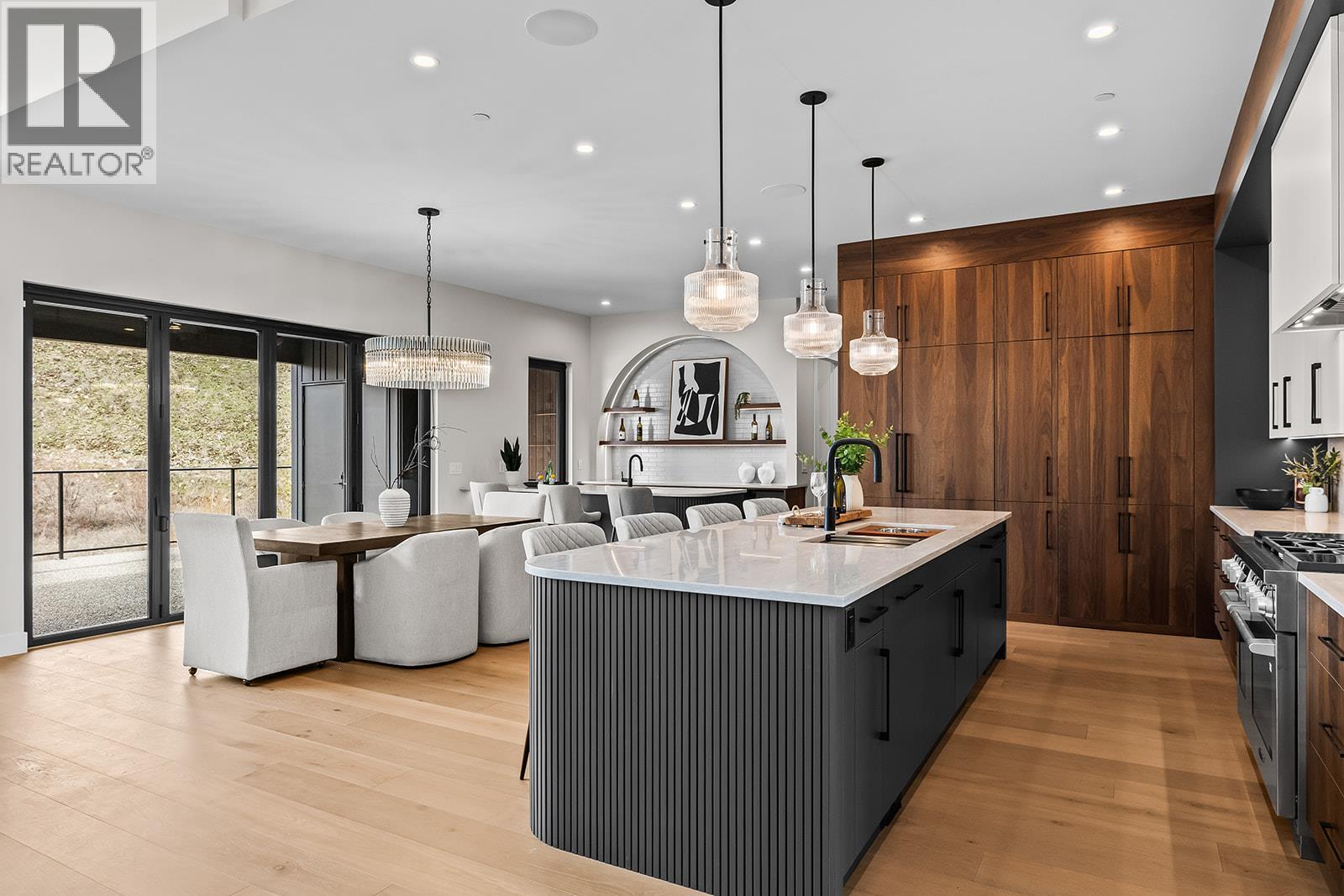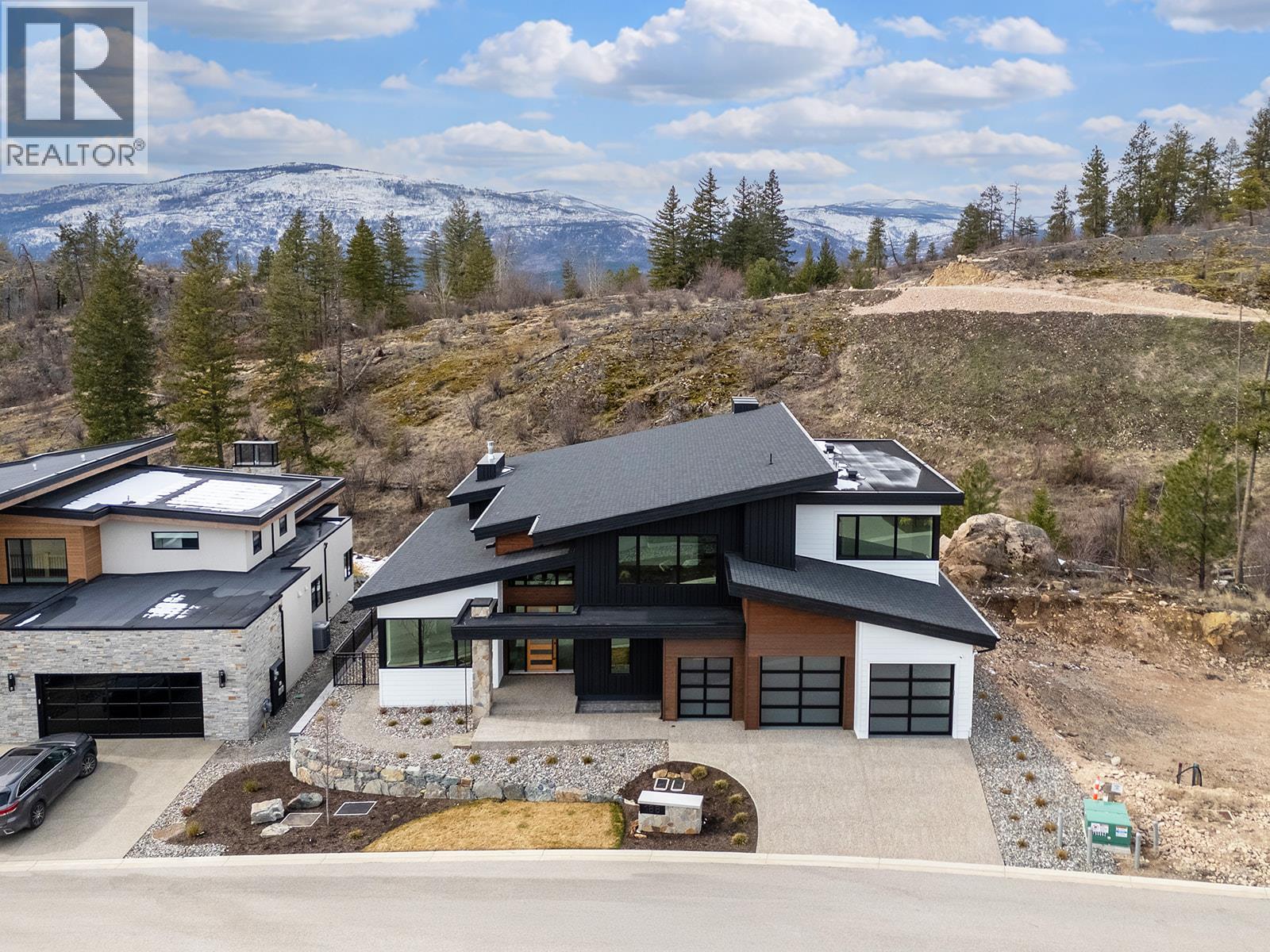 Experience refined Predator Ridge golf resort living in this exceptional Carrington Homes new build, where striking architecture meets seamless indoor outdoor design. Located in one of the Okanagan’s most prestigious Predator Ridge golf communities, this luxury residence offers breathtaking surroundings and thoughtfully crafted living spaces. The impressive exterior showcases multiple rooflines and professional landscaping that beautifully reflects the natural beauty of the Okanagan Valley. Inside, vaulted ceilings and expansive windows fill the home with natural light, creating a warm yet sophisticated atmosphere ideal for both everyday living and entertaining. At the heart of the home is a spectacular chef’s kitchen designed for culinary enthusiasts. An impressive 11 foot island with a 45"" workstation sink anchors the space, complemented by quartz surfaces, premium cabinetry, and a statement 48"" professional range featuring gas, induction, and sous-vide cooking capabilities. Concealed appliances and a hidden walk in pantry maintain a sleek, modern aesthetic while maximizing functionality. Entertaining flows effortlessly from the elegant wet bar to the outdoor living area through dramatic accordion glass doors. The covered patio, pool, and outdoor shower create a private retreat perfect for enjoying warm Okanagan evenings and embracing the coveted Predator Ridge lifestyle. The serene primary suite offers a true spa experience with a luxurious ensuite featuring a stunning wet room and vanity island. Upstairs, a spacious bonus room opens to a large covered deck, alongside two bedrooms, a versatile flex room, and convenient upper laundry. Completing this remarkable luxury Predator Ridge Property is an oversized 2 garage plus a dedicated golf cart bay, perfect for effortless access to world-class golf, trails, and resort amenities (id:58842)