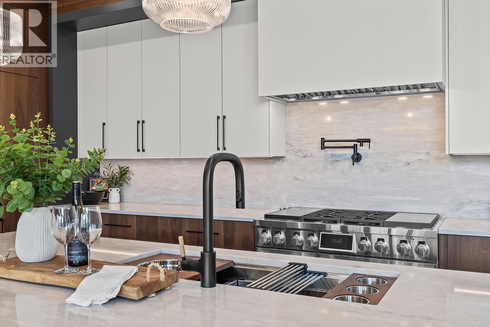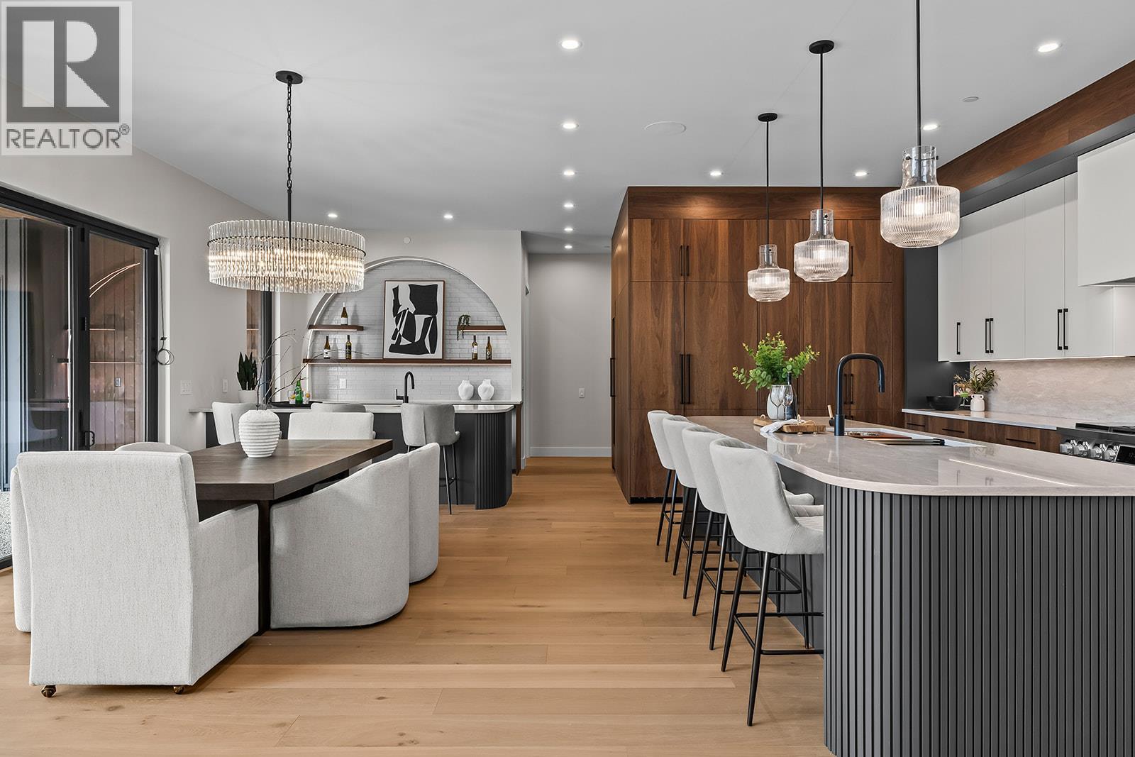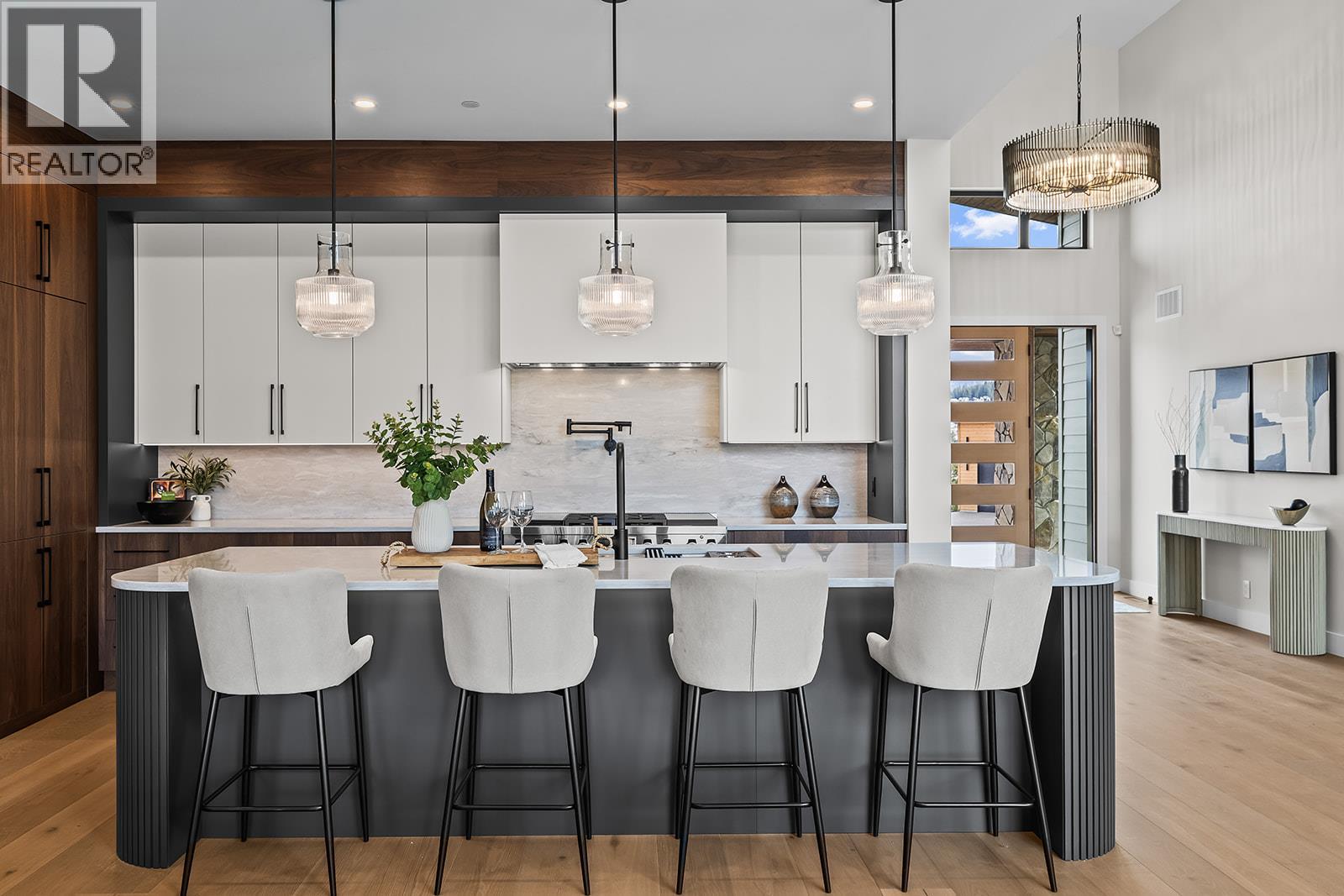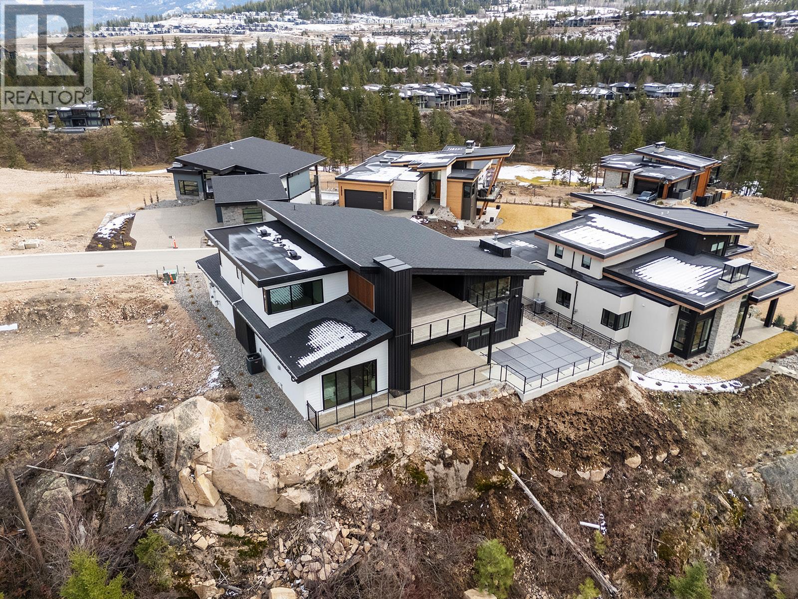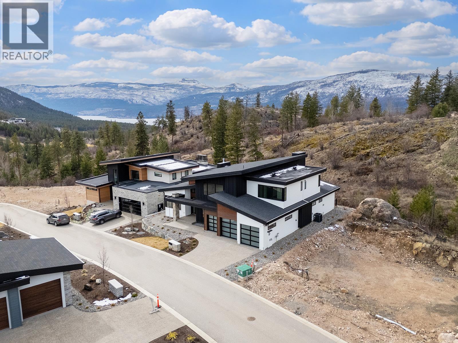 Experience refined Predator Ridge golf resort living in this exceptional Carrington Homes new build, where striking architecture meets seamless indoor outdoor design. Located in one of the Okanagan’s most prestigious Predator Ridge golf communities, this luxury residence offers breathtaking surroundings and thoughtfully crafted living spaces. The impressive exterior showcases multiple rooflines and professional landscaping that beautifully reflects the natural beauty of the Okanagan Valley. Inside, vaulted ceilings and expansive windows fill the home with natural light, creating a warm yet sophisticated atmosphere ideal for both everyday living and entertaining. At the heart of the home is a spectacular chef’s kitchen designed for culinary enthusiasts. An impressive 11 foot island with a 45"" workstation sink anchors the space, complemented by quartz surfaces, premium cabinetry, and a statement 48"" professional range featuring gas, induction, and sous-vide cooking capabilities. Concealed appliances and a hidden walk in pantry maintain a sleek, modern aesthetic while maximizing functionality. Entertaining flows effortlessly from the elegant wet bar to the outdoor living area through dramatic accordion glass doors. The covered patio, pool, and outdoor shower create a private retreat perfect for enjoying warm Okanagan evenings and embracing the coveted Predator Ridge lifestyle. The serene primary suite offers a true spa experience with a luxurious ensuite featuring a stunning wet room and vanity island. Upstairs, a spacious bonus room opens to a large covered deck, alongside two bedrooms, a versatile flex room, and convenient upper laundry. Completing this remarkable luxury Predator Ridge Property is an oversized 2 garage plus a dedicated golf cart bay, perfect for effortless access to world-class golf, trails, and resort amenities (id:58842)