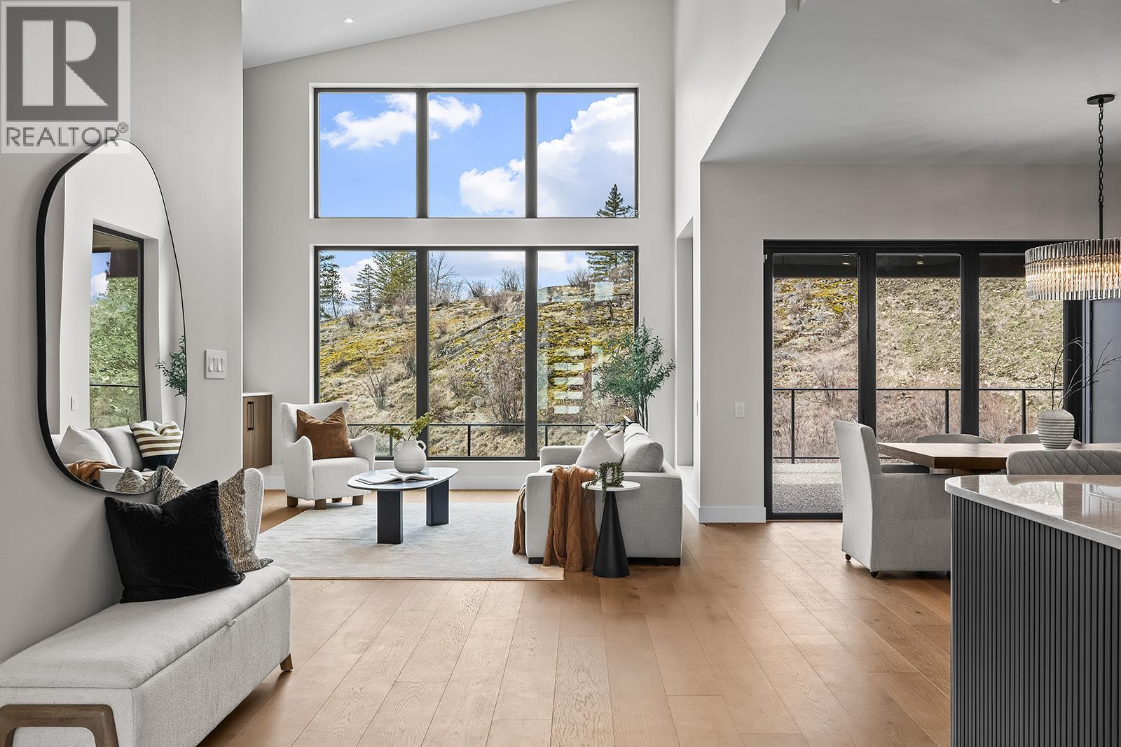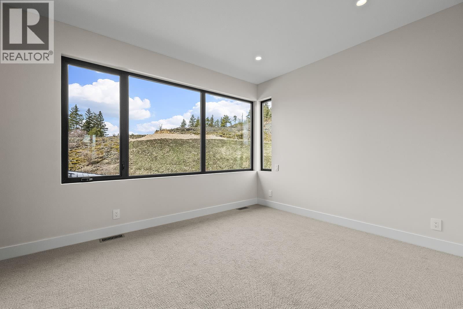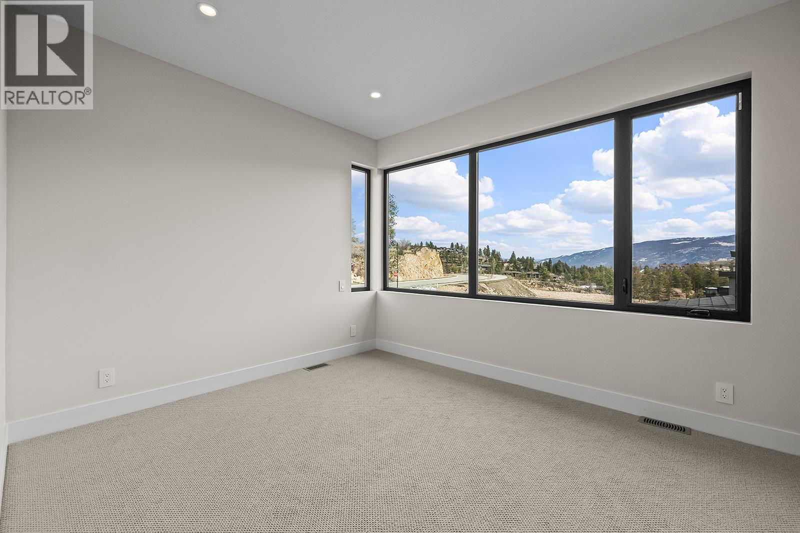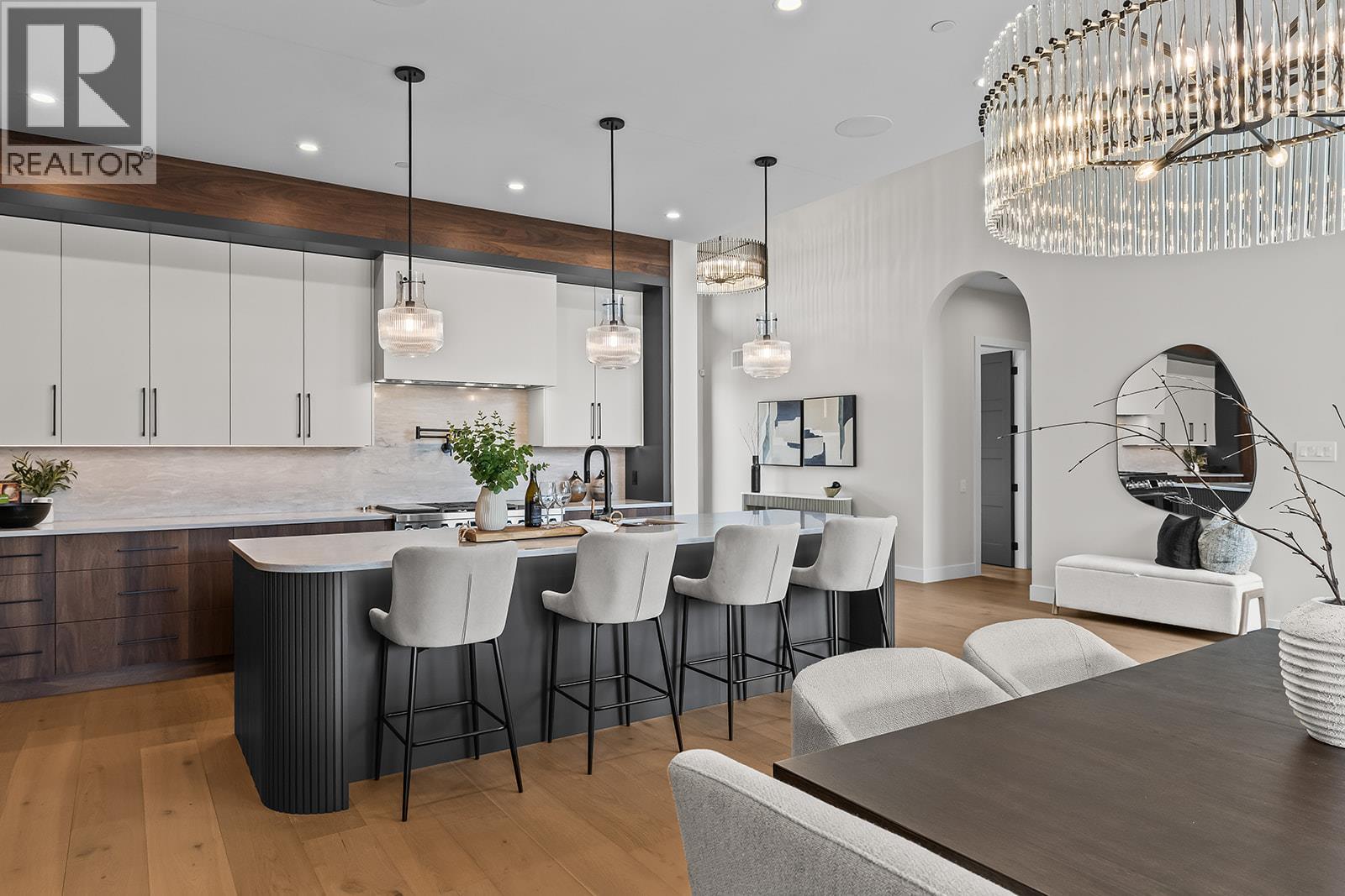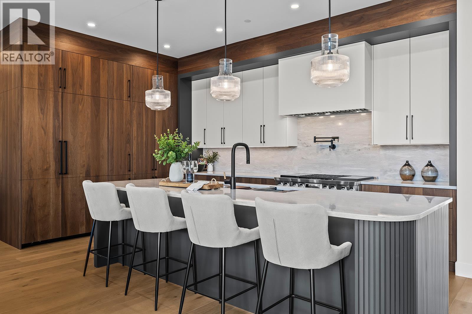 Experience refined Predator Ridge golf resort living in this exceptional Carrington Homes new build, where striking architecture meets seamless indoor outdoor design. Located in one of the Okanagan’s most prestigious Predator Ridge golf communities, this luxury residence offers breathtaking surroundings and thoughtfully crafted living spaces. The impressive exterior showcases multiple rooflines and professional landscaping that beautifully reflects the natural beauty of the Okanagan Valley. Inside, vaulted ceilings and expansive windows fill the home with natural light, creating a warm yet sophisticated atmosphere ideal for both everyday living and entertaining. At the heart of the home is a spectacular chef’s kitchen designed for culinary enthusiasts. An impressive 11 foot island with a 45"" workstation sink anchors the space, complemented by quartz surfaces, premium cabinetry, and a statement 48"" professional range featuring gas, induction, and sous-vide cooking capabilities. Concealed appliances and a hidden walk in pantry maintain a sleek, modern aesthetic while maximizing functionality. Entertaining flows effortlessly from the elegant wet bar to the outdoor living area through dramatic accordion glass doors. The covered patio, pool, and outdoor shower create a private retreat perfect for enjoying warm Okanagan evenings and embracing the coveted Predator Ridge lifestyle. The serene primary suite offers a true spa experience with a luxurious ensuite featuring a stunning wet room and vanity island. Upstairs, a spacious bonus room opens to a large covered deck, alongside two bedrooms, a versatile flex room, and convenient upper laundry. Completing this remarkable luxury Predator Ridge Property is an oversized 2 garage plus a dedicated golf cart bay, perfect for effortless access to world-class golf, trails, and resort amenities (id:58842)