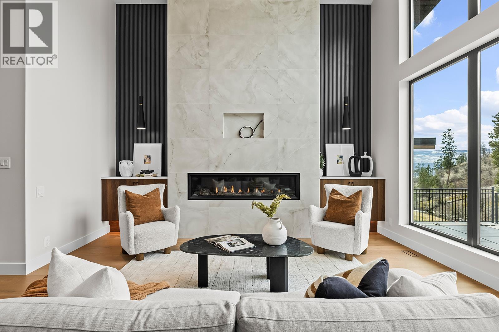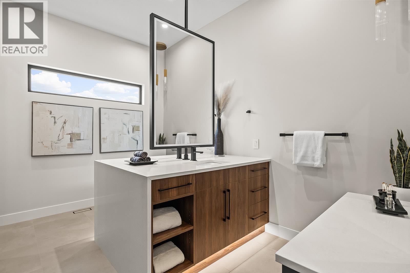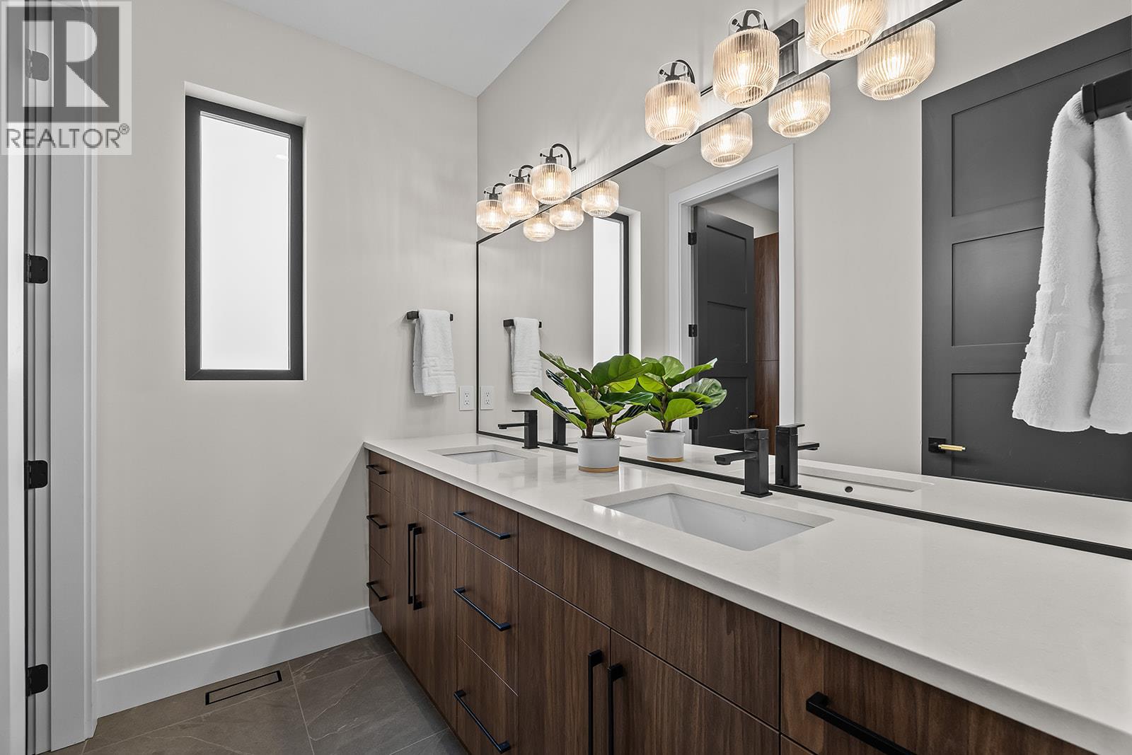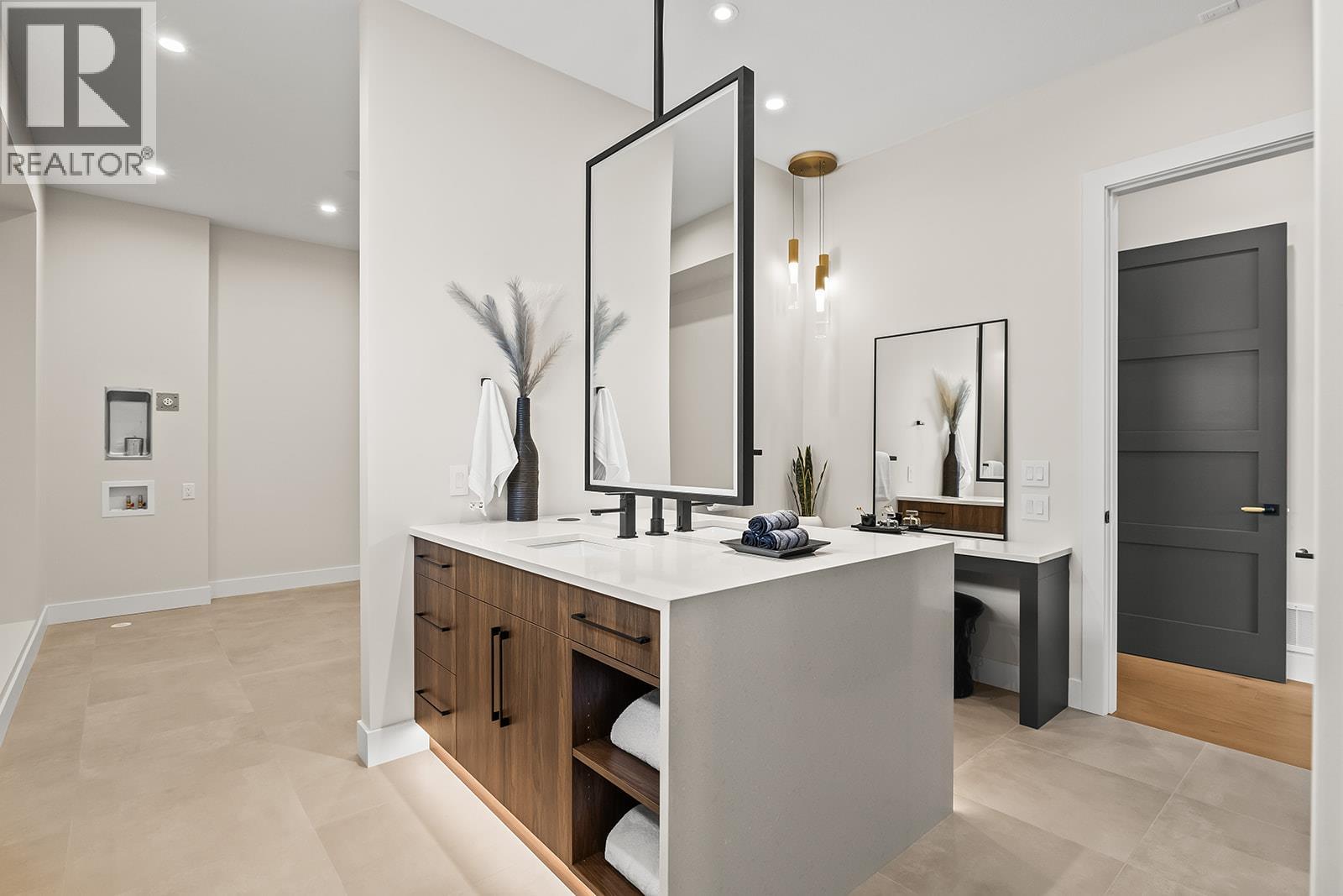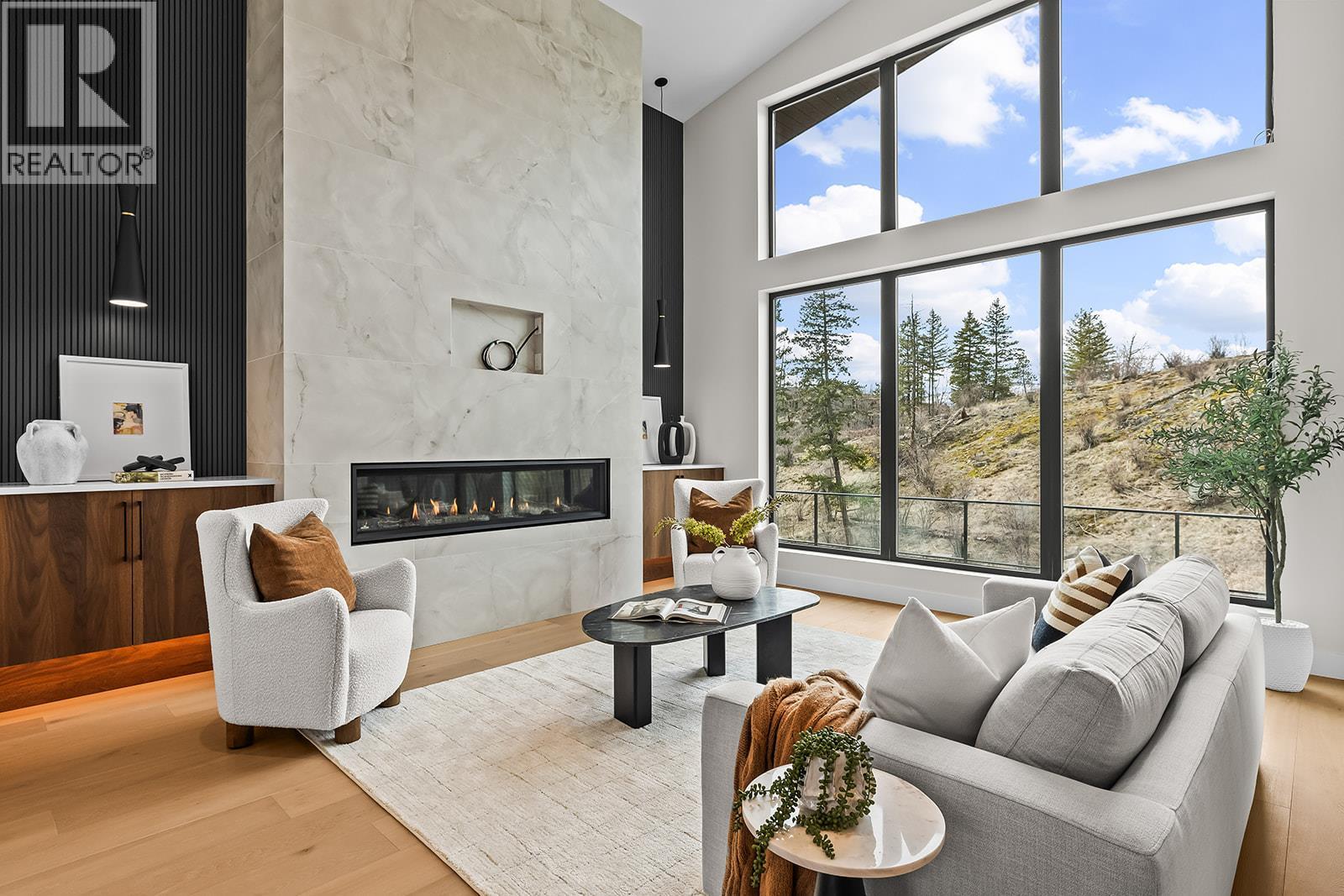 Experience refined Predator Ridge golf resort living in this exceptional Carrington Homes new build, where striking architecture meets seamless indoor outdoor design. Located in one of the Okanagan’s most prestigious Predator Ridge golf communities, this luxury residence offers breathtaking surroundings and thoughtfully crafted living spaces. The impressive exterior showcases multiple rooflines and professional landscaping that beautifully reflects the natural beauty of the Okanagan Valley. Inside, vaulted ceilings and expansive windows fill the home with natural light, creating a warm yet sophisticated atmosphere ideal for both everyday living and entertaining. At the heart of the home is a spectacular chef’s kitchen designed for culinary enthusiasts. An impressive 11 foot island with a 45"" workstation sink anchors the space, complemented by quartz surfaces, premium cabinetry, and a statement 48"" professional range featuring gas, induction, and sous-vide cooking capabilities. Concealed appliances and a hidden walk in pantry maintain a sleek, modern aesthetic while maximizing functionality. Entertaining flows effortlessly from the elegant wet bar to the outdoor living area through dramatic accordion glass doors. The covered patio, pool, and outdoor shower create a private retreat perfect for enjoying warm Okanagan evenings and embracing the coveted Predator Ridge lifestyle. The serene primary suite offers a true spa experience with a luxurious ensuite featuring a stunning wet room and vanity island. Upstairs, a spacious bonus room opens to a large covered deck, alongside two bedrooms, a versatile flex room, and convenient upper laundry. Completing this remarkable luxury Predator Ridge Property is an oversized 2 garage plus a dedicated golf cart bay, perfect for effortless access to world-class golf, trails, and resort amenities (id:58842)