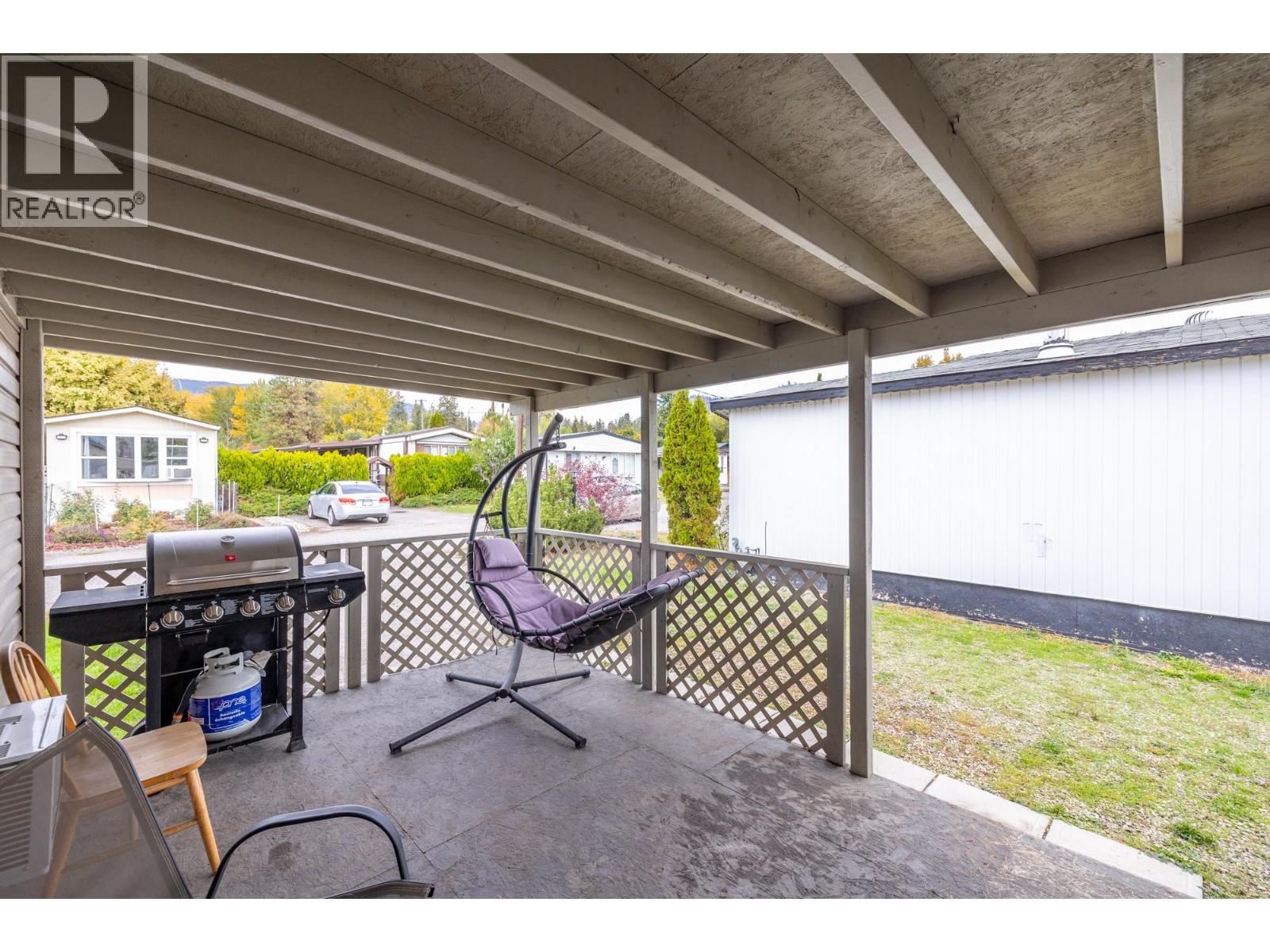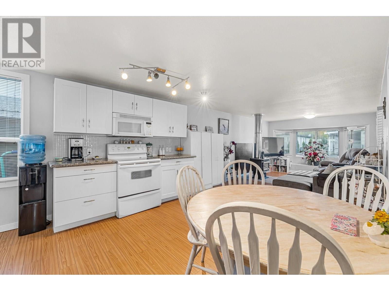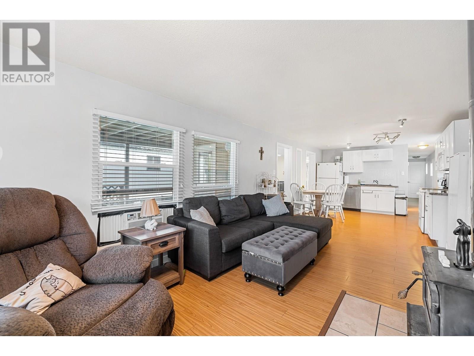 Welcome to this beautifully updated 2-bedroom, 1-bathroom manufactured home, located in the family- friendly section of Westgate Village. Thoughtfully renovated throughout, this home features modern kitchen cabinetry with granite countertops, and a refreshed bathroom complete with updated vanity, shower, toilet, and tilework. The freshly painted living area is bright and welcoming, complemented by a cozy wood-burning stove for added warmth and charm. The spacious primary bedroom includes a generous 65 sq.ft. walk-in closet that can easily double as a home office or den. Step outside to enjoy the covered deck, perfect for year-round relaxation, as well as ample parking and a large storage shed for your outdoor gear and extras. Centrally located near golf courses, shopping, wineries, restaurants, schools, and scenic walking and hiking trails. You’re also just minutes away from beautiful beaches and parks along Okanagan Lake. Enjoy the best of the Okanagan lifestyle; affordable, convenient, and move-in ready. (id:58842)